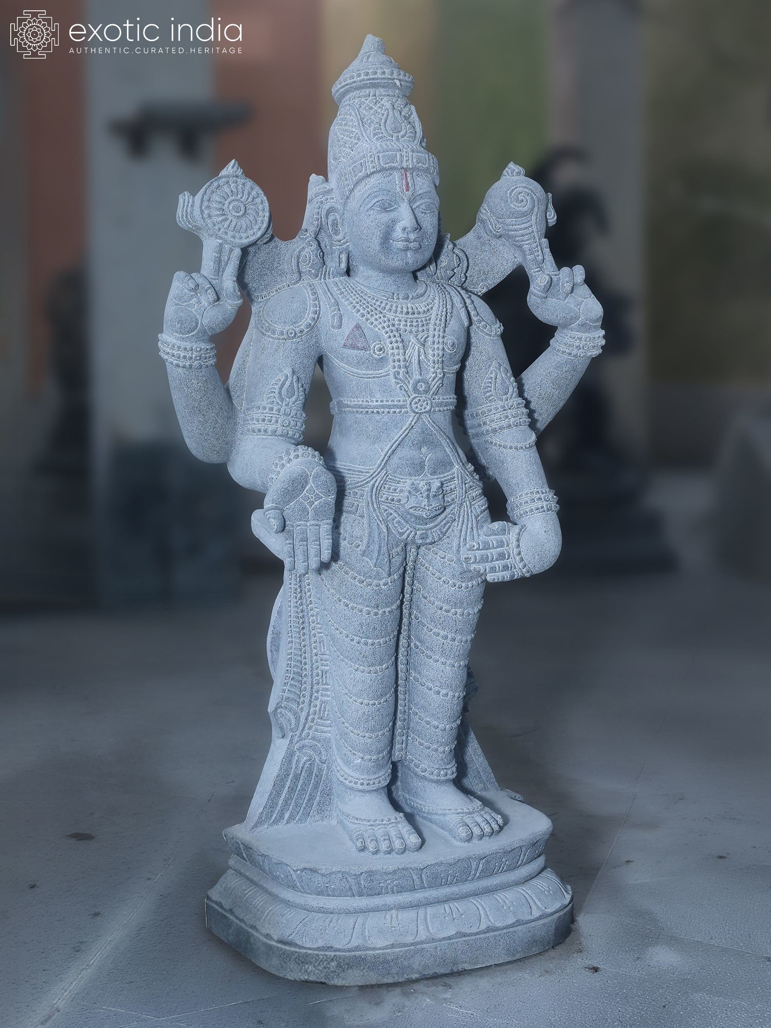 30" Standing Lord Vishnu | Orissa Stone Statue | Exquisite Handmade Indian Art