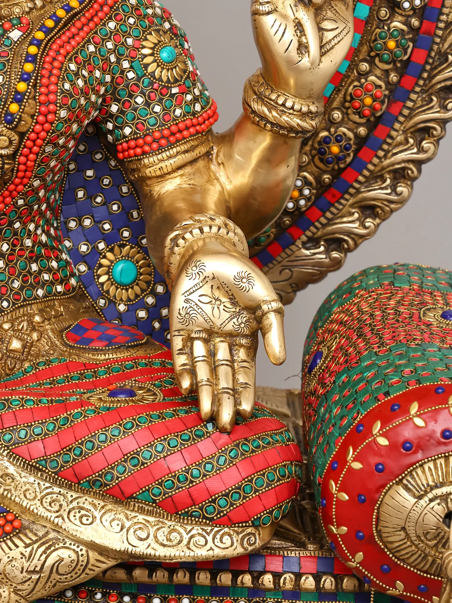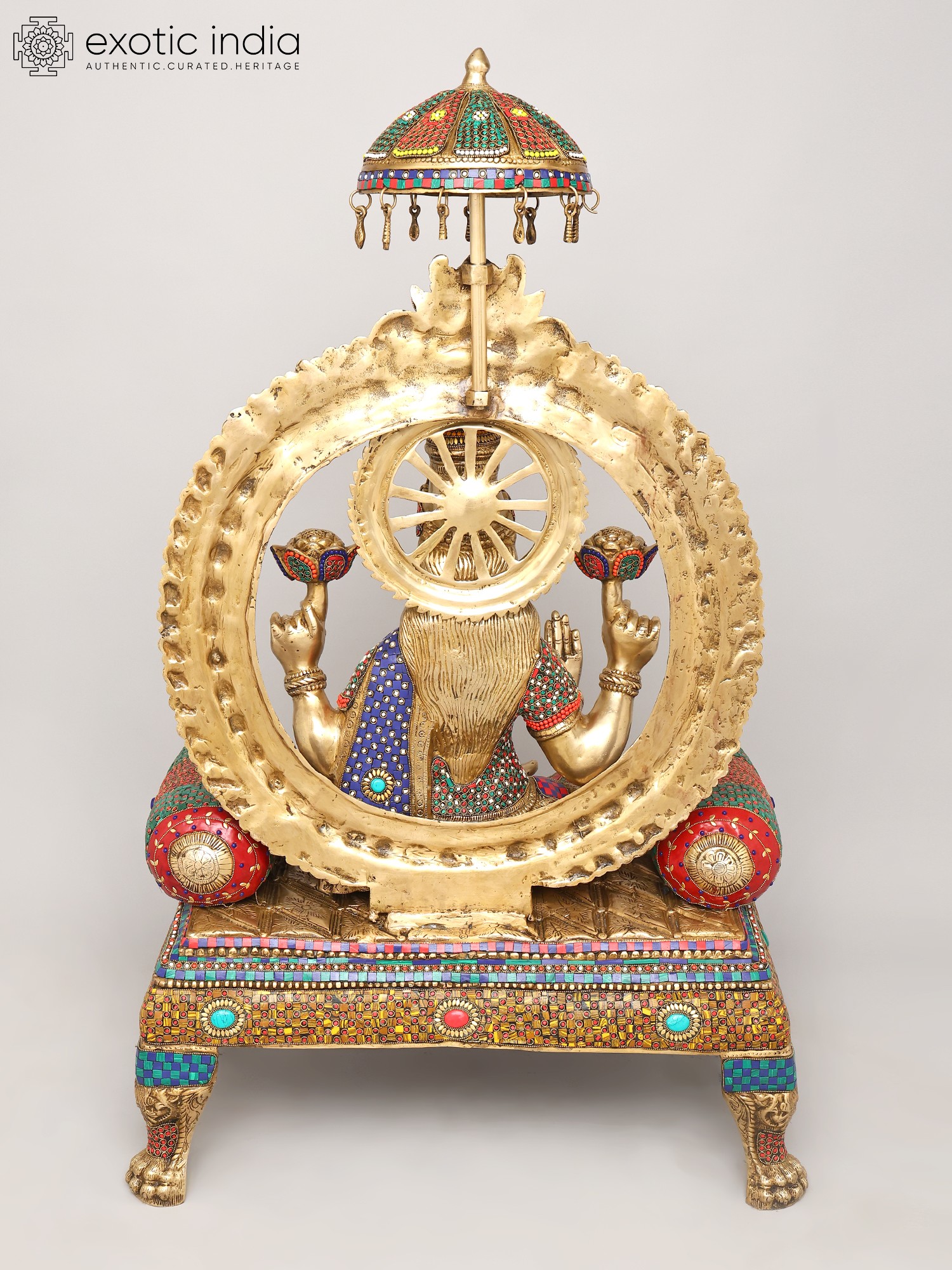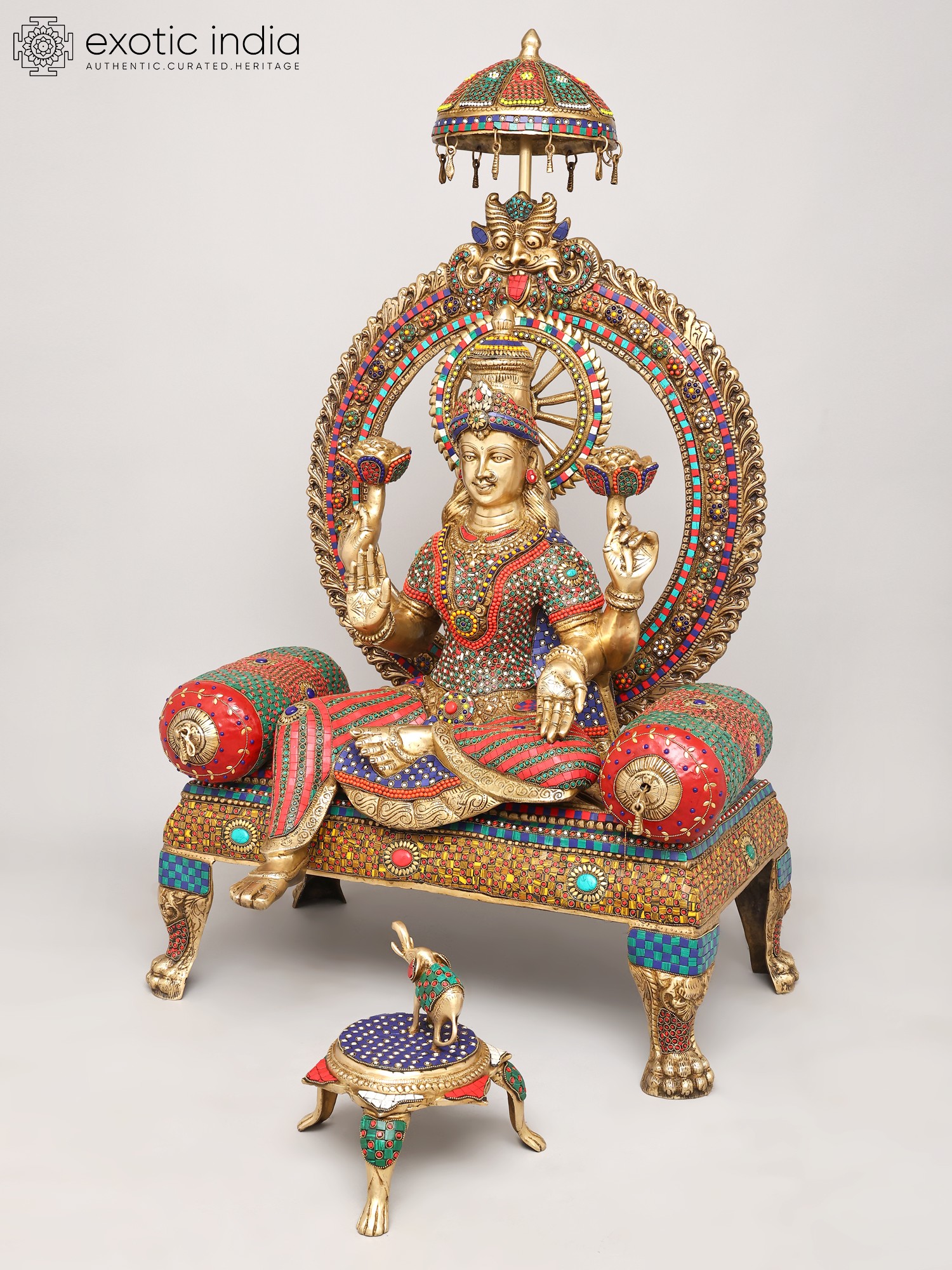 36" Large Size Enthroned Lakshmi In Brass | Handmade | Made In India