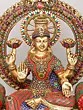 5" Small Goddess Lakshmi Seated in Blessing Gesture with Four Arms | Brass Statue
