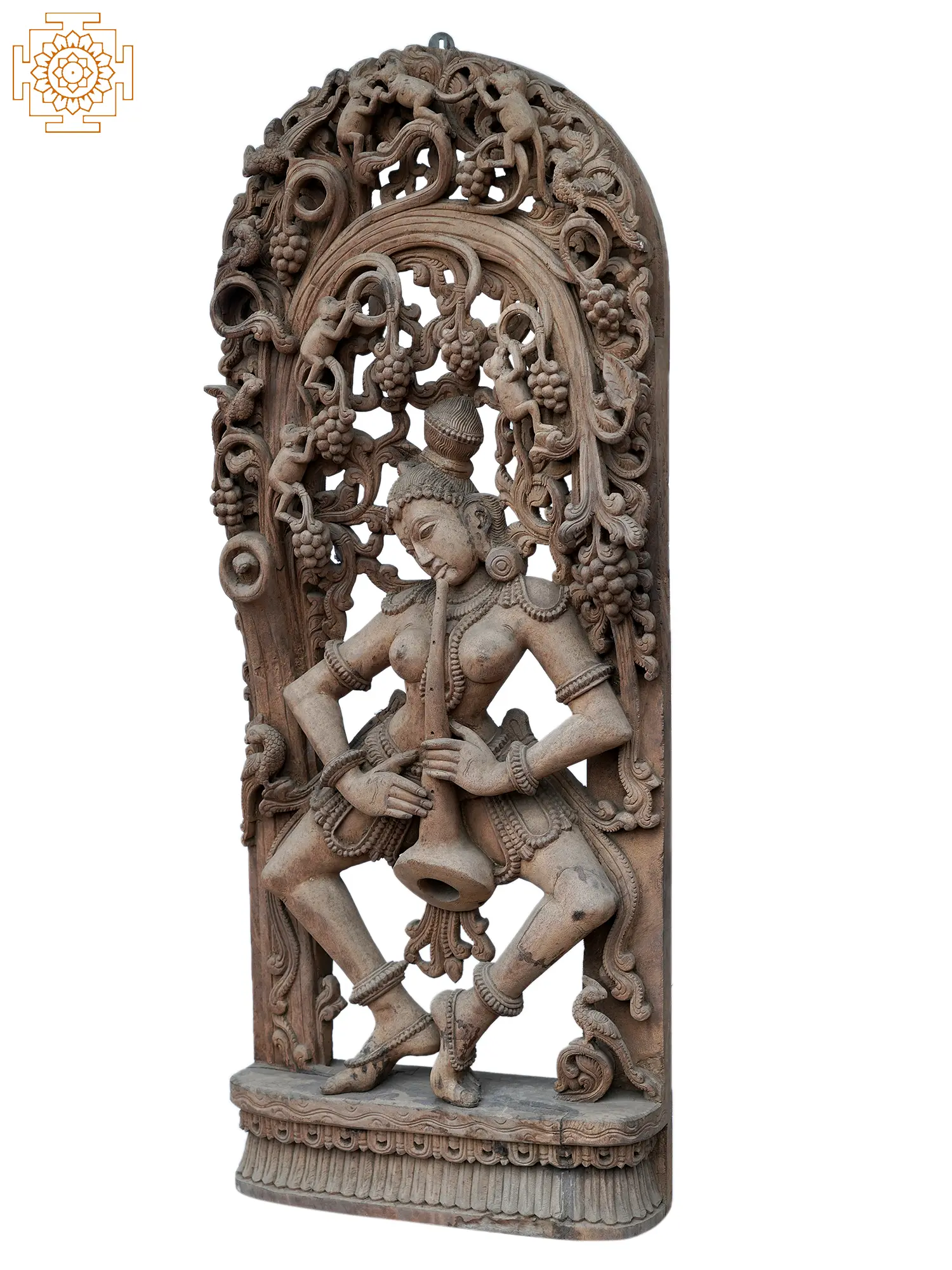 In Indian literary tradition, youthful maidens are often described as a source of spring in nature, with their unblemished beauty and charm causing Vasanta (spring season) to arrive. Inspired by the romantic mentions of women in Indian literature, this woodwork brings femininity and its auspiciousness to your space, in a classic Indian idiom.