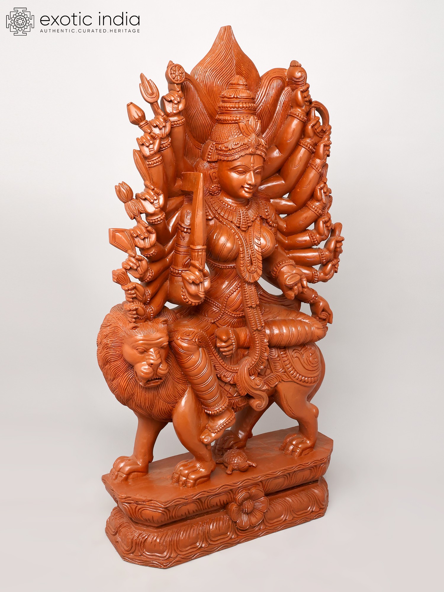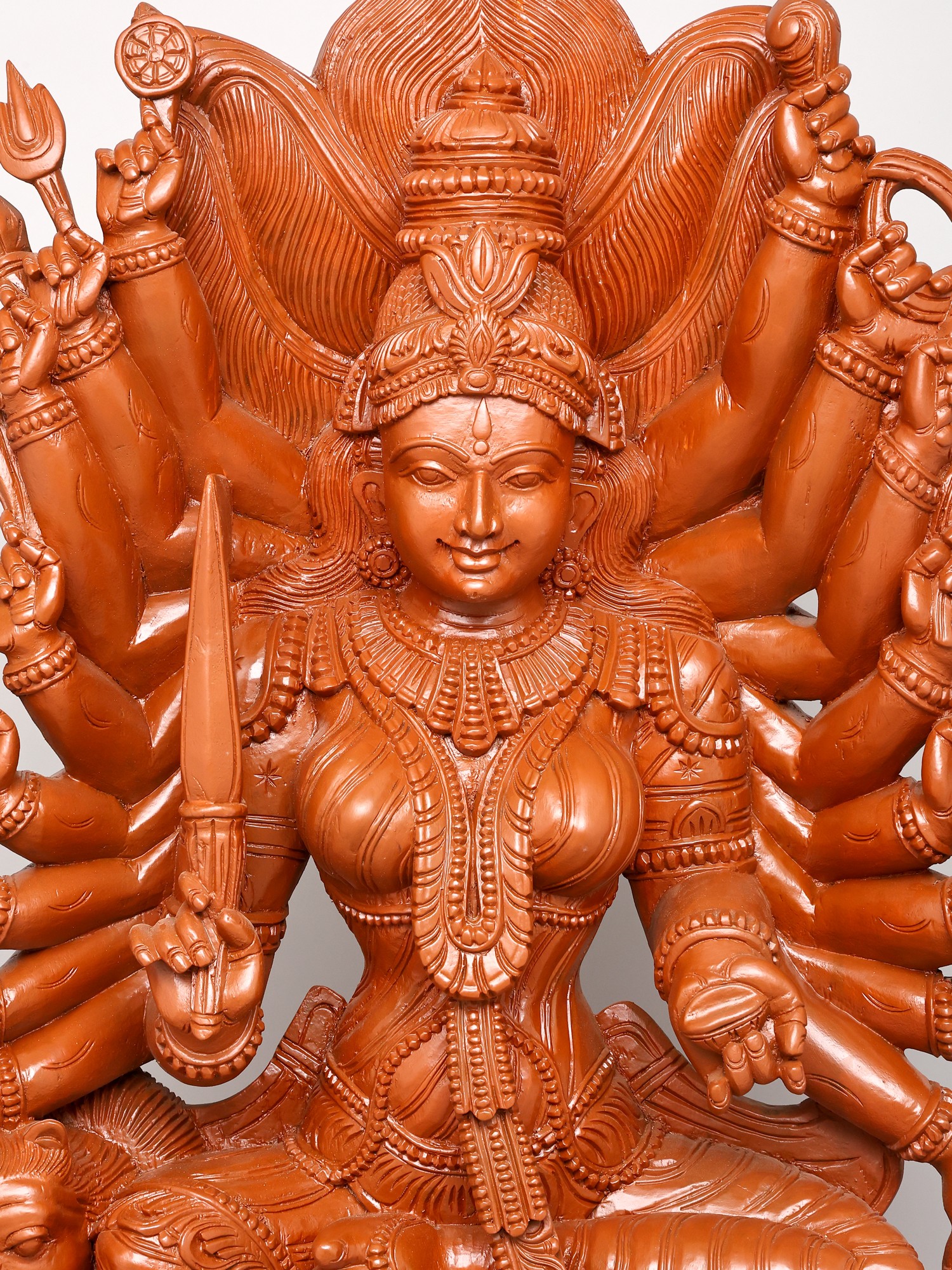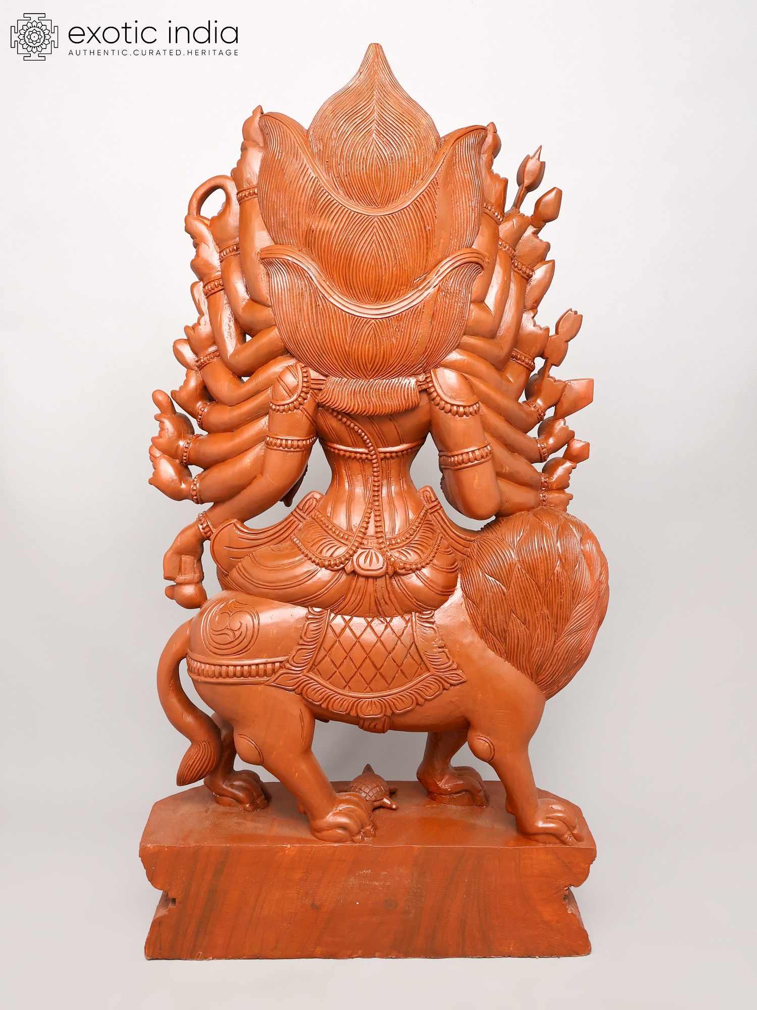 48" Large Eighteen Armed Goddess Durga (Sherawali Maa) | Wood Carving