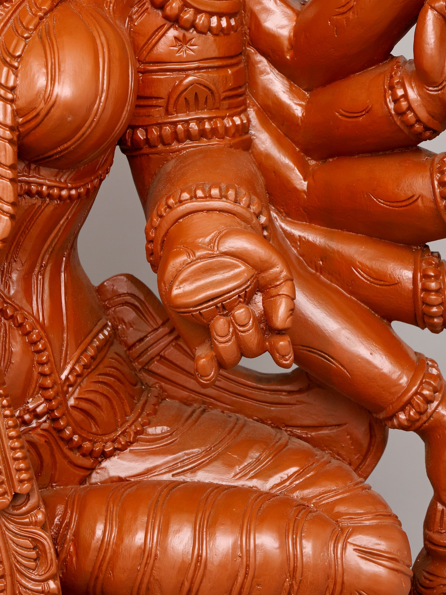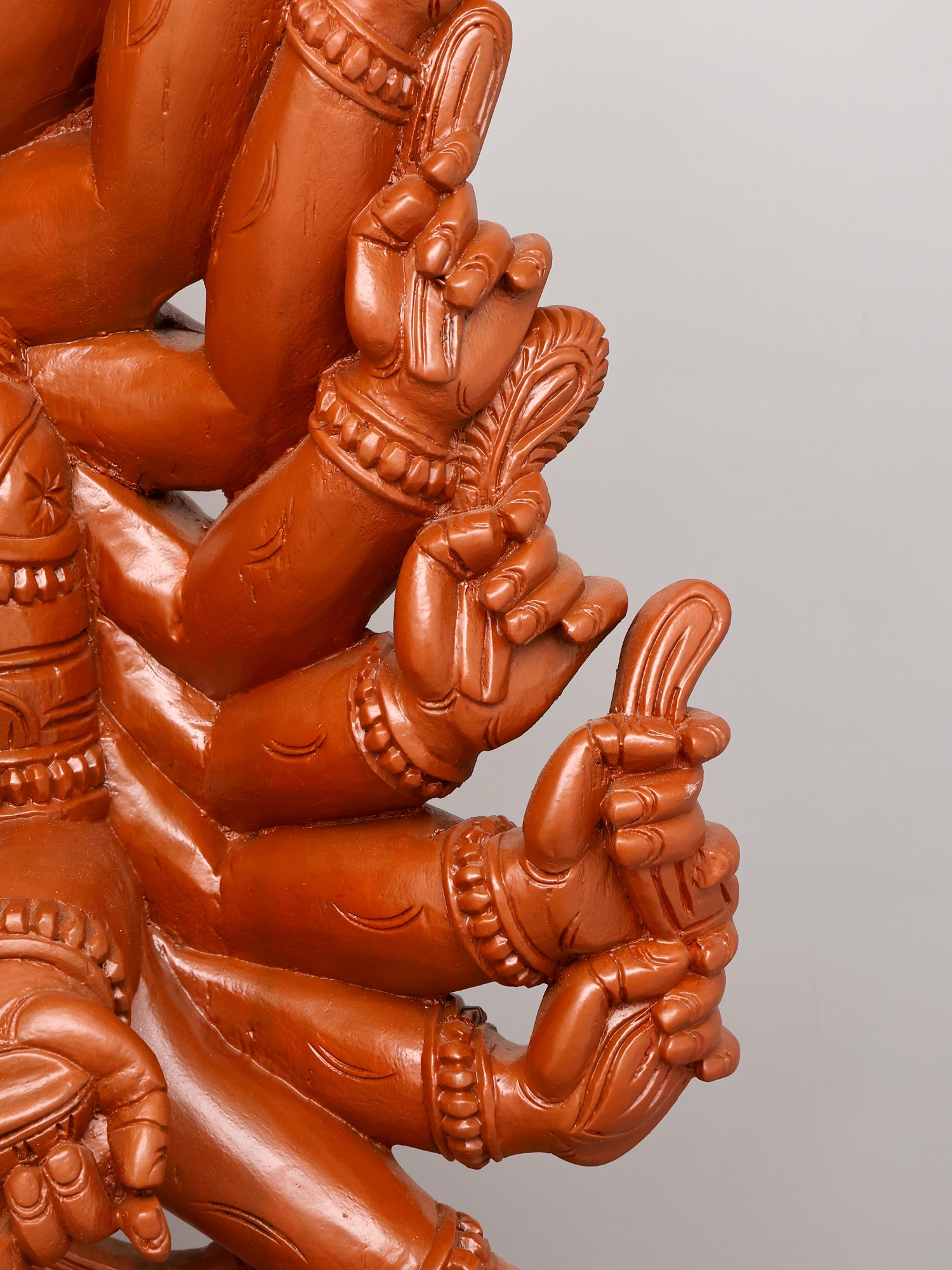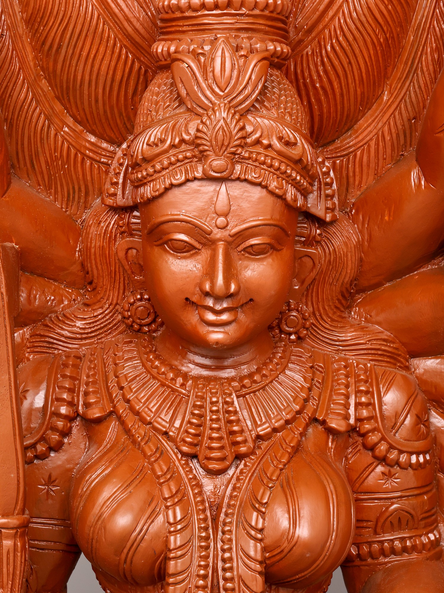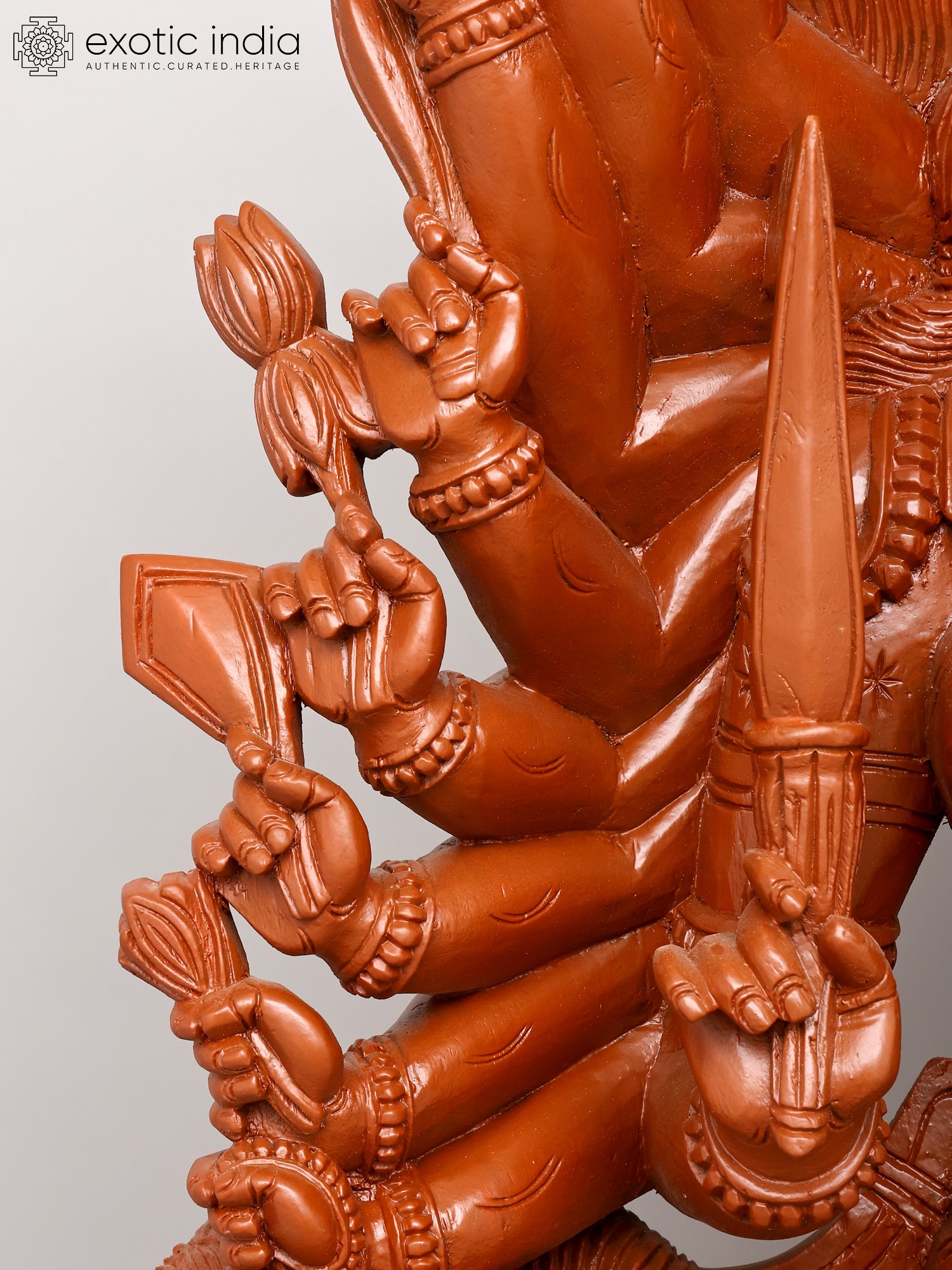 48" Large Eighteen Armed Goddess Durga (Sherawali Maa) | Wood Carving