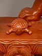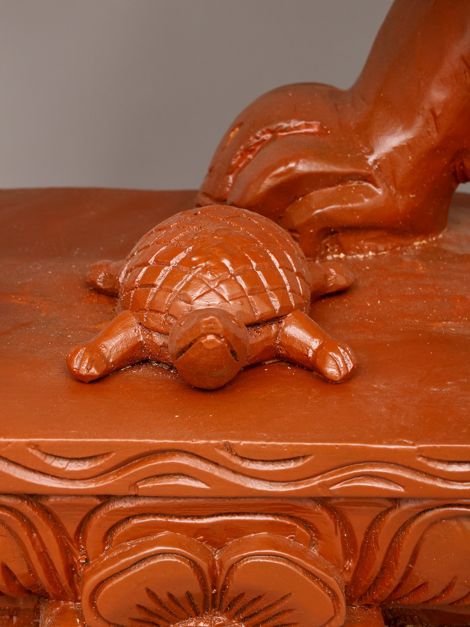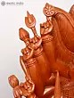 This substantial carving, meticulously crafted from wood, showcases the exceptional artistry and dedication of the artisans. The rich, warm hue of the wood lends an earthy, organic feel to the divine form, while the fine detailing on every element – from the flowing fabric of Durga's attire to the texture of the lion's mane – highlights the sculptor's mastery. The sheer scale of this piece, at 48 inches tall, makes it a truly statement-making addition, capable of commanding attention and inspiring reverence. The smooth finish and deep, resonant carvings create a tactile and visual experience that draws the viewer into the devotional narrative of the Goddess. This is not just a statue; it is a piece of sacred art that carries centuries of tradition and devotion within its sculpted form.