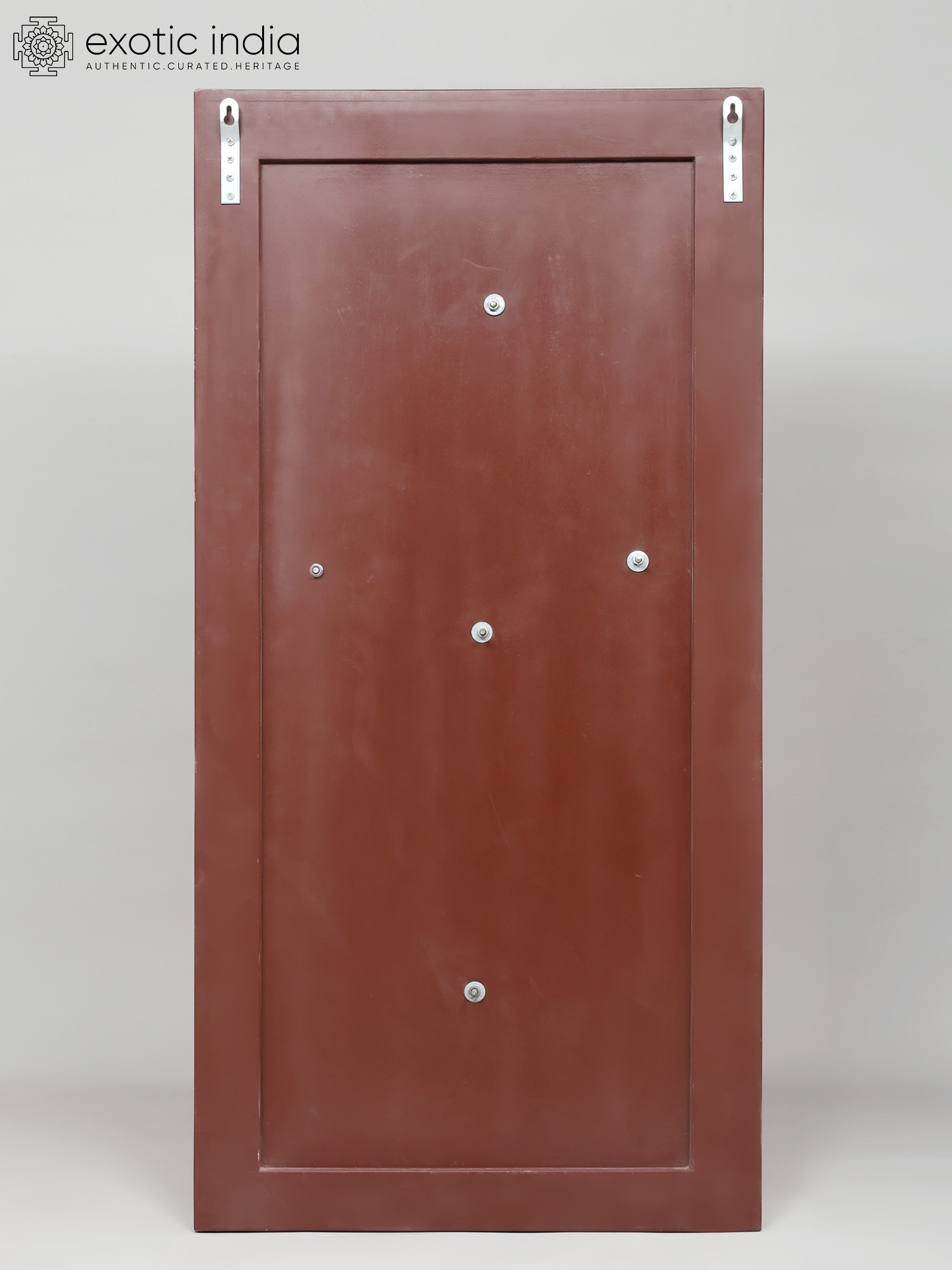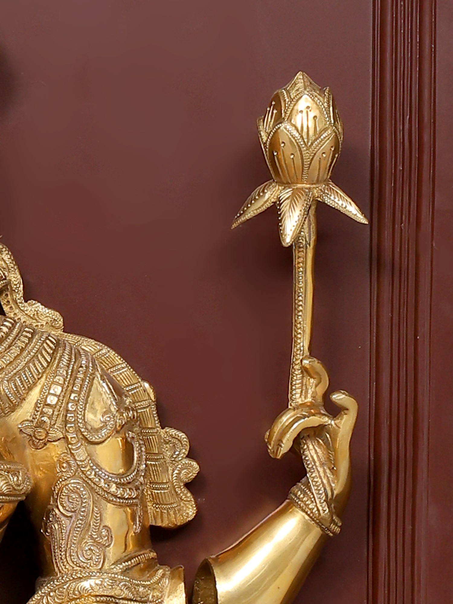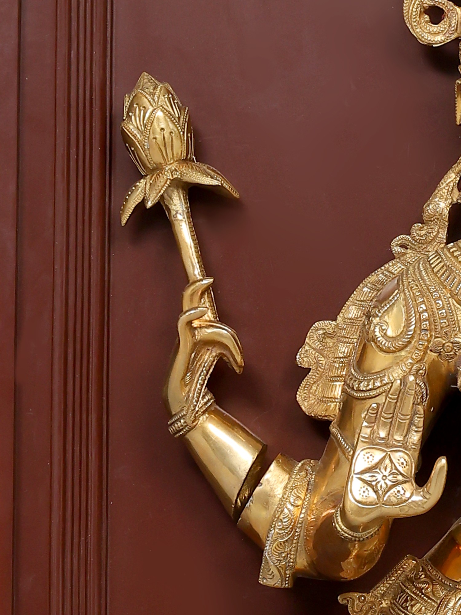 16" Brass Blessing Lord Ganesha with Inlay Work | Wood Framed Sculpture | Wall Hanging