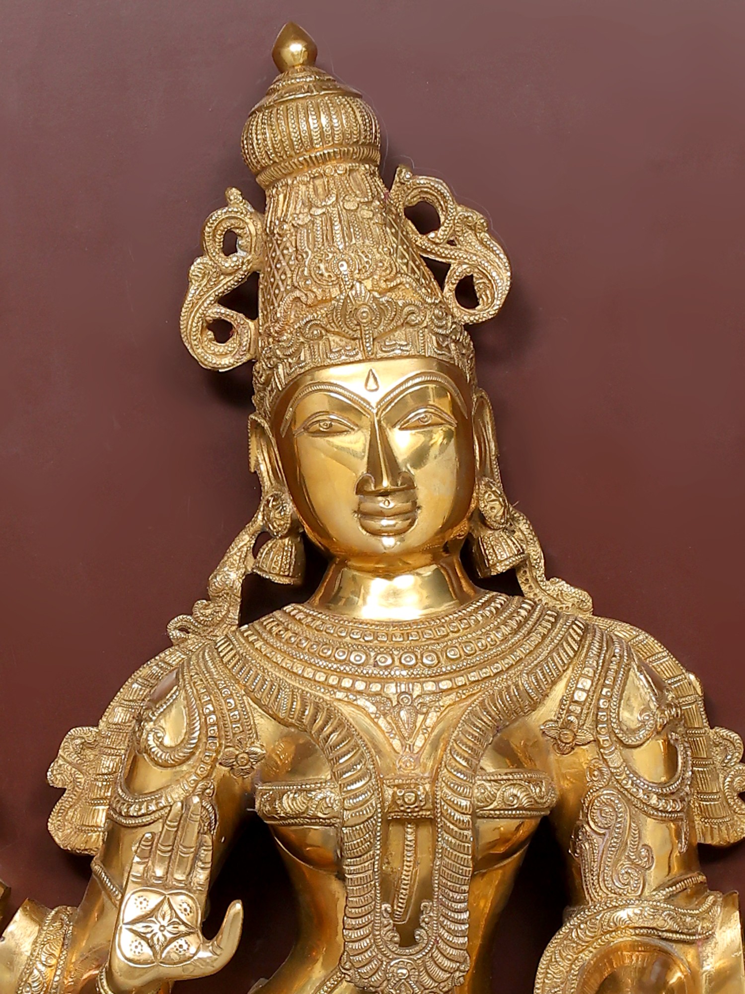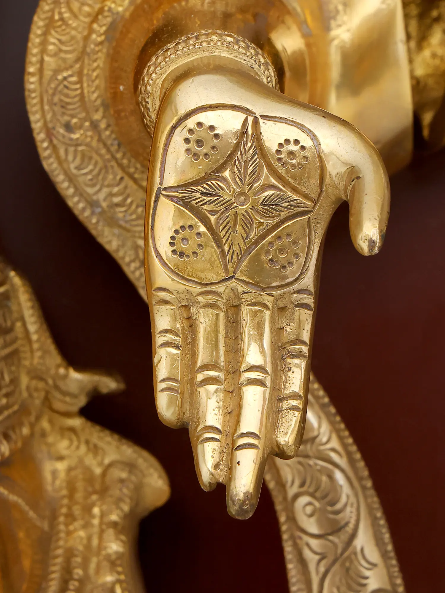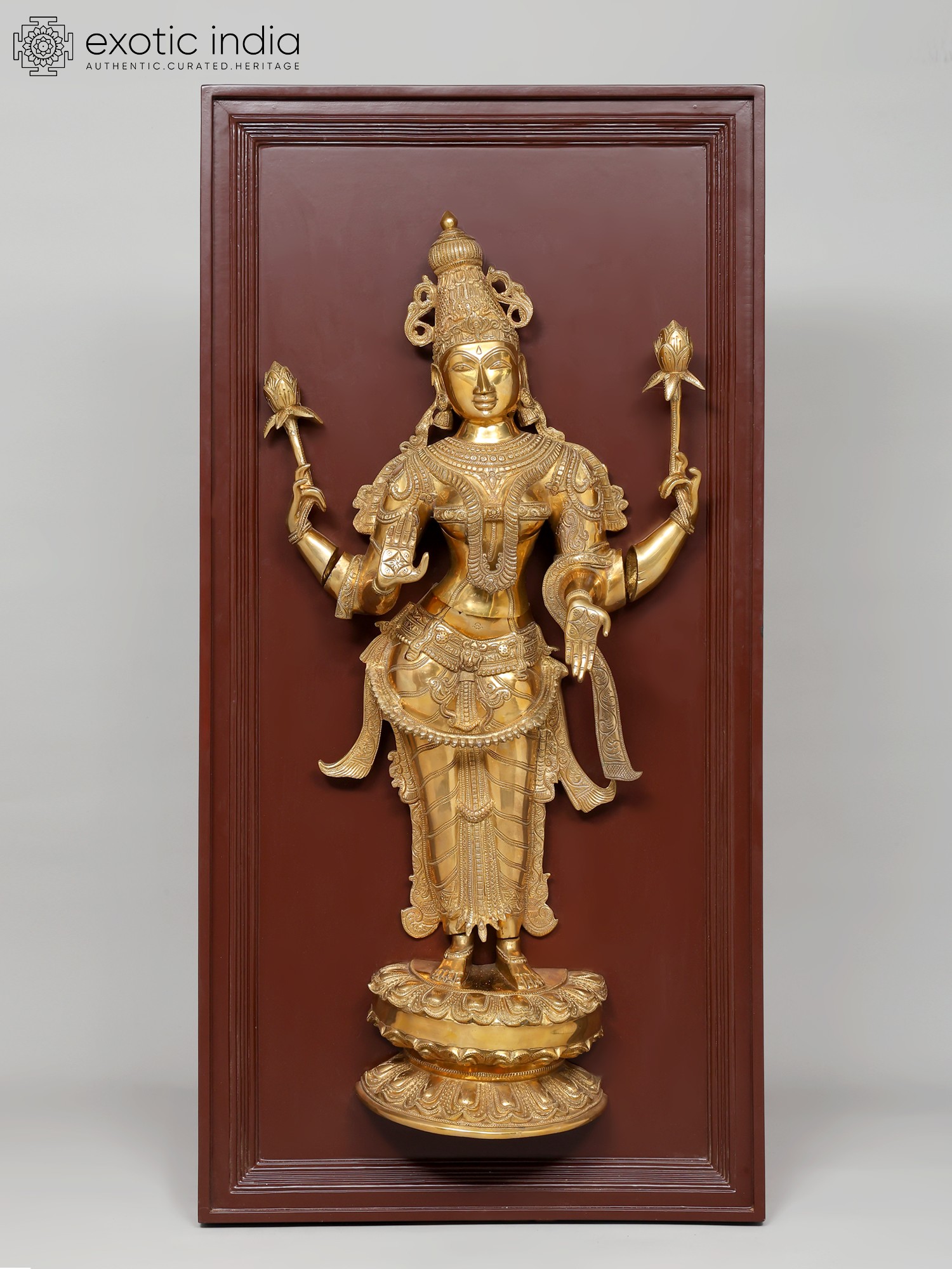 16" Brass Blessing Lord Ganesha with Inlay Work | Wood Framed Sculpture | Wall Hanging