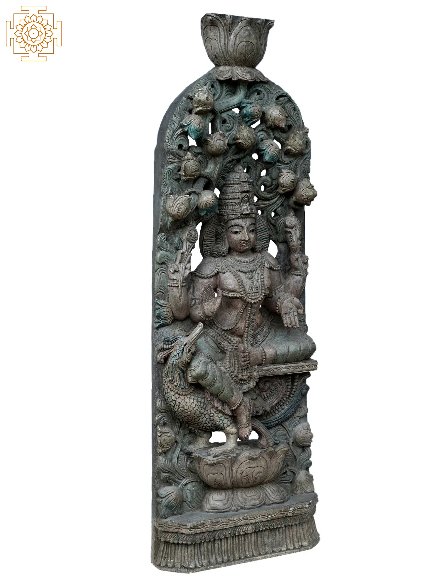 50" Large Teakwood Carved Dashavatara Wall Panel with Lord Vishnu at Center