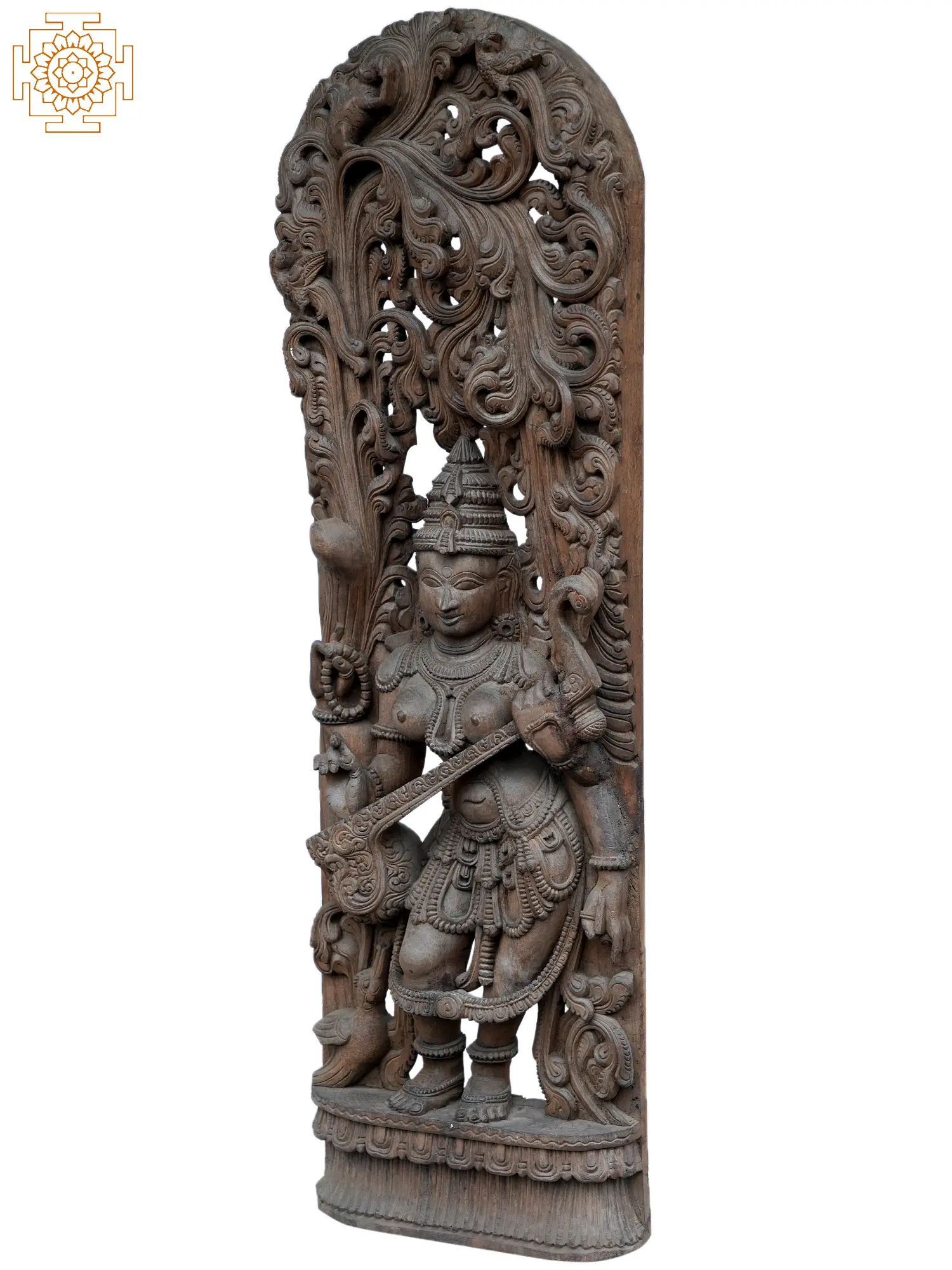 24" Wooden Vaishnava Symbols (Chakra, Tilak & Shankh) Wall Panel