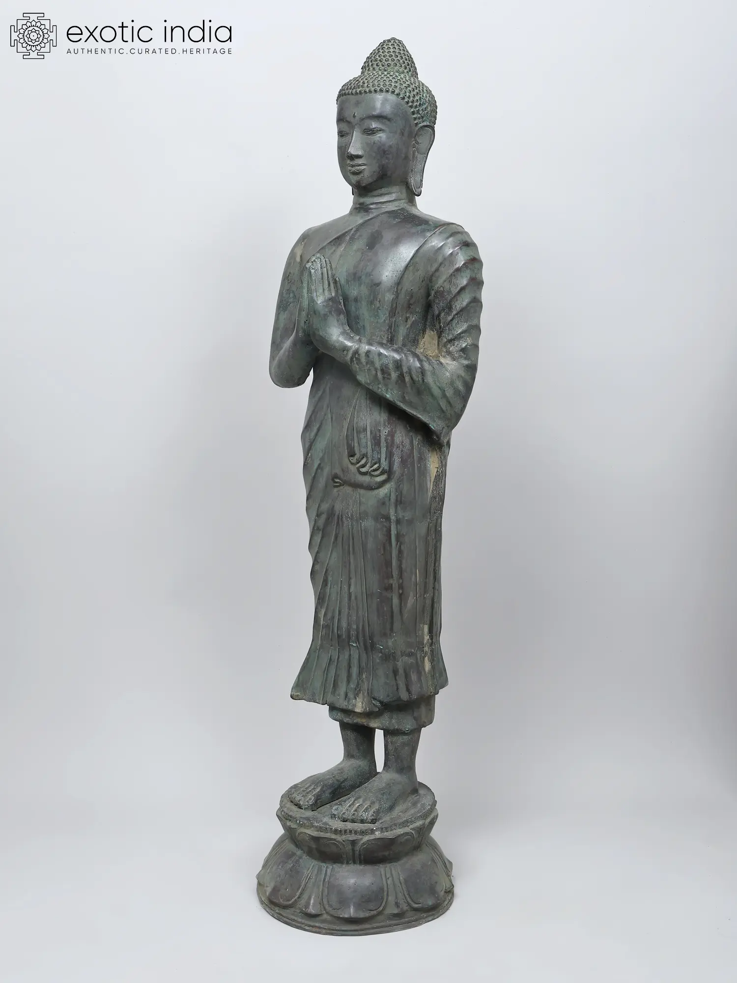 42" Large Size Standing Gautam Buddha In Brass | Handmade | Made In India