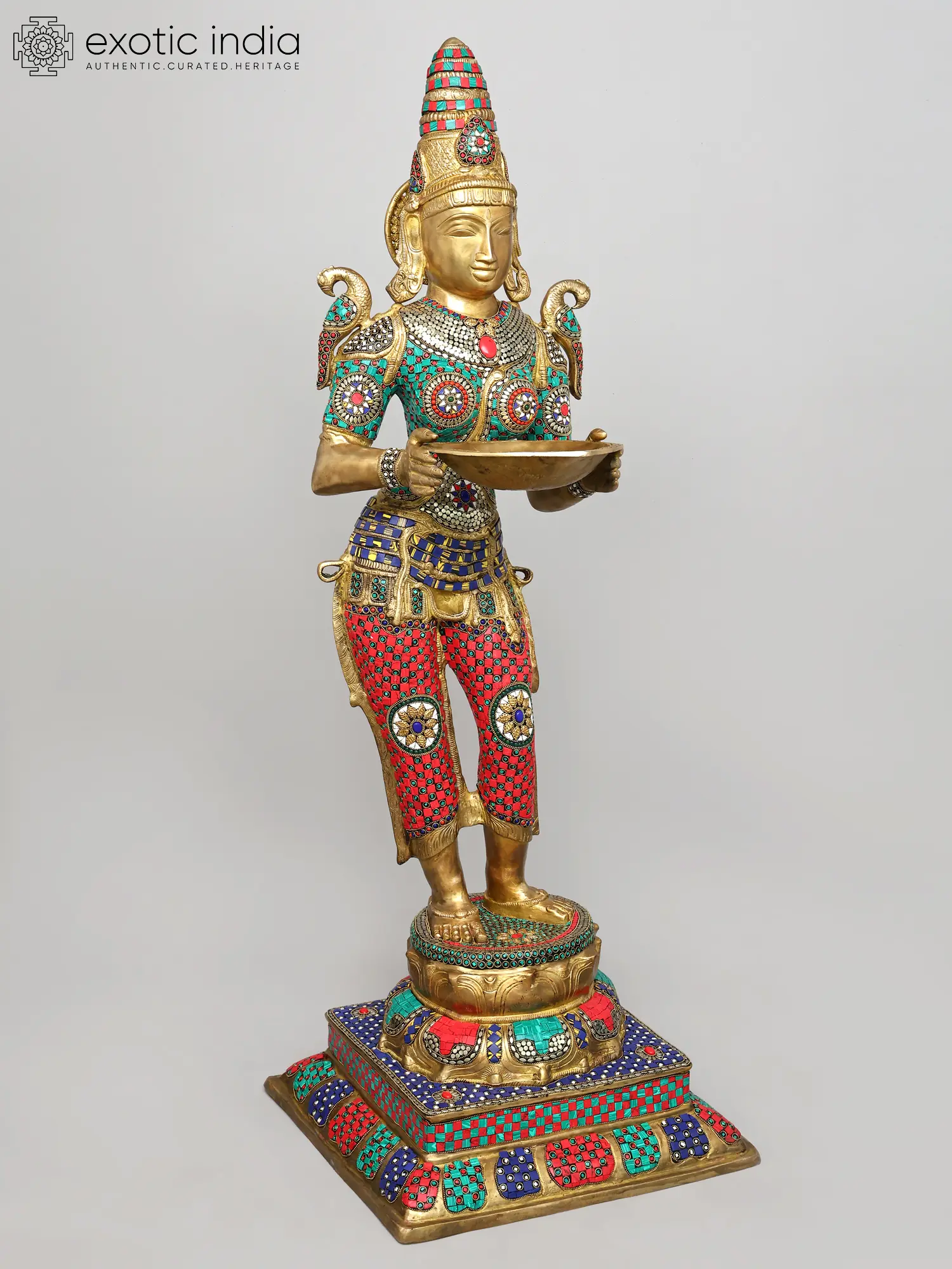 30" Goddess Deeplakshmi Brass Figurines | Spiritual Housewarming Gift