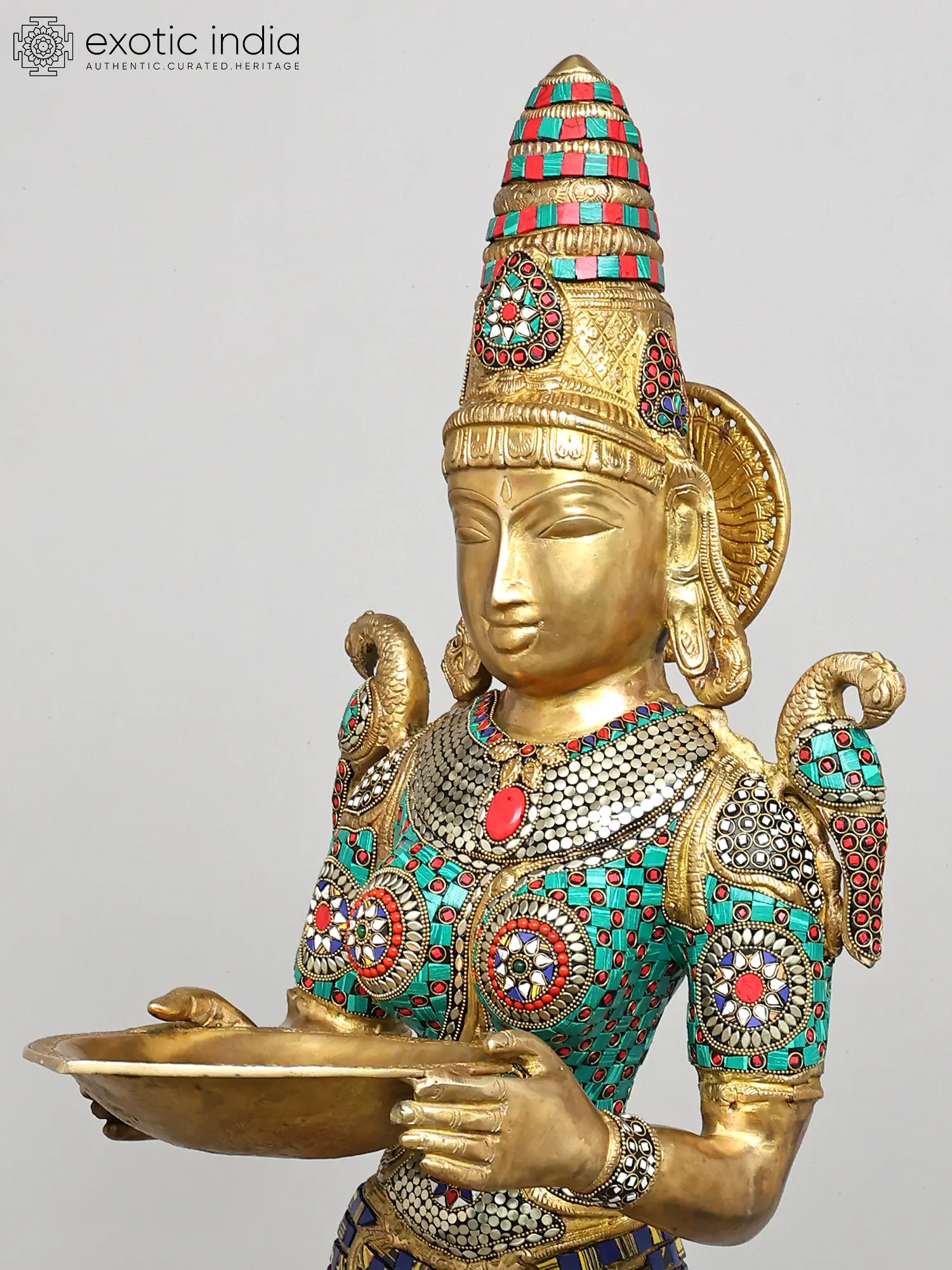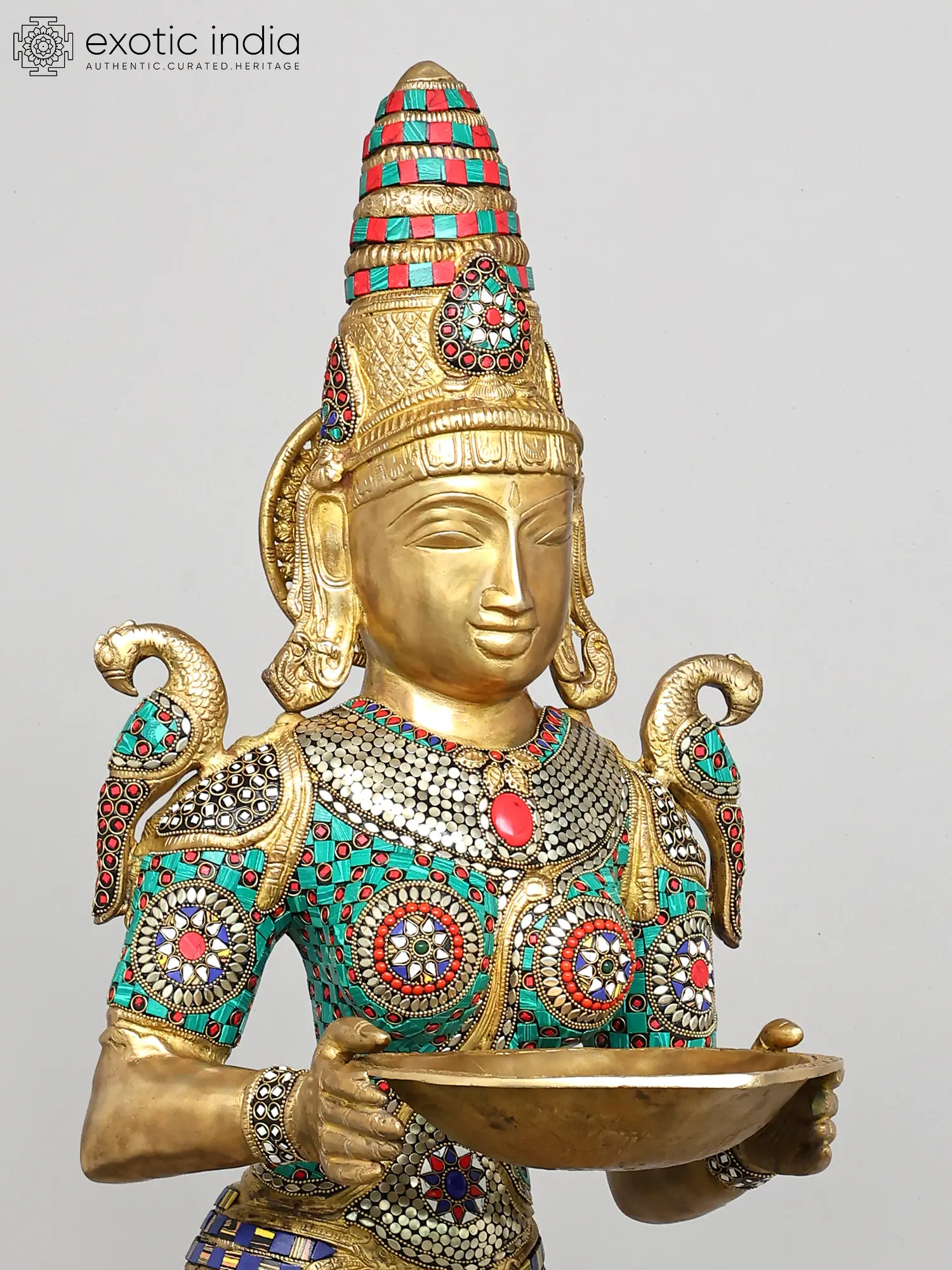 28" Deeplakshmi - Auspicious Lakshmi with Lamp in Brass | Handmade | Made in India