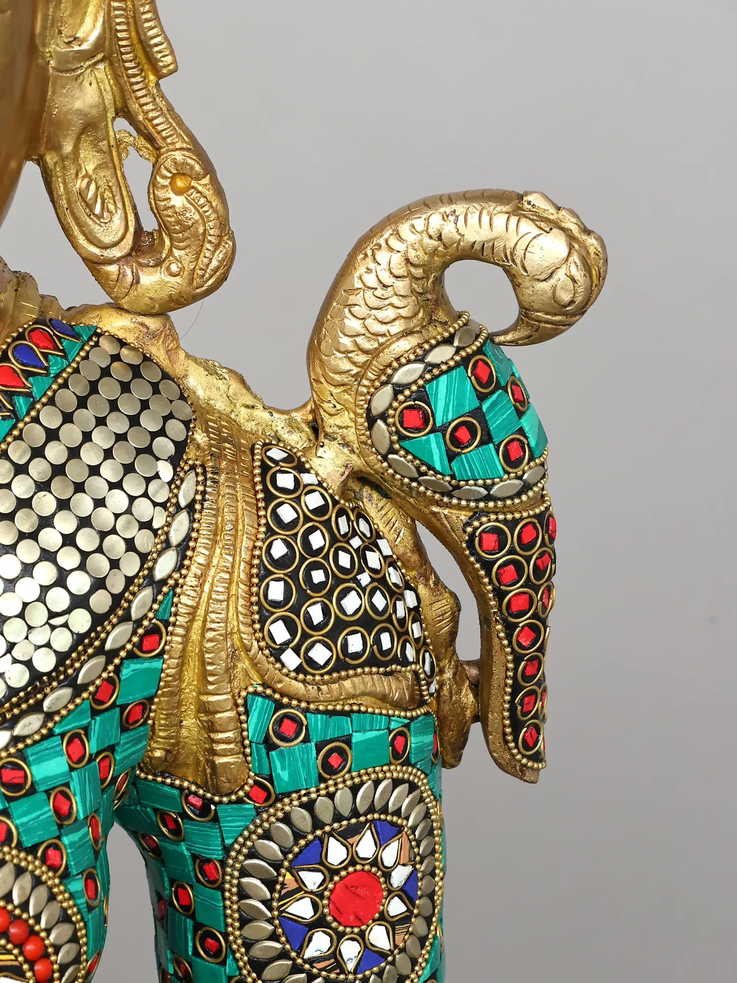 This large-format brass statue is not merely an object of religious devotion; it is a masterpiece of artistic expression. The solid brass construction ensures its durability and longevity, while the inlaid gemstones add a unique and opulent character. The scale of the statue makes it a truly statement piece, suitable for placement in grand living spaces, temples, or cultural institutions. It represents a harmonious blend of artistic skill, spiritual devotion, and historical legacy, offering a tangible connection to the rich cultural tapestry of India.
