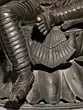 From the characteristic metallic colour with overtones of coppery green, to the sheer wealth of detail in this Saraswati sculpture’s form and shringar, this Saraswati Puja murti bears all the hallmarks of authentic Swamimalai workmanship. Zoom in on the richly engraved crown and the expressive composure of countenance to appreciate the same.