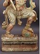 This magnificent, large-scale sculpture captures the very essence of Hanuman Ji, the revered monkey god and ardent devotee of Lord Rama. Carved from resilient teak wood, this piece is not merely an object of art but a conduit to ancient tales of courage, loyalty, and unwavering faith. The detailed craftsmanship speaks volumes of the artisan's skill, imbuing the wood with a lifelike presence that feels both powerful and serene. Hanuman Ji, a central figure in the epic Ramayana, is celebrated for his extraordinary feats. He is the son of Vayu, the wind god, which accounts for his immense strength and his ability to fly. In this striking depiction, he holds aloft the Sanjeevani herb, a mountain laden with life-giving properties, which he brought from the Himalayas to revive the gravely wounded Lakshmana, Lord Rama's brother. This act symbolizes his profound devotion and willingness to overcome any obstacle for his beloved Lord. The mace, orgada, held in his other hand, is a testament to his warrior spirit, ready to defend dharma and vanquish evil.