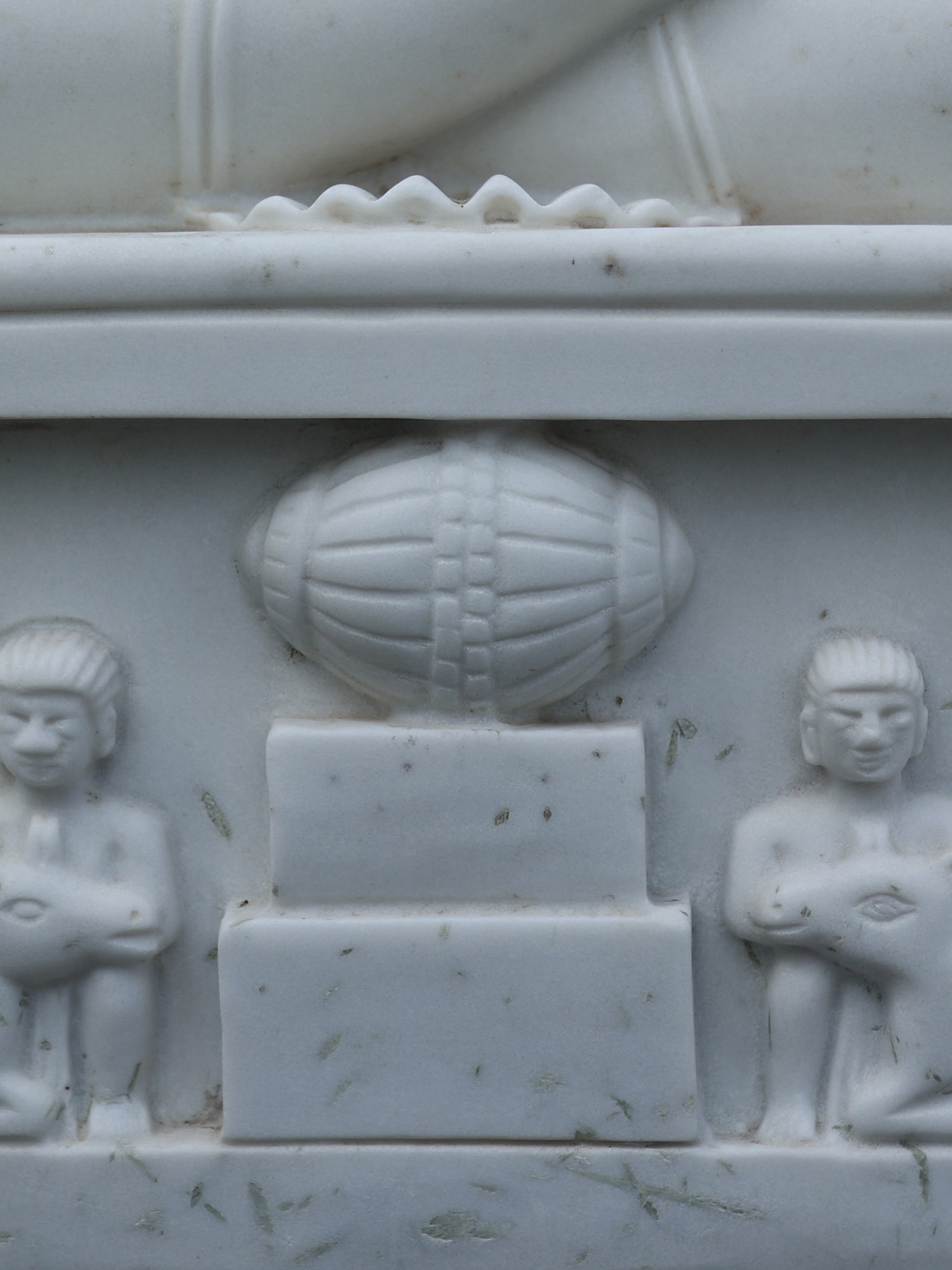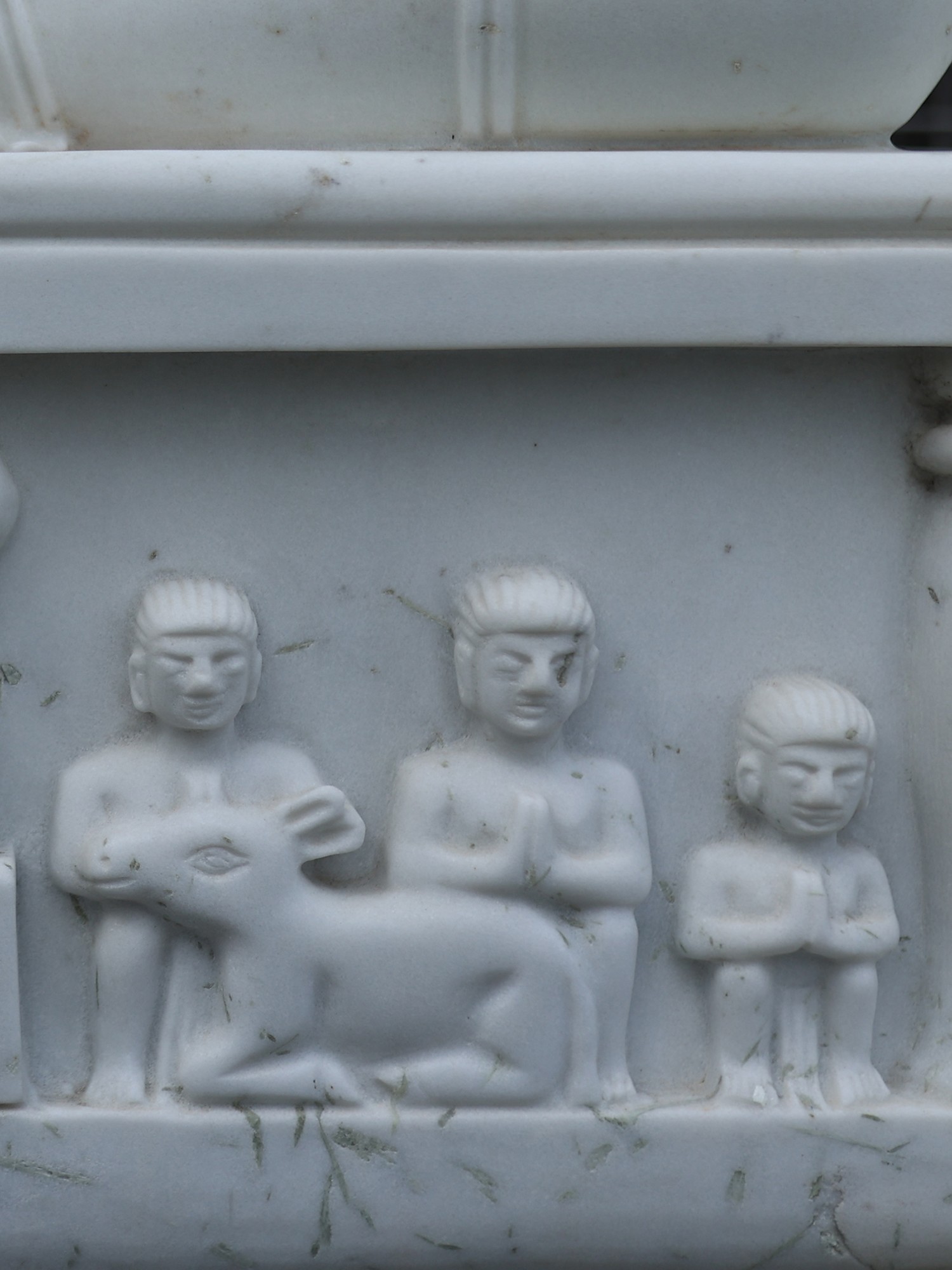 Crafted from the finest marble, this sculpture is a testament to the enduring legacy of Indian artisanal skill. Each curve and contour has been meticulously hand-carved by master artisans, who bring generations of knowledge and dedication to their craft. The exceptional quality of the stone ensures a piece that is not only visually stunning but also possesses a substantial and enduring appeal, speaking of its creation with immense care and expertise.