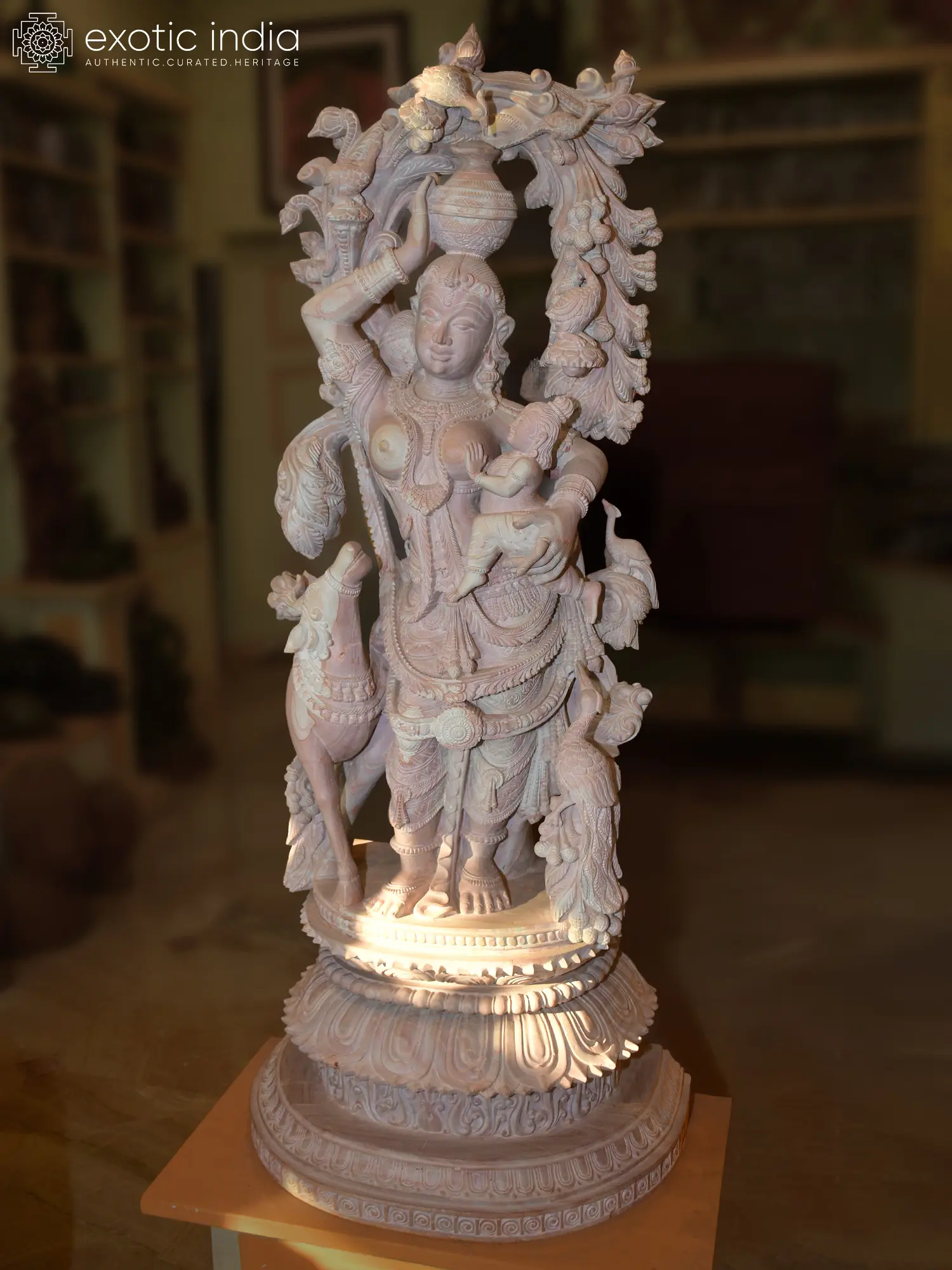 44" Superfine Graceful Lord Krishna Playing Flute | Large Size Hand-Painted Brass Statue