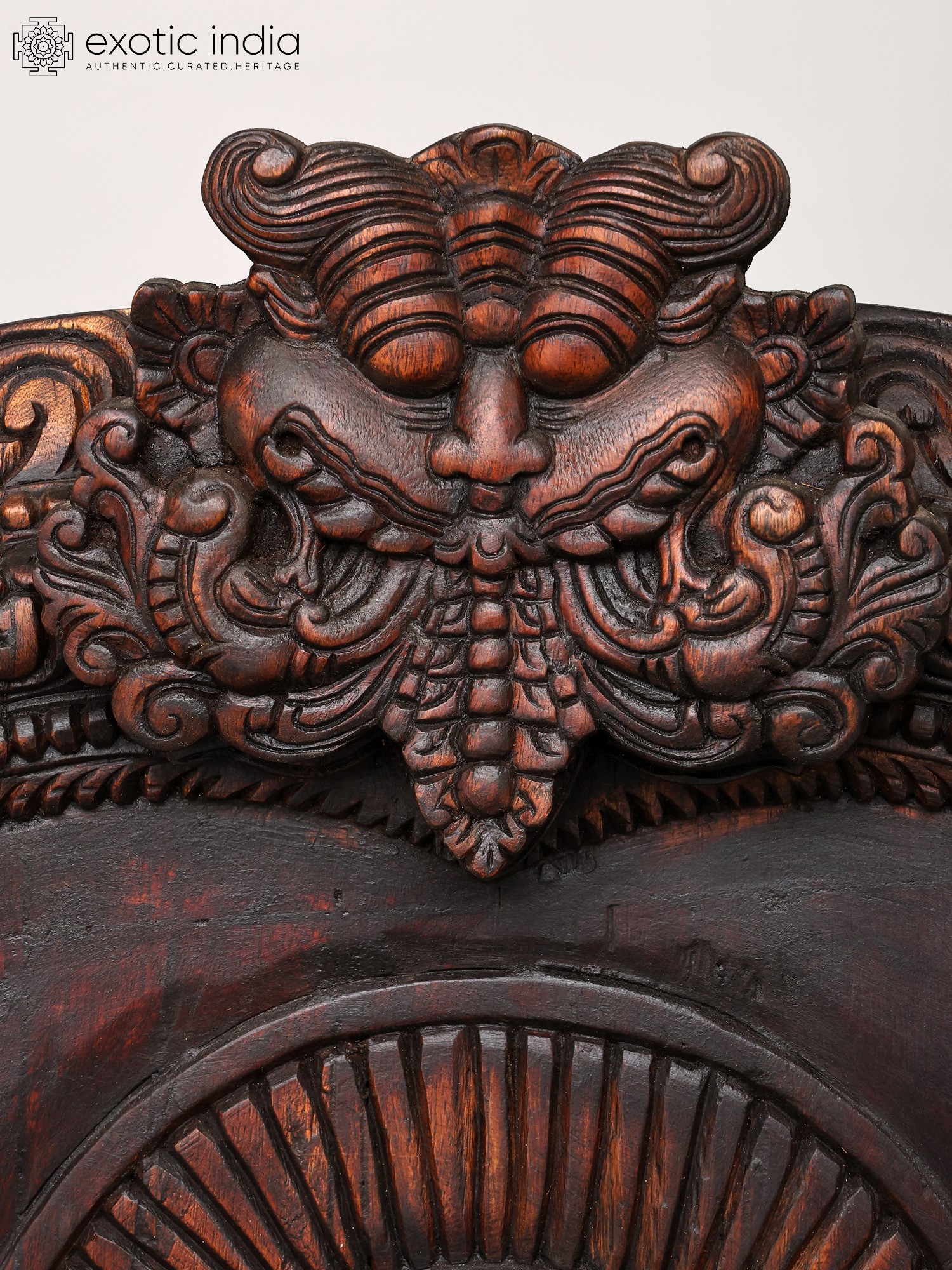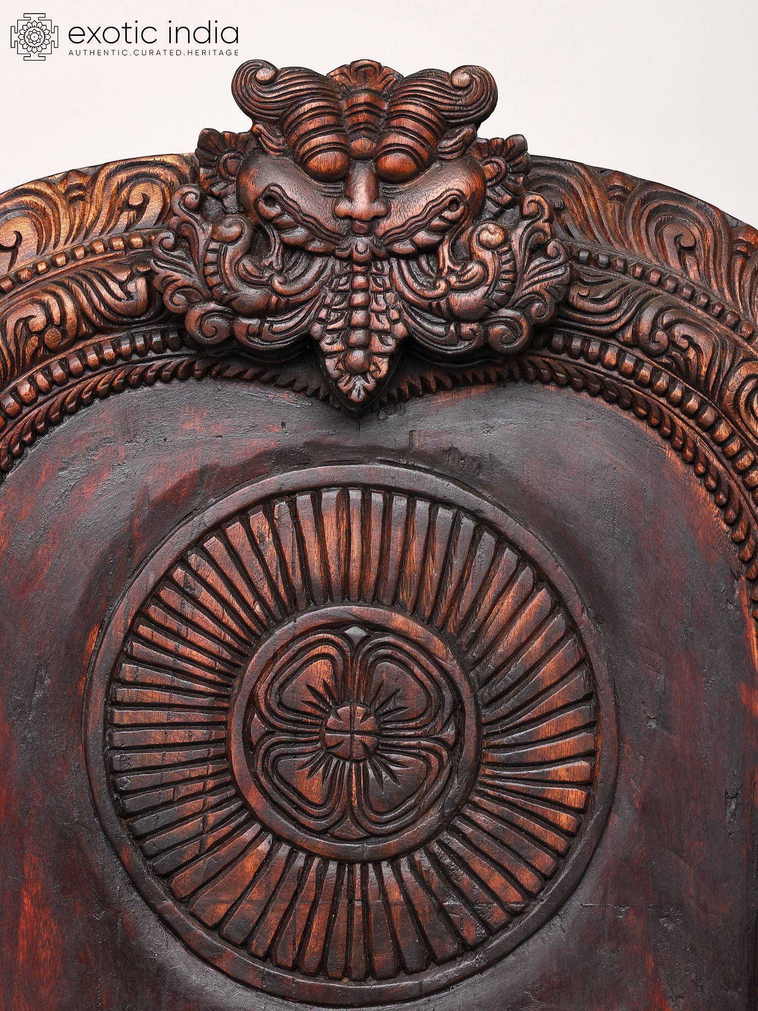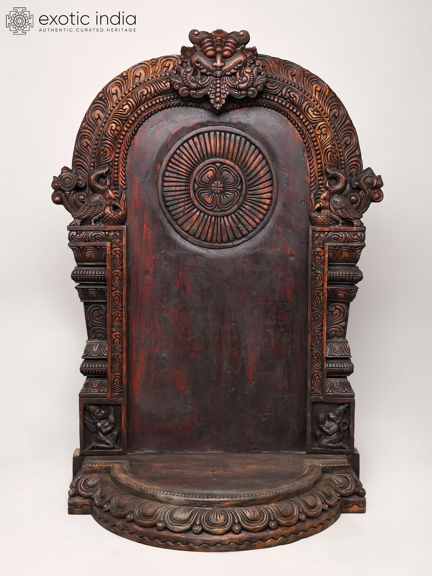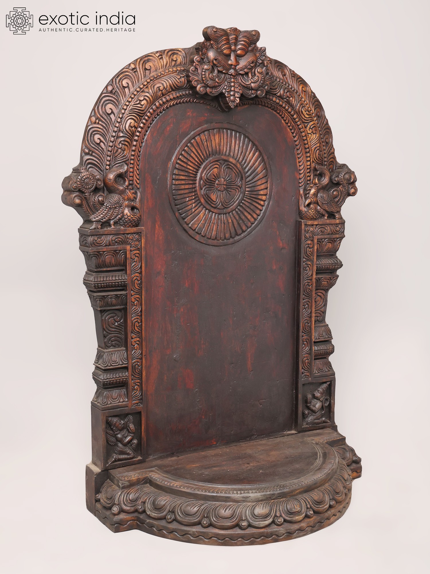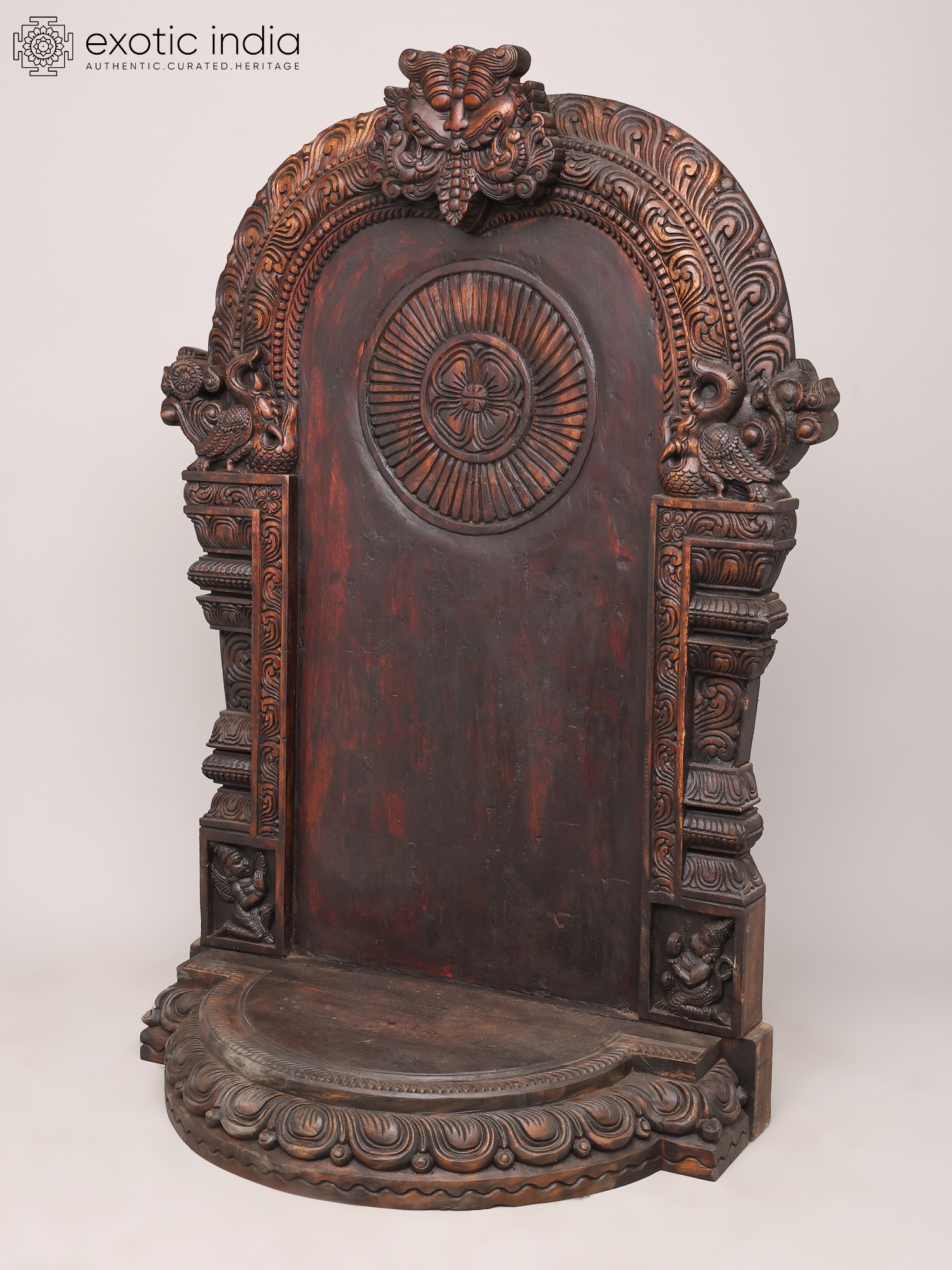 60" Large Colorful Kirtimukha Throne for Placing Deity Statue | Wood Carving