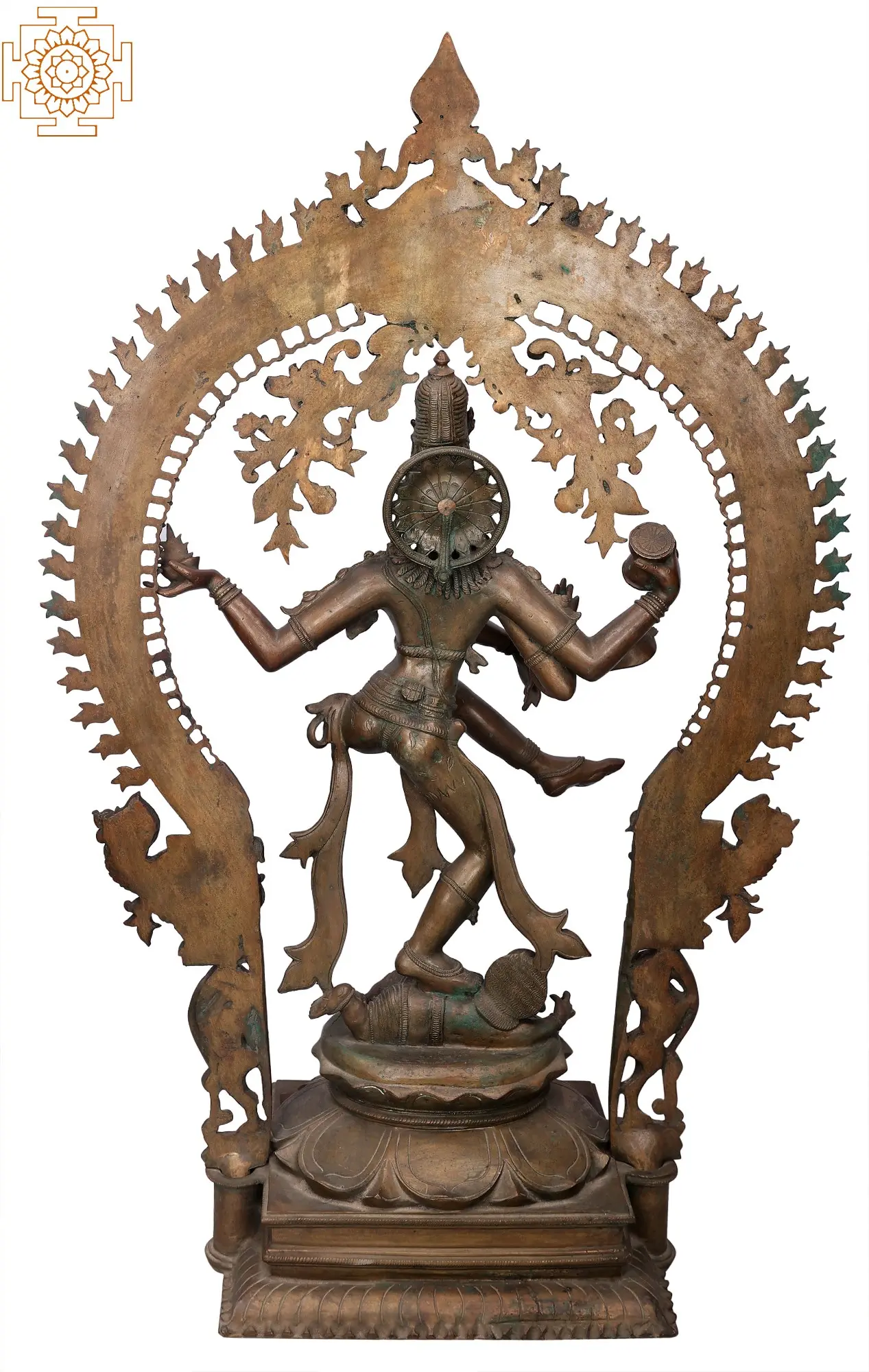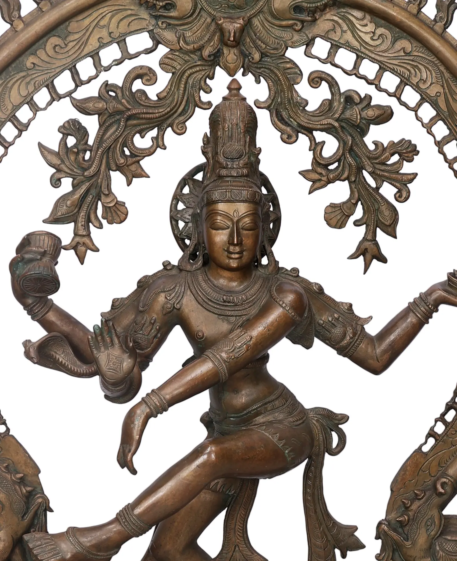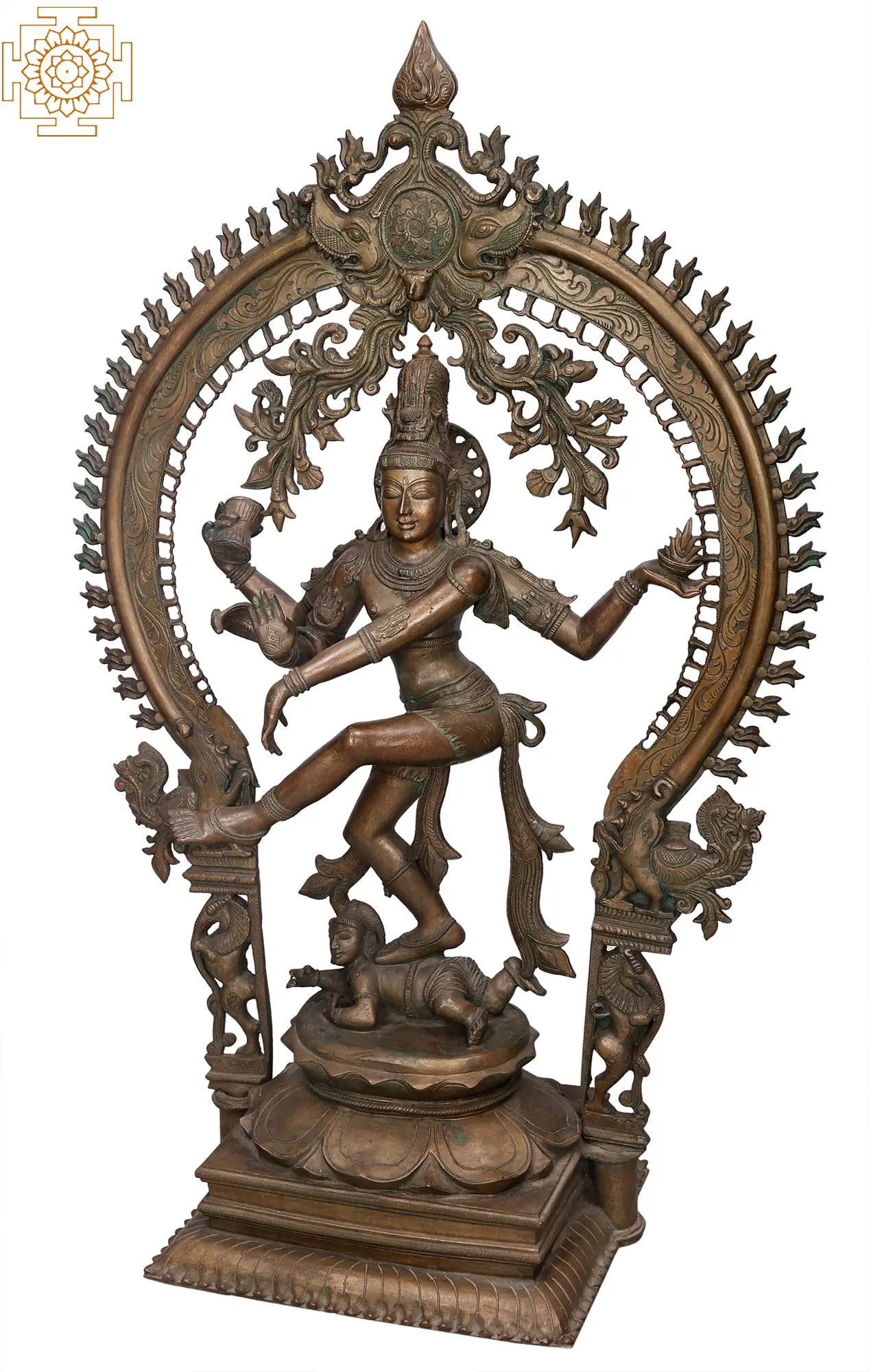 This impressive Nataraja is more than a statue; it is an embodiment of divine energy and artistic excellence. Its substantial size commands attention, making it a striking centerpiece for any sacred space, temple, or discerning collector's home. The patina of the Panchaloha bronze tells a story of time and tradition, adding depth and character to the piece. To behold this Nataraja is to witness the cosmic ballet of life, a timeless reminder of the forces that shape our universe and our own spiritual journey.
