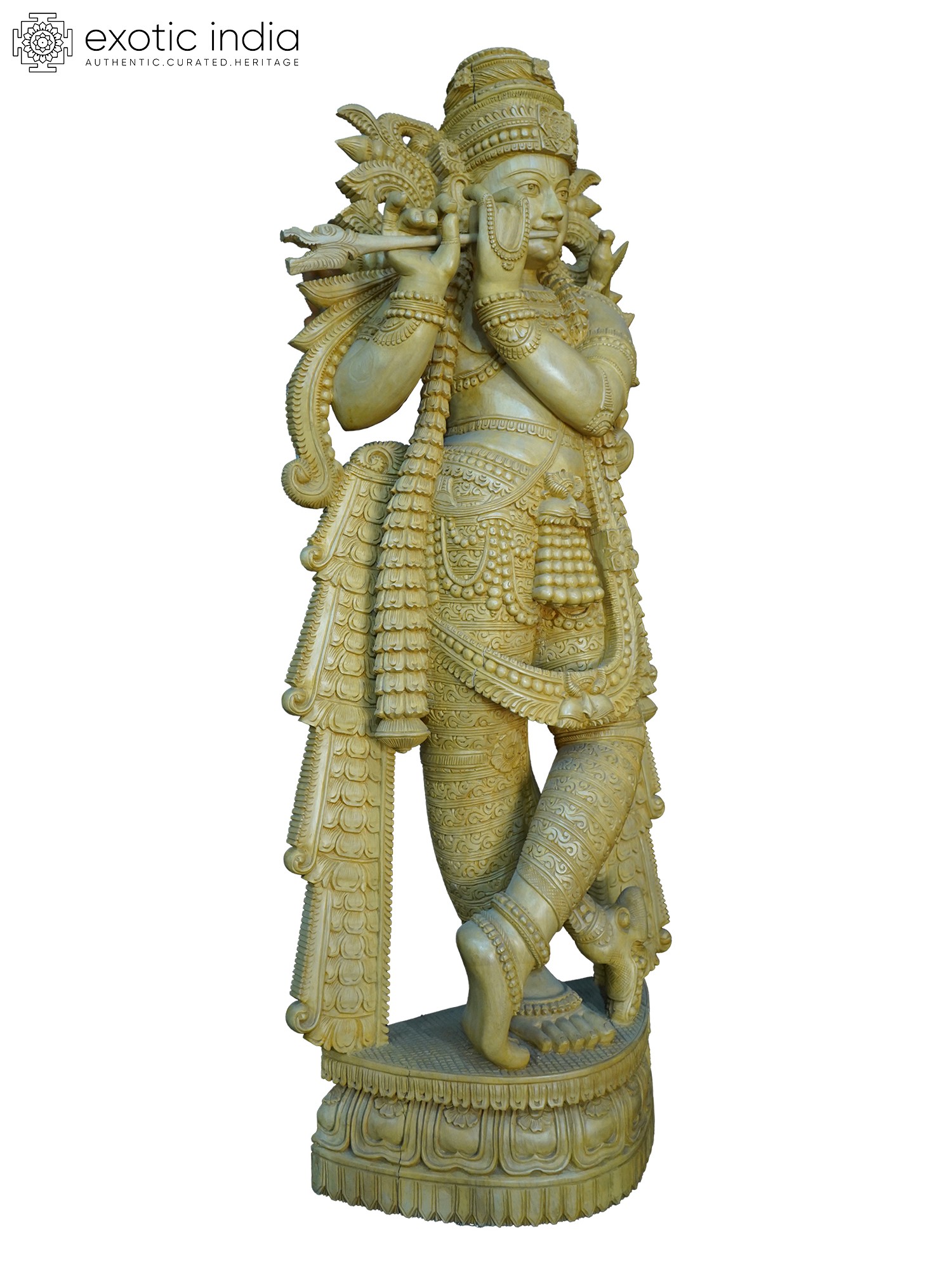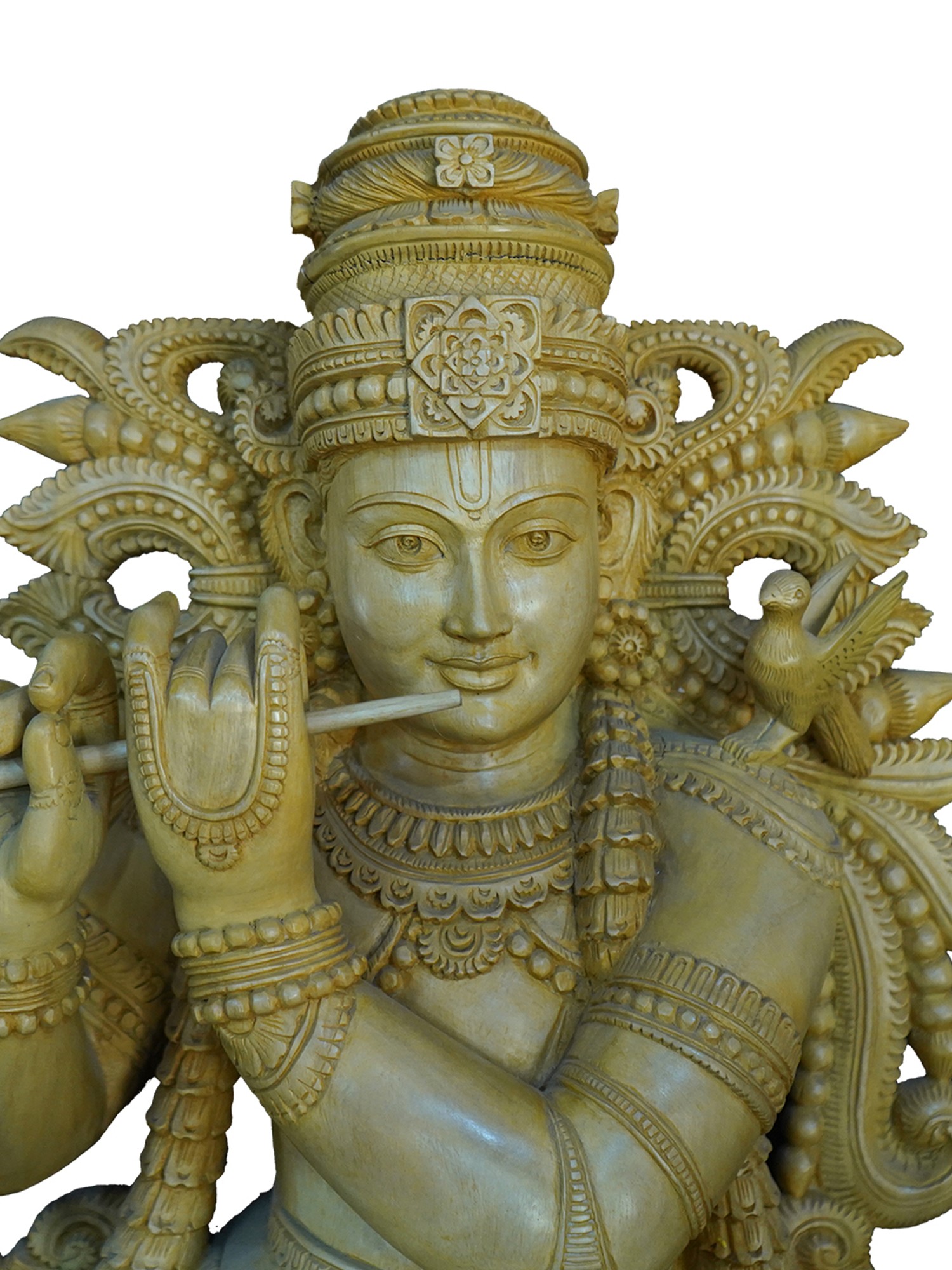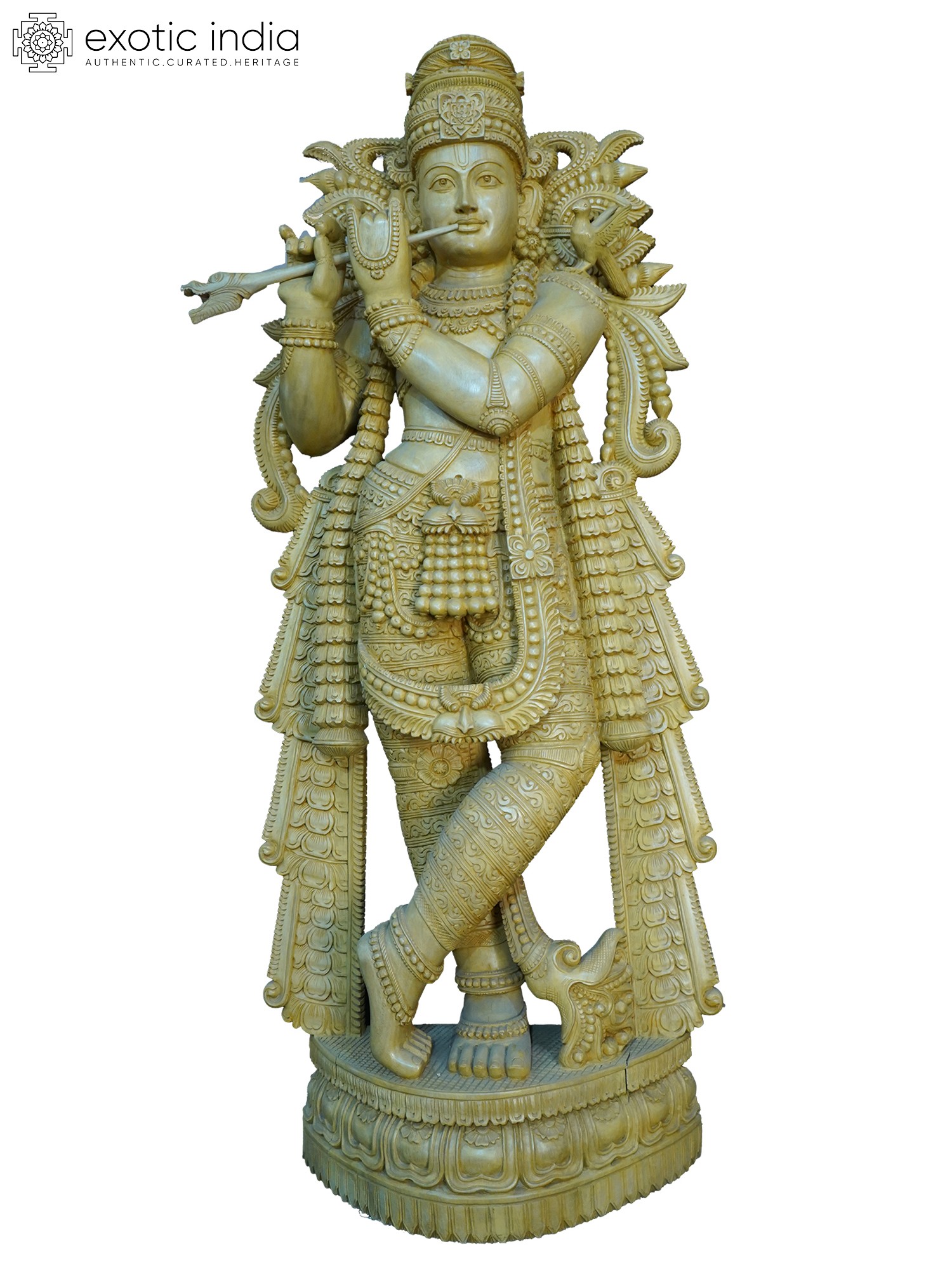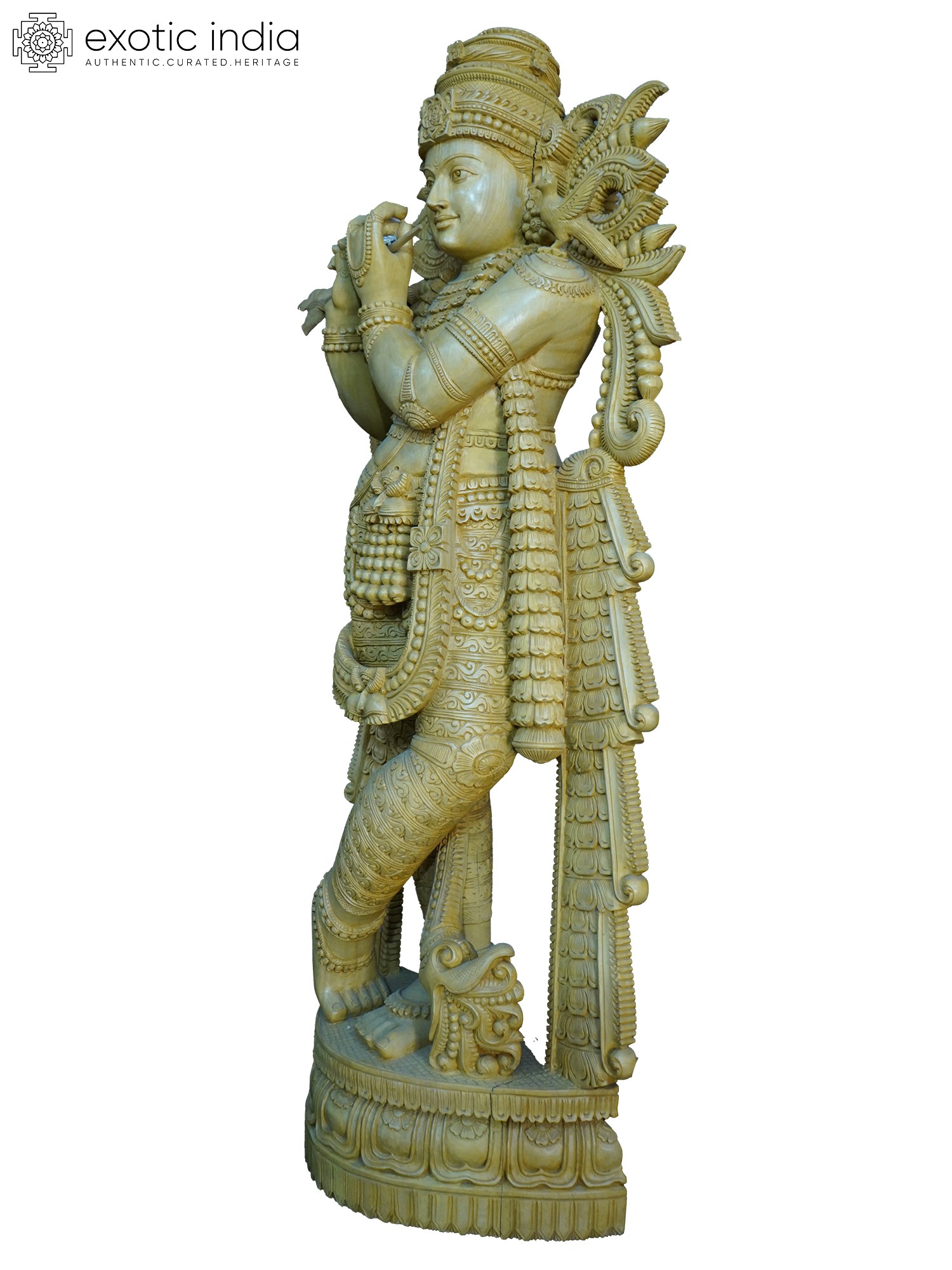72" Large Lakshmi-Narayan with Different Forms of Lord Krishna | Wood Carved Colorful Panel