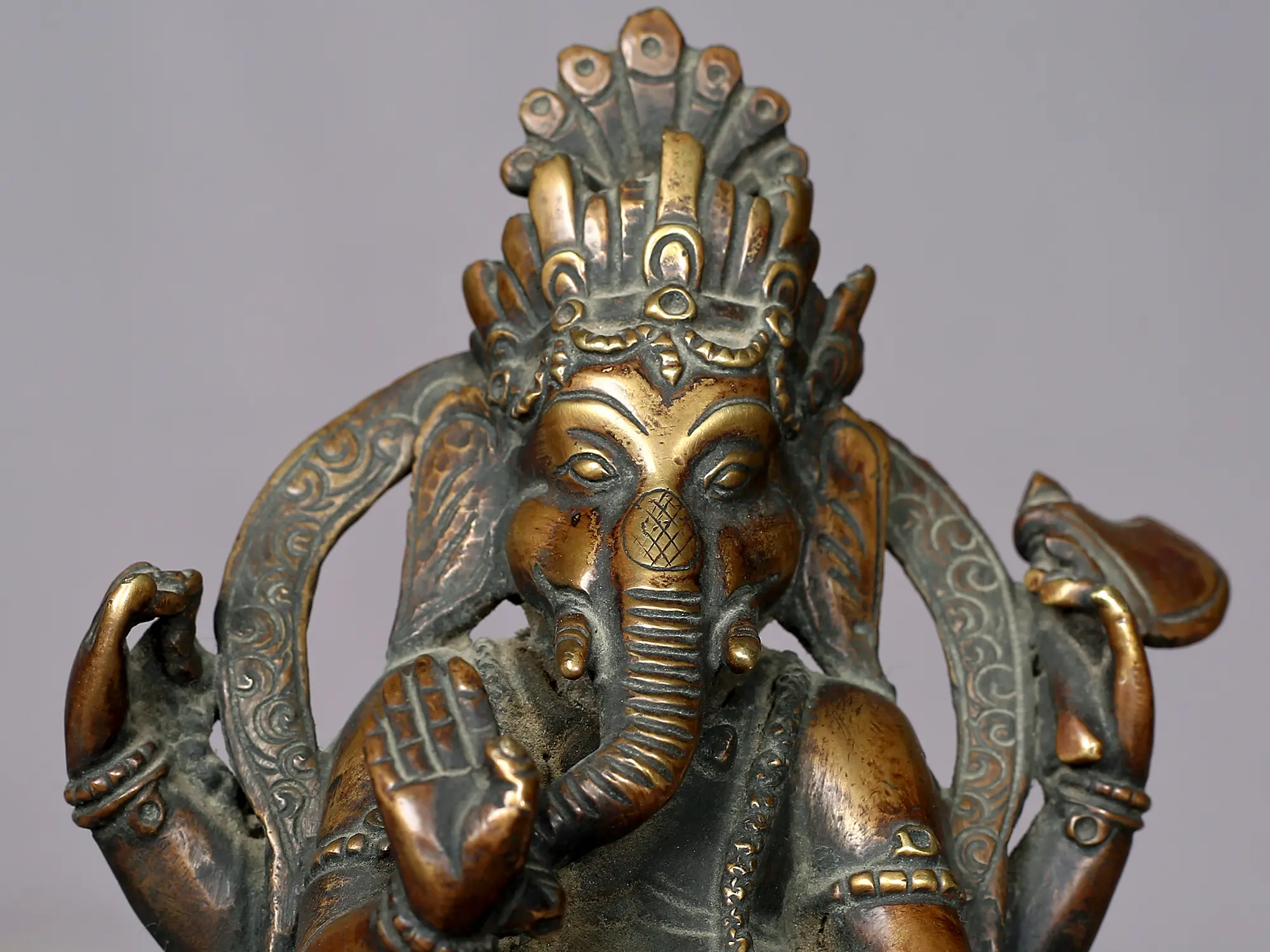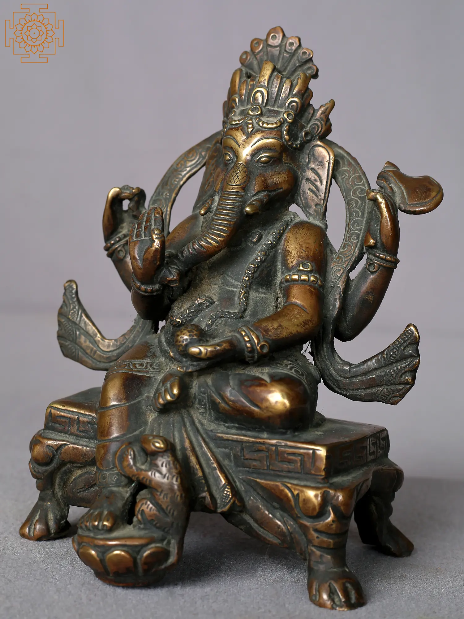 Lord Ganesha Copper Statue Gilded with 14K Gold