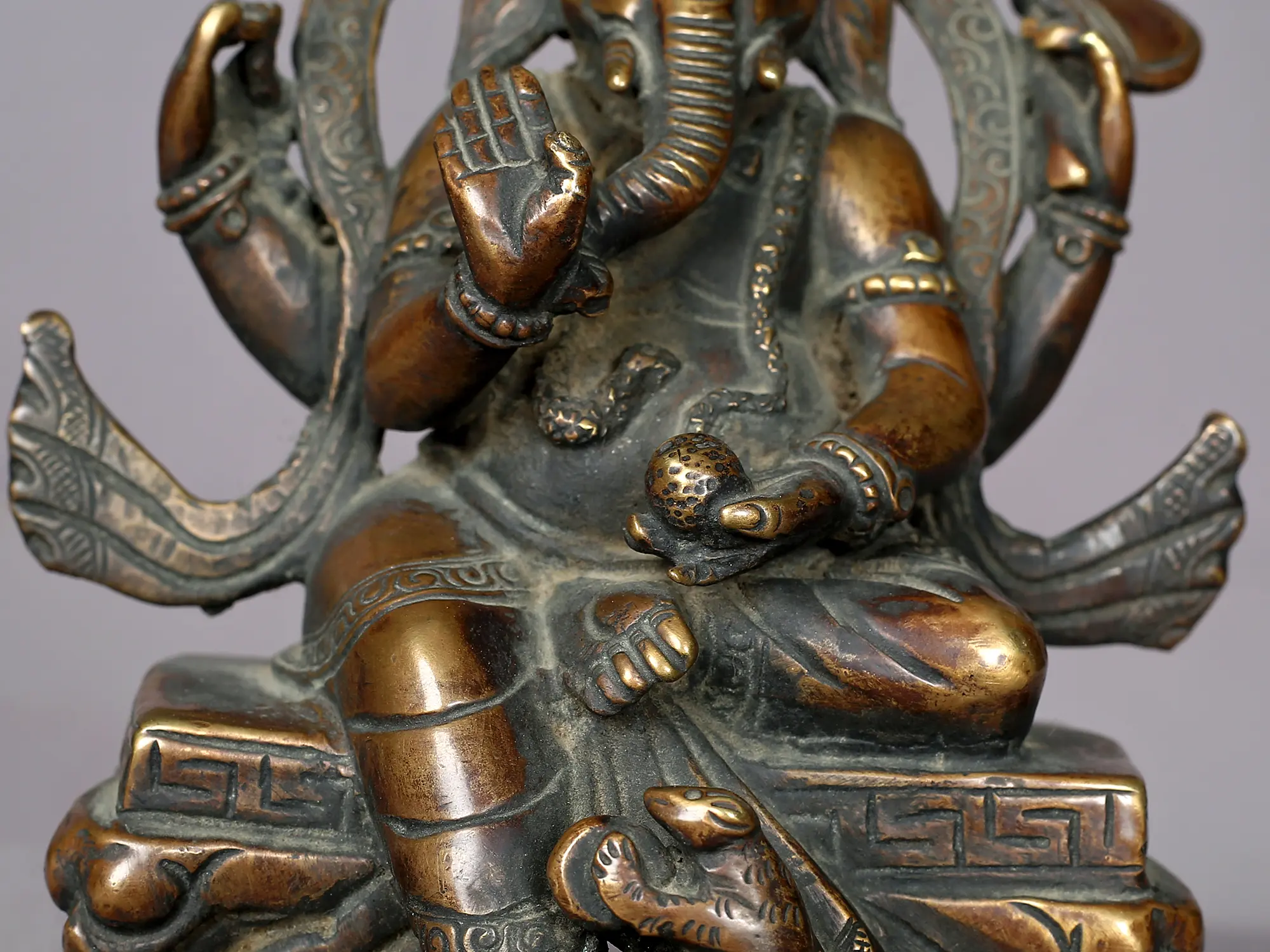 Eighteen-Armed Lord Ganesha Dancing on Rat | Nepalese Brass Statute