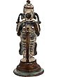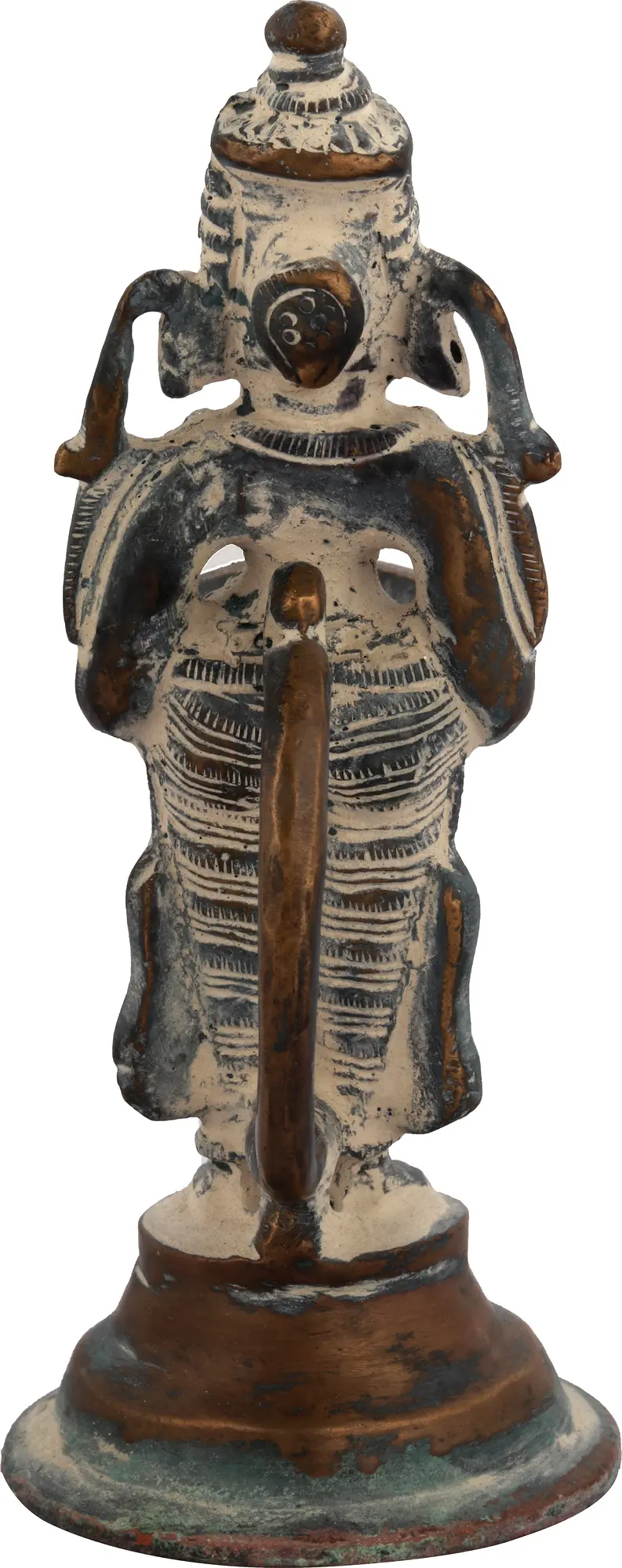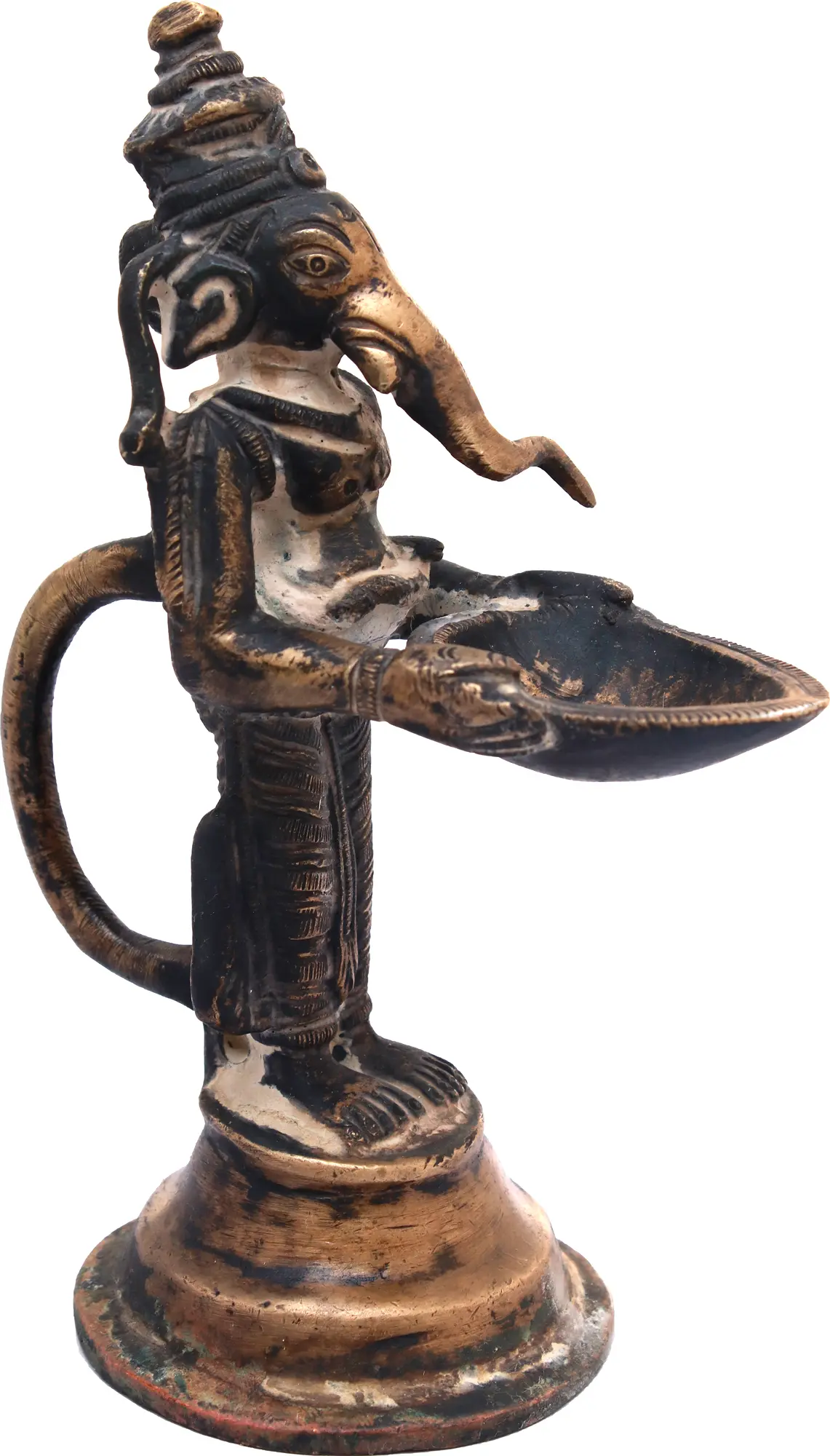 This auspicious brass lamp is blessed with the image of Lord Ganesha. He is standing, holding one lamp in his hand as if blessing the devotees with knowledge and wisdom. The structure of the lamp is roughly inspired by the Deepalakshmi. There is a handle attached to the main figure to allow the devotee to have a comfortable grip for aarti.