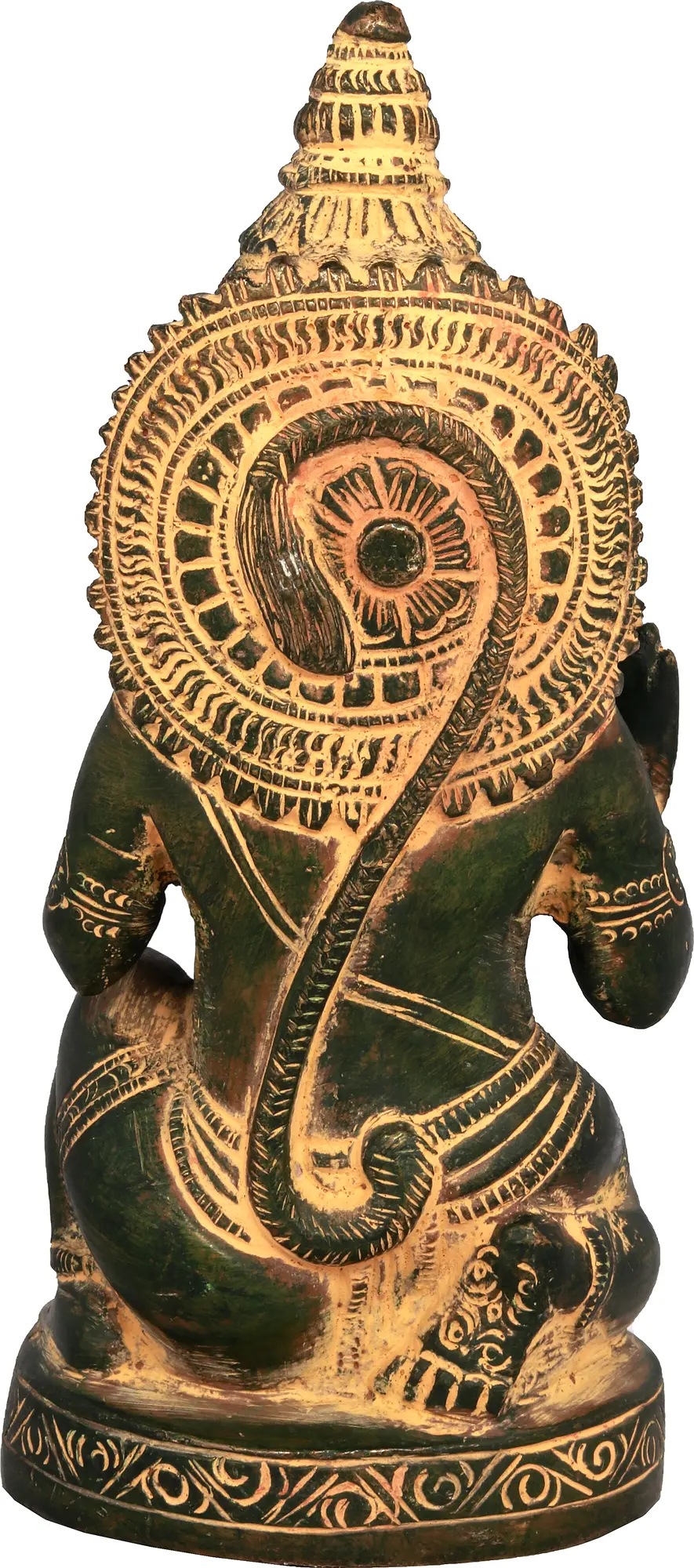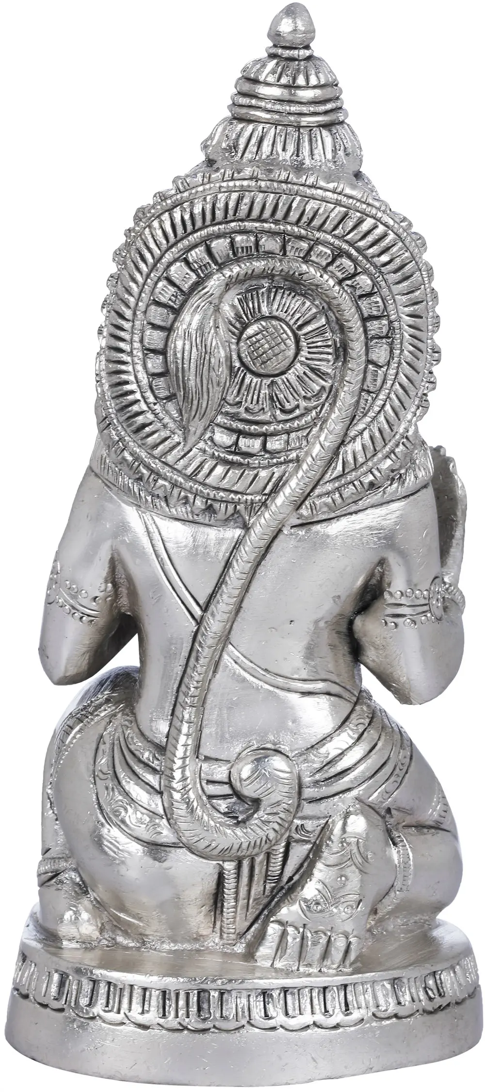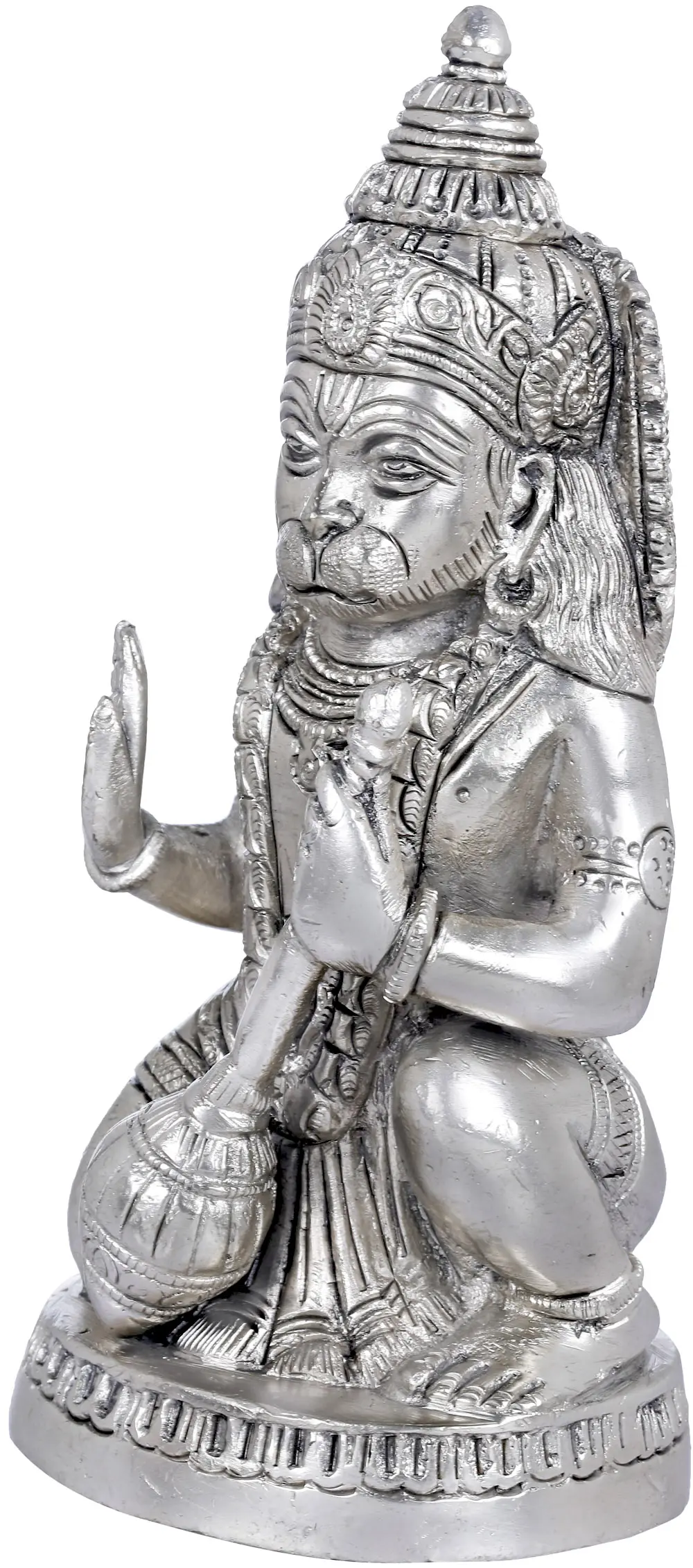 This Lord Hanuman statue, handcrafted with passion, is a beautiful representation of power and devotion. This masterpiece, handcrafted in India, depicts the courageous Hanuman in great detail, highlighting his steadfast commitment and indomitable spirit. The brass sculpture reflects the essence of the epic Ramayana, radiating heroism and divinity. This artwork pays attention to traditional artistry while embracing the eternal story of Hanuman's heroism, with every curve and shape carefully created. The brown and green patina on the statue gives it a dramatic look. The Siras chakra behind Lord Hanuman's head symbolizes the divine aura that the deity exudes. This sculpture transcends artistry as a symbol of triumph over hardship, as a reminder of heroic values and the strength of faith.