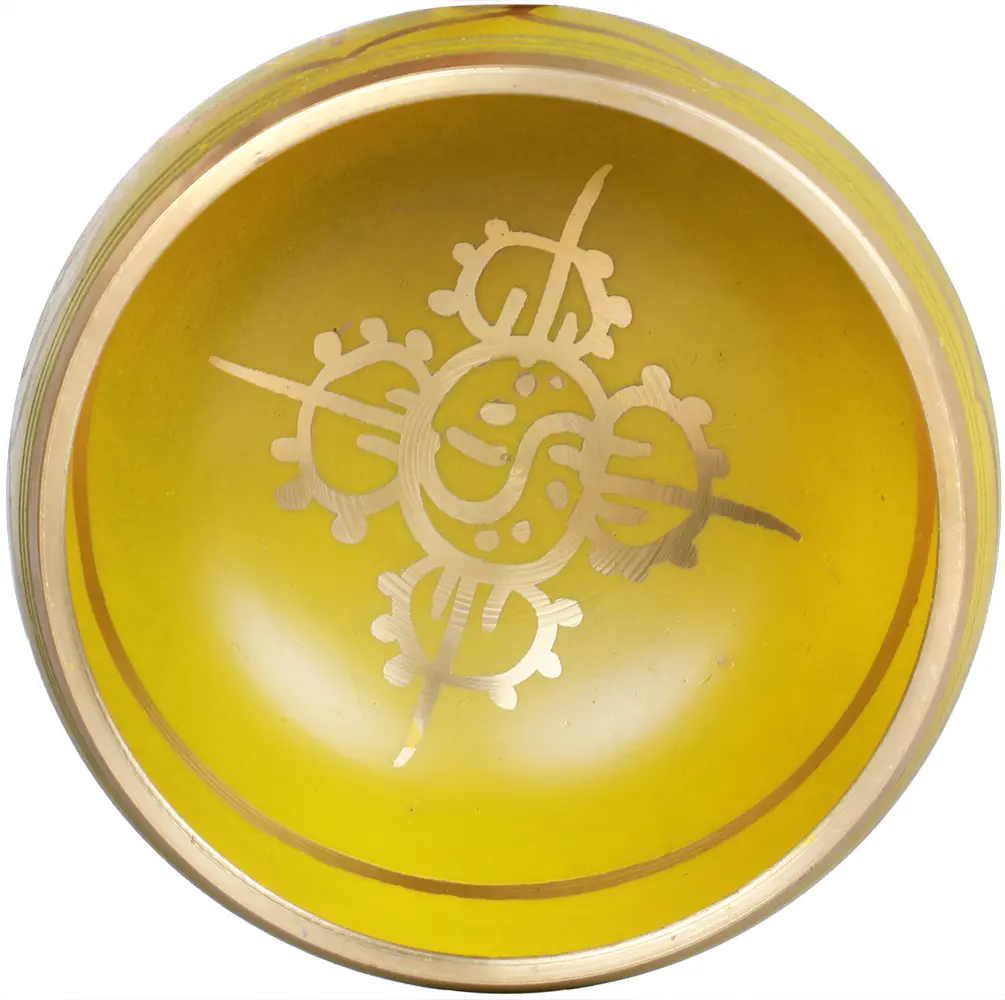 This Tibetan Buddhist Singing Bowl with Auspicious Symbols is a representation of ancient Tibetan spirituality. Made in India, this brass bowl is adorned with sacred symbols and mantras. Using this singing bowl in your rituals and meditation sessions creates an atmosphere of peace and spiritual resonance. The soothing sound of the bowl is believed to enhance mindfulness and inner harmony. Embrace this powerful tool and let it lead you on a path of tranquillity and self-discovery in the Tibetan Buddhist tradition.