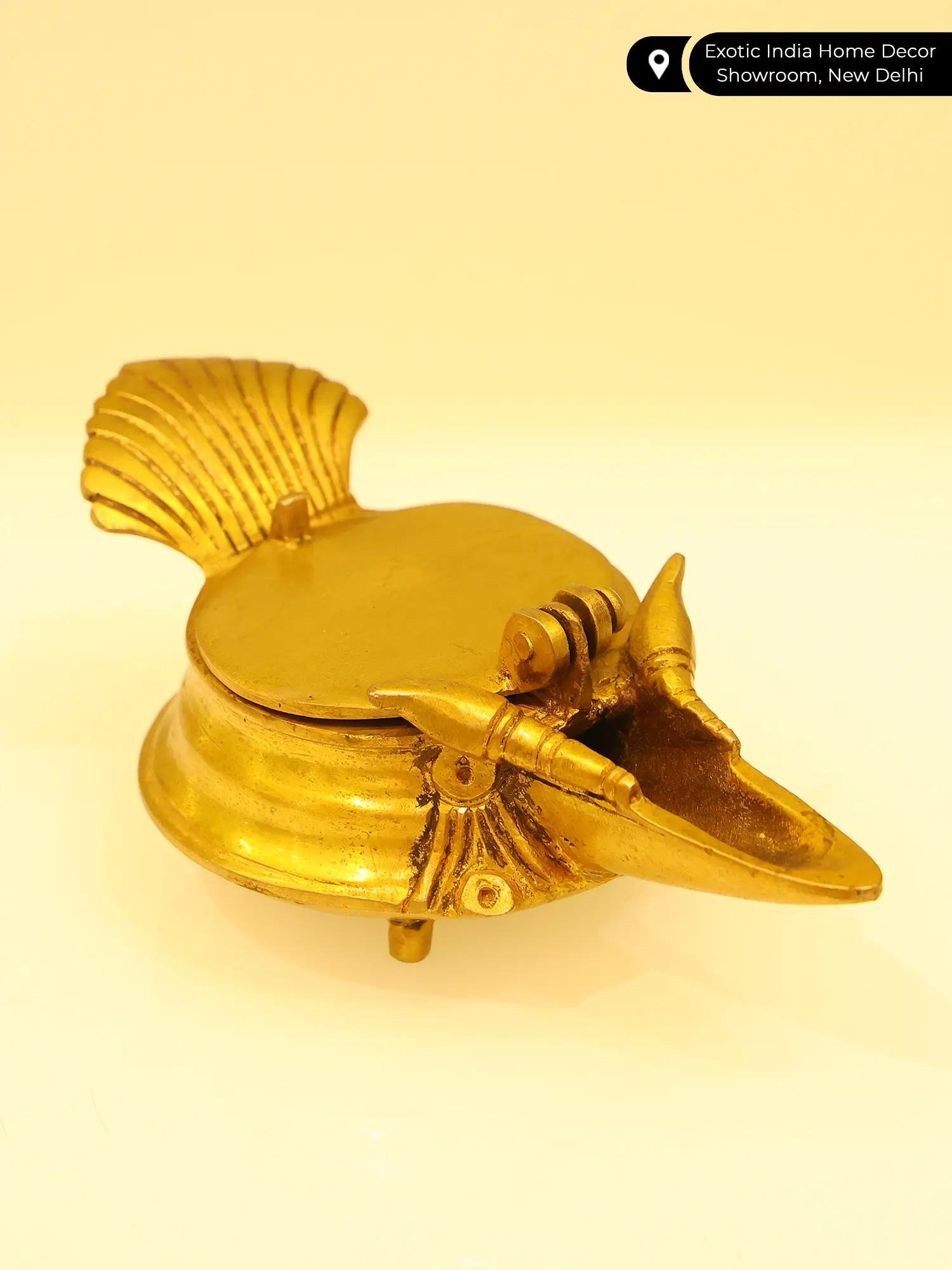 But the artistry doesn't stop there. The diya features a cleverly designed lid, with the bird’s tail at the end. This not only adds a touch of whimsy but also offers convenient access for filling and cleaning.