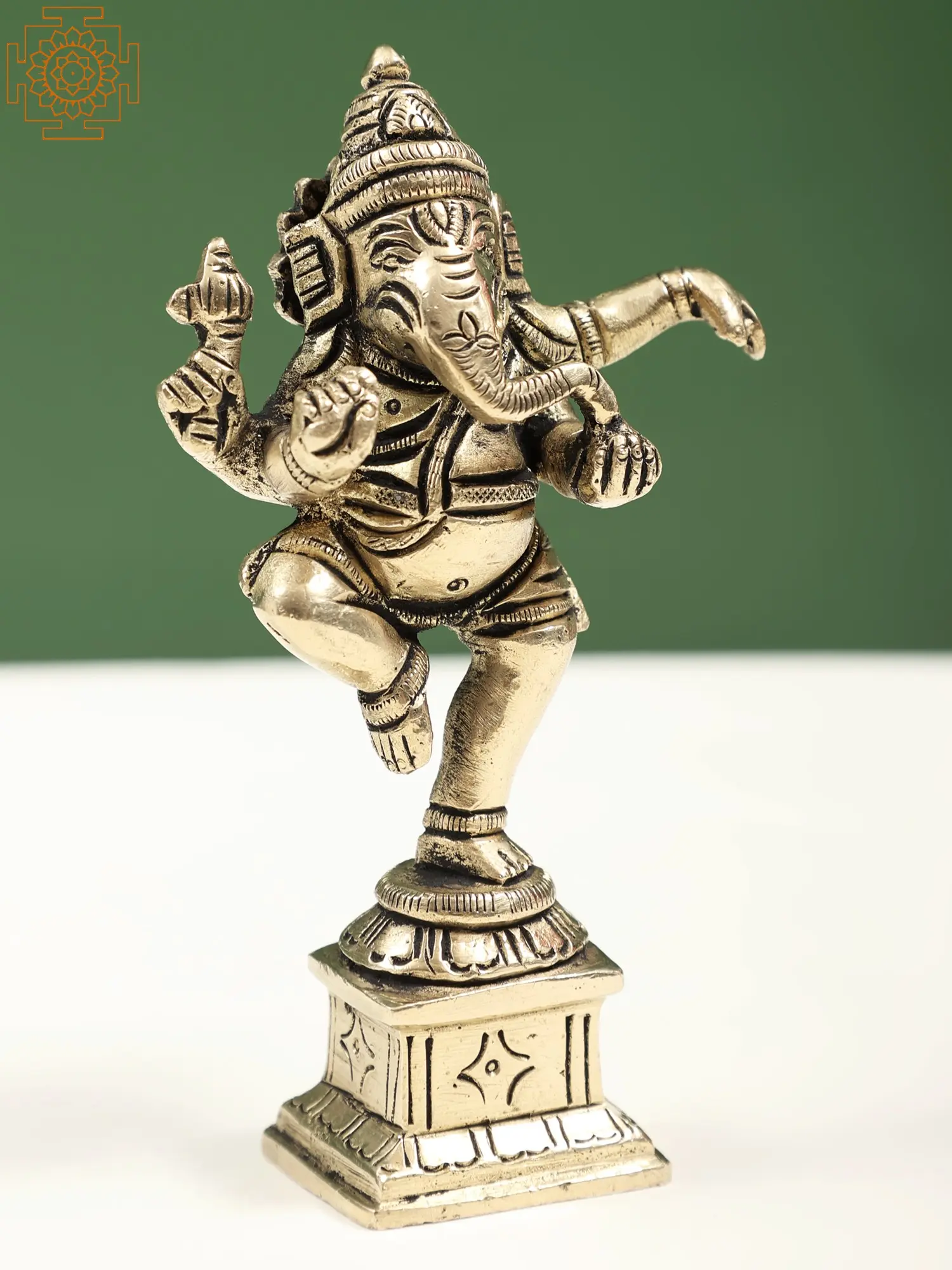 The Chaturbhuja Dancing Ganesha radiates an aura of celebration and joy. This depiction portrays Ganesha as the master of rhythm, the orchestrator of harmony, and the remover of obstacles. His dance becomes a symphony of movement, a visual ode to the boundless energy and auspiciousness he bestows. Let this sculpture be a testament to Ganesha's dynamic energy, guiding you to navigate life's rhythms with grace, positivity, and a heart full of celebration.