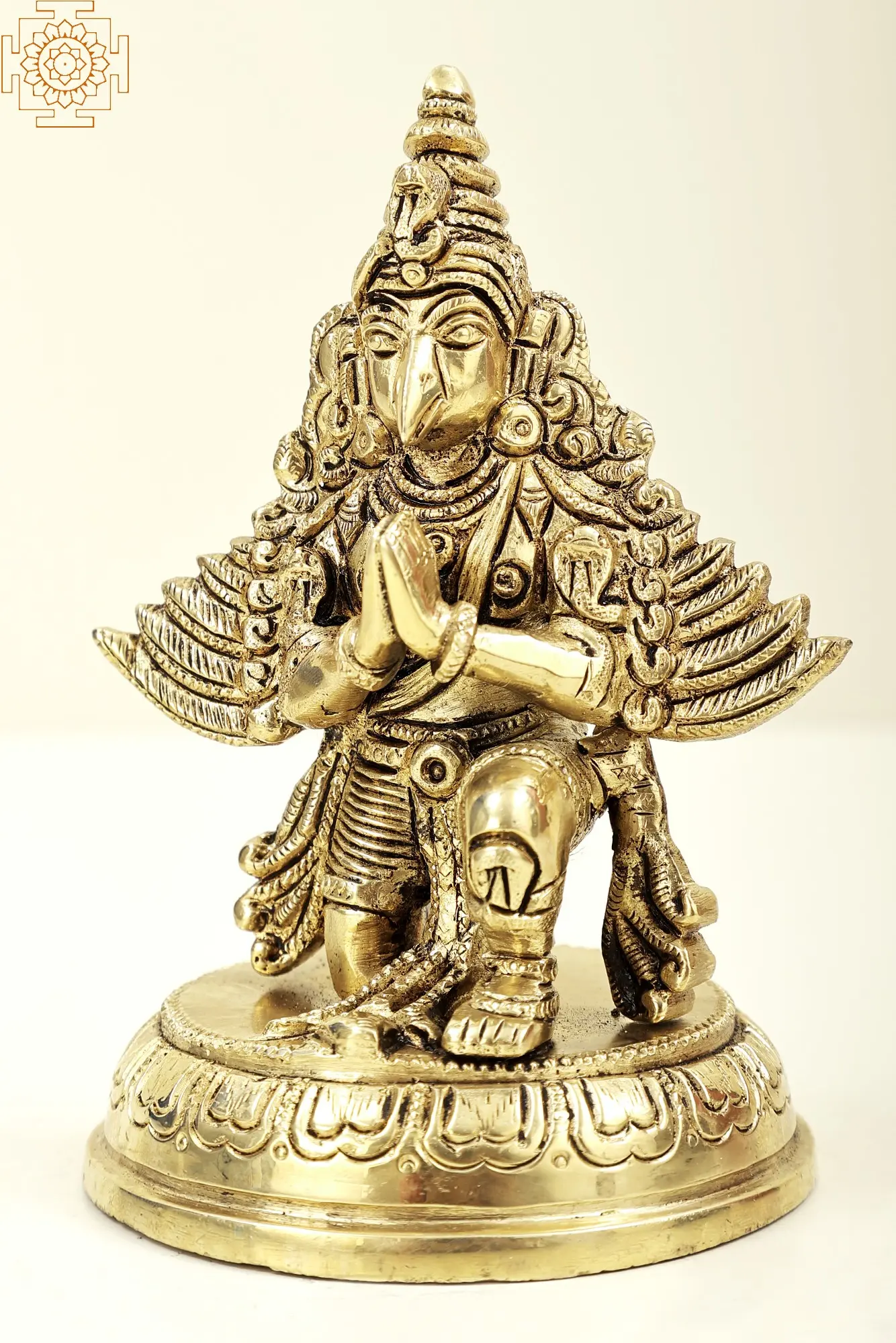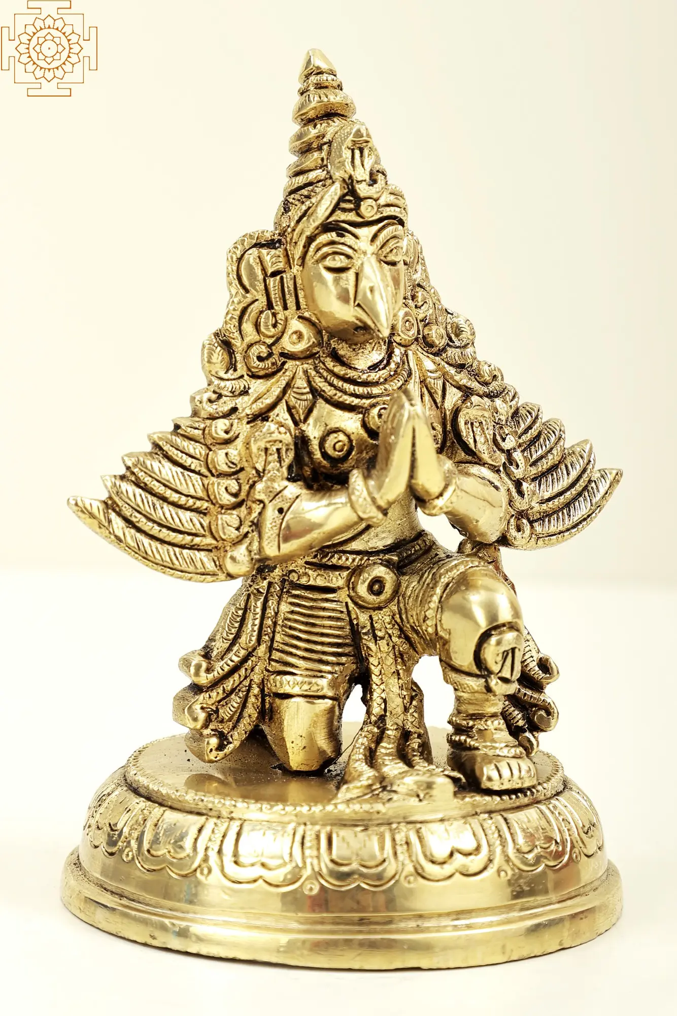 In Hindu Pantheon, Garuda is the bird (the Kite or an Eagle) and the “Vahana” (the mount) of “Lord Vishnu”. With folded hands held in the prayerful “Namaskar gesture”, Garuda symbolises respect, humility, and devotion. This portrays his unwavering loyalty and submission to the divine while capturing his majestic presence. With outstretched wings and calm demeanour, He signifies a harmonious blend of power and serenity. Crafted in gleaming brass, this divine sculpture captures the majestic aura of Gauda and reflects the artisans’ skill.