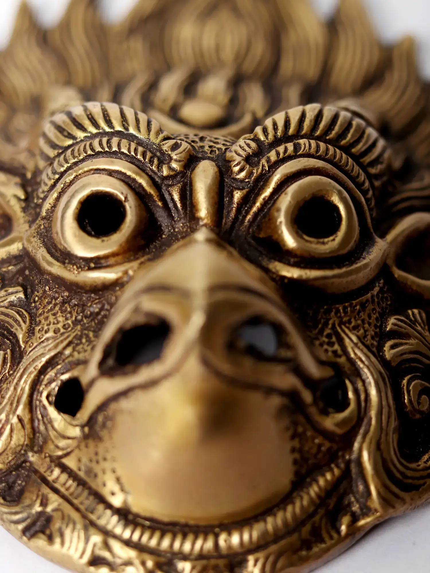 Soar with the divine on this captivating Brass Garuda Wall Hanging Mask. Channel the power and loyalty of Garuda, the mighty bird-God and mount of Lord Vishnu - from his sharp talons to his majestic wings, showcase Garuda's grandeur and unwavering devotion. This is a symbol of protection, spiritual growth, and unwavering faith. Hang this artwork in your home to invoke Garuda's blessings and add a touch of mythical power to your space.