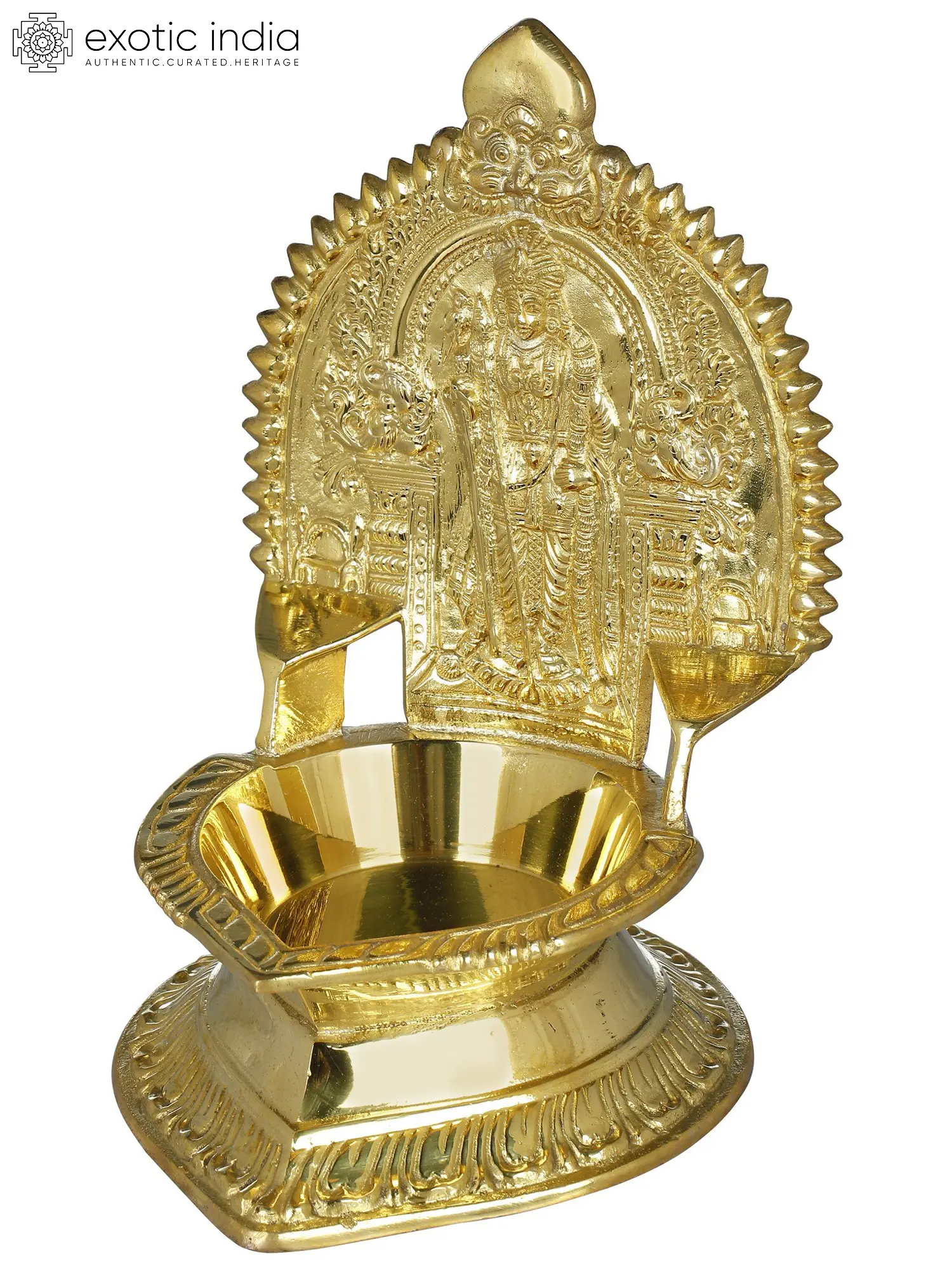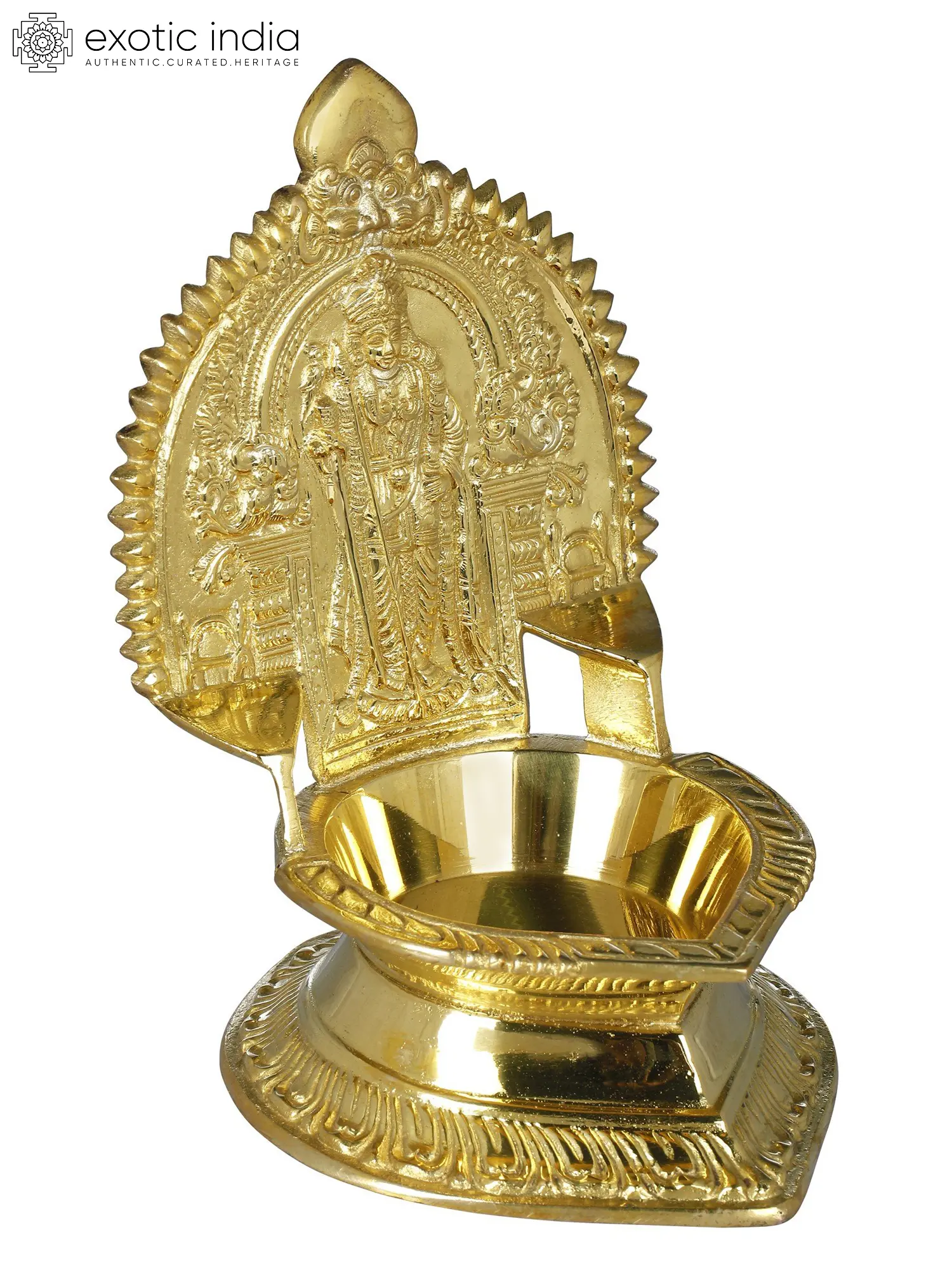 The grace of Lord Murugan, the deity of valor and virtue, comes alive in this lamp. Meticulously sculpted by skilled artisans, this lamp bears the likeness of Lord Murugan himself. His divine form in brass, the intricate details of his multiple arms, his steadfast posture, and the ever-watchful third eye radiate an aura of spiritual significance. Each groove, each line, and each carving tell a story from the base that bears the weight of tradition to the pinnacle that reaches for the divine, every groove and line narrates a tale of centuries-old craftsmanship. It's a story of the dedication of the artisans who pass down their skills from generation to generation.
