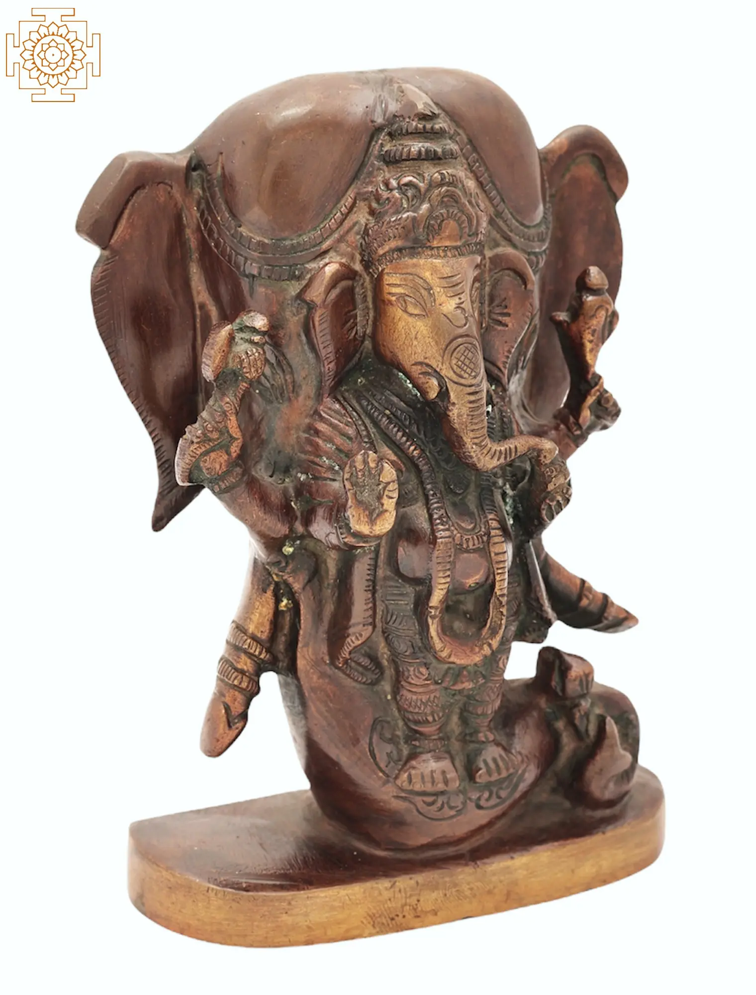 5" Brass Lord Ganesha Idol Standing in the Backdrop of Elephant Head