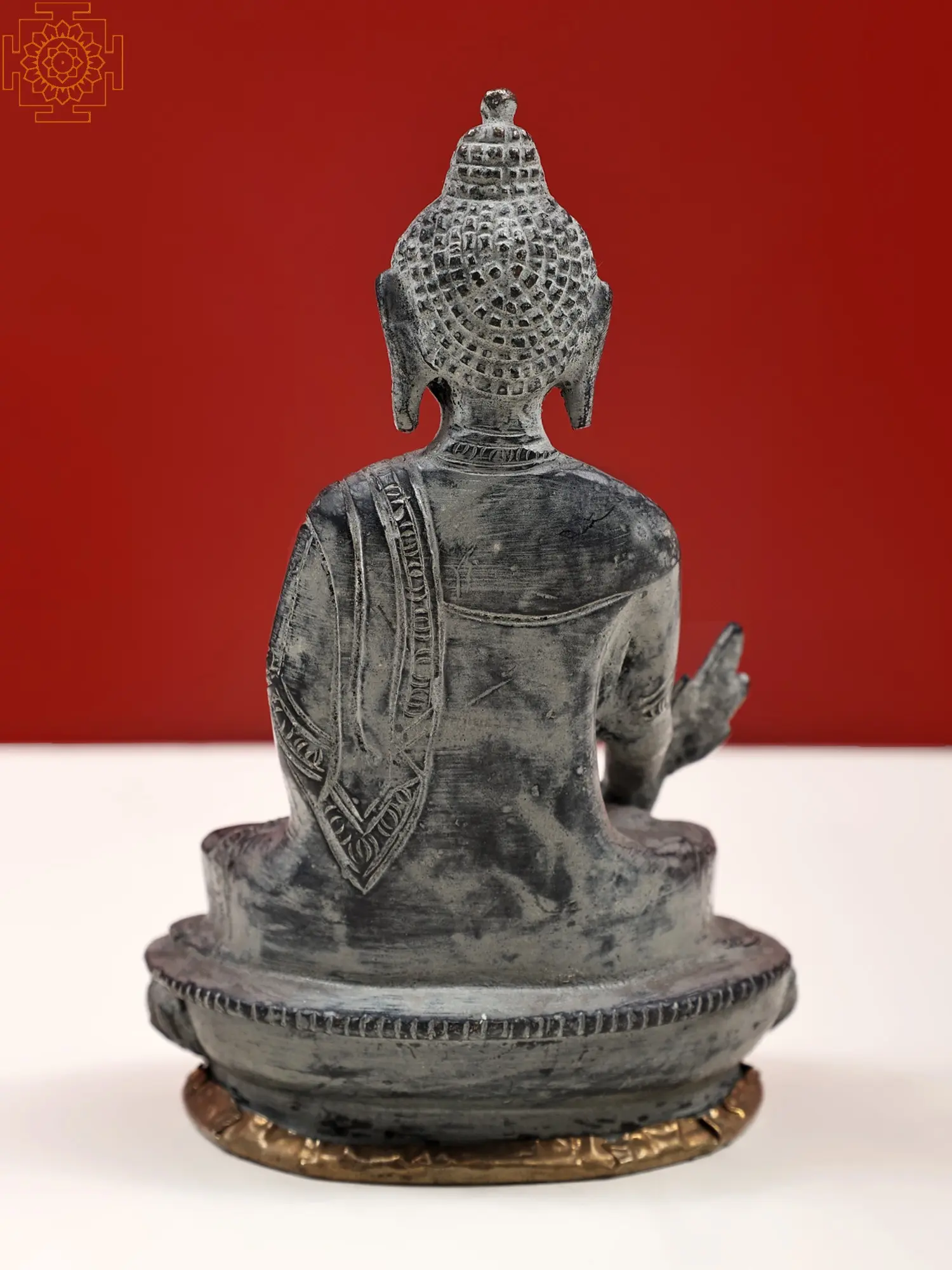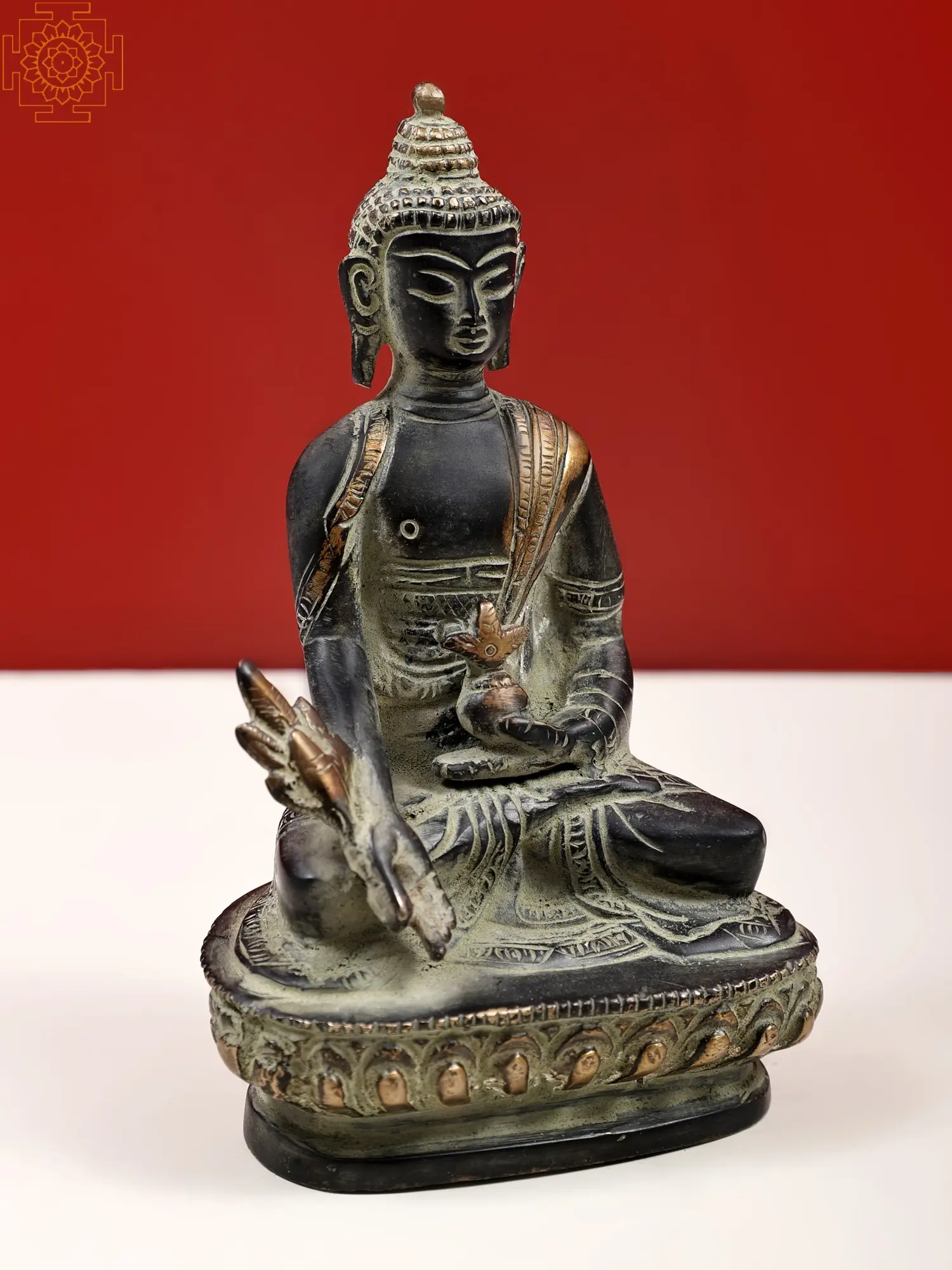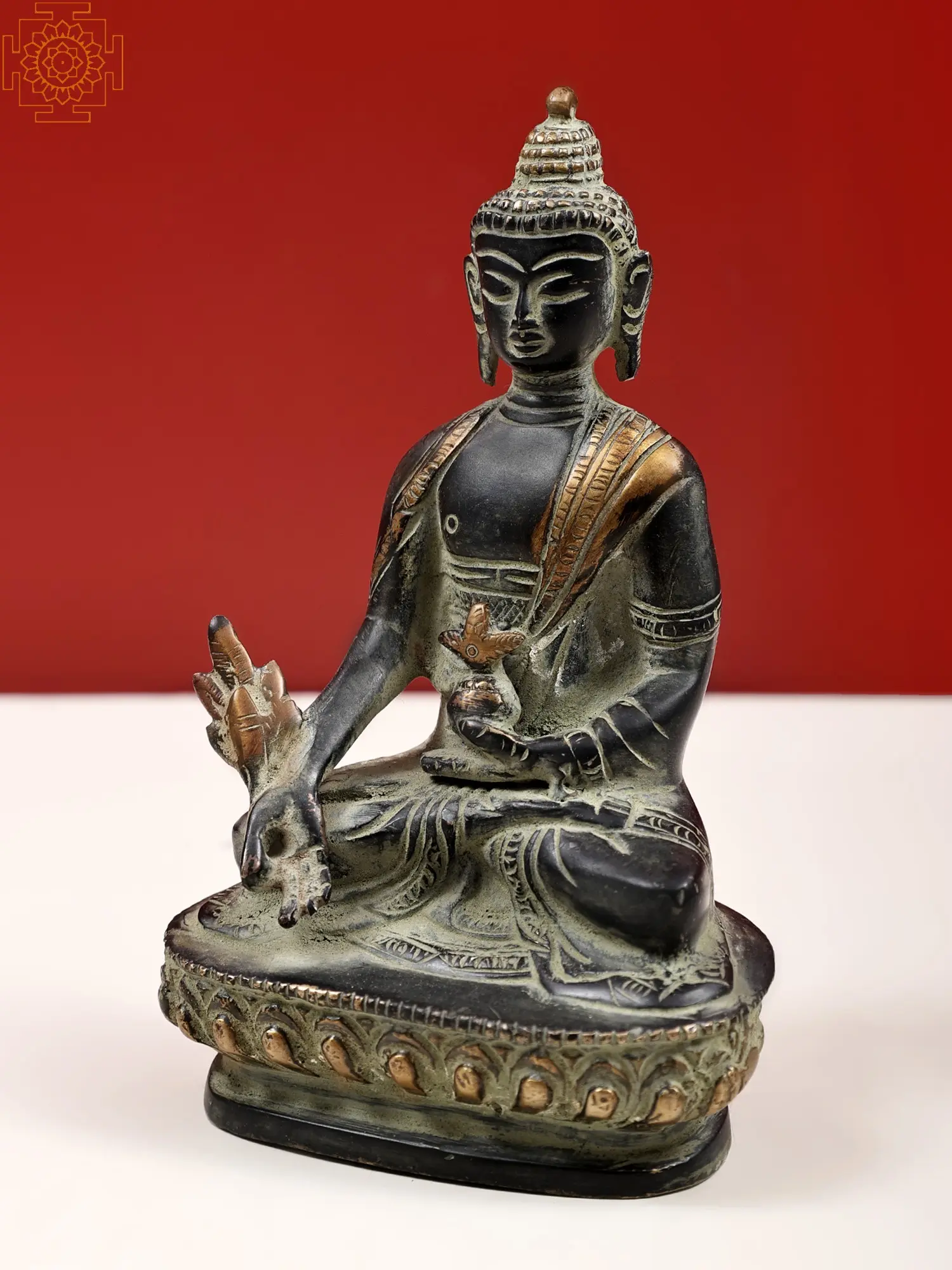 Medicine Buddha is popularly known as “Bhaisayaguru”. Often depicted seated in meditation (Dhyana Asana), his left hand holds a bowl of “Healing Nectar”, while his right hand holds the Myrobalan plant (also known as “Haritaki” or “Terminalia Chebula”), symbolising Lord Buddha’s role as the “Healer”. It is believed that by keeping the Medicine Buddha at home, the healing powers of the family members enhance and evil forces will not be able to infiltrate the household. Crafted in Brass, the sacred artwork invites you to find solace and relief from suffering through the divine blessings of the “Healing Buddha”.