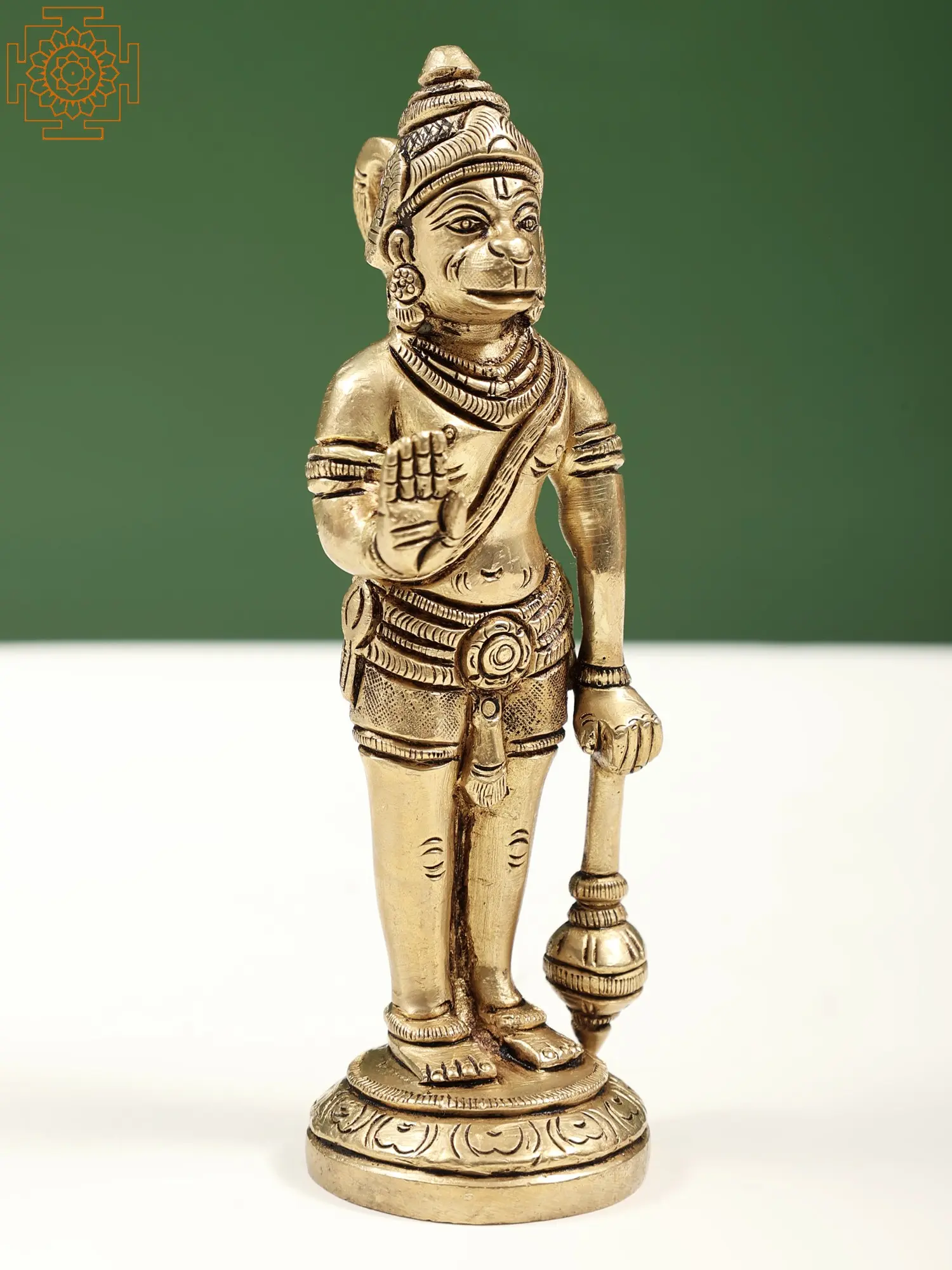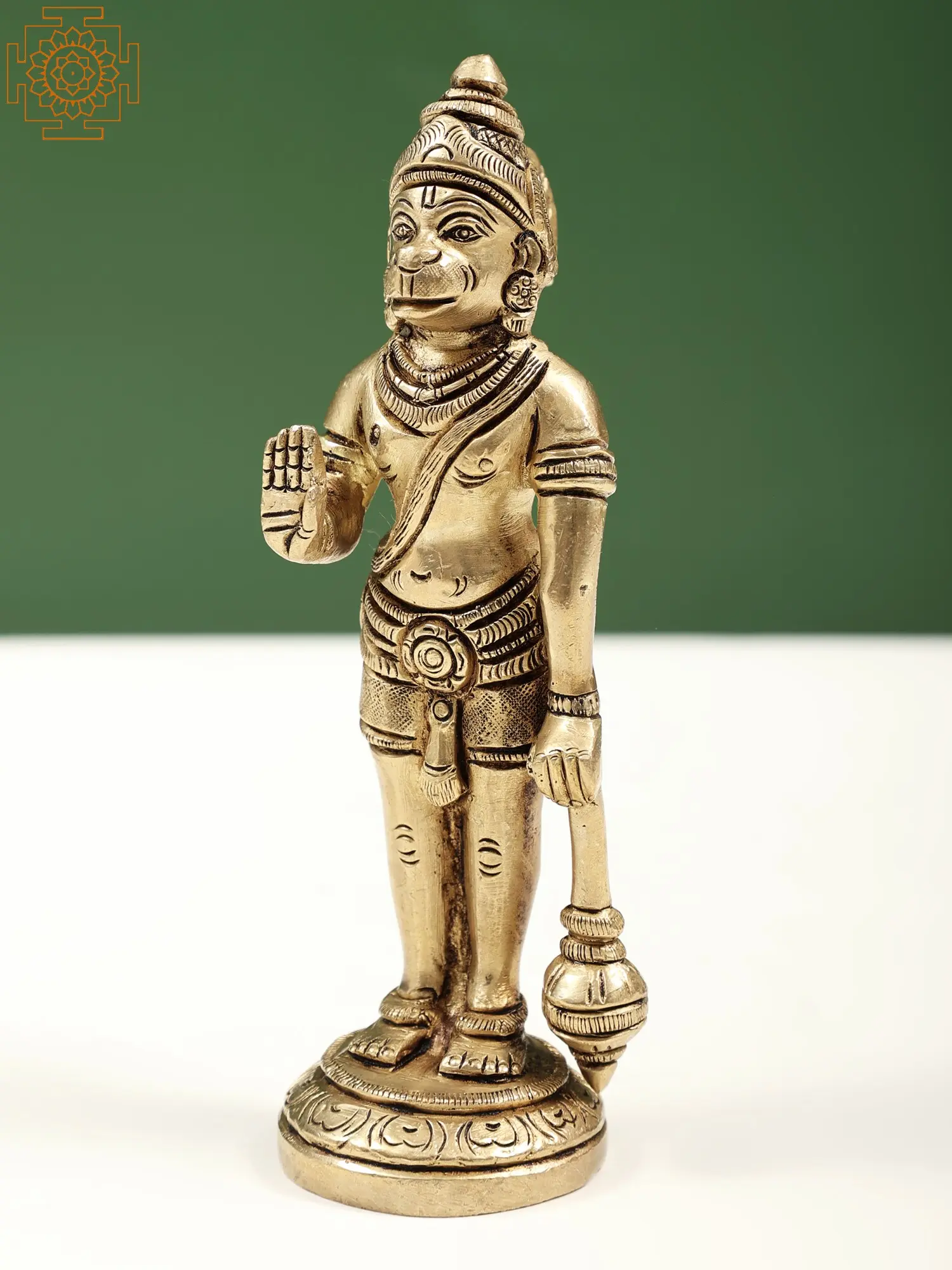 “Bhakti” resonates through Hanuman’s brass form, embodying unwavering loyalty. His open chest reveals the emblem of Lord Rama, illustrating the union of devotees and divinity. The mace clenched in his mighty fist symbolizes protection from life’s adversities. As he stands poised, veins pulsating with fervor, the devout monkey god reminds us that strength is not solely in muscles, but in the devotion that fuels our spirit. This handmade creation captures Hanuman’s boundless energy, a testament to the strength found in surrender and service.