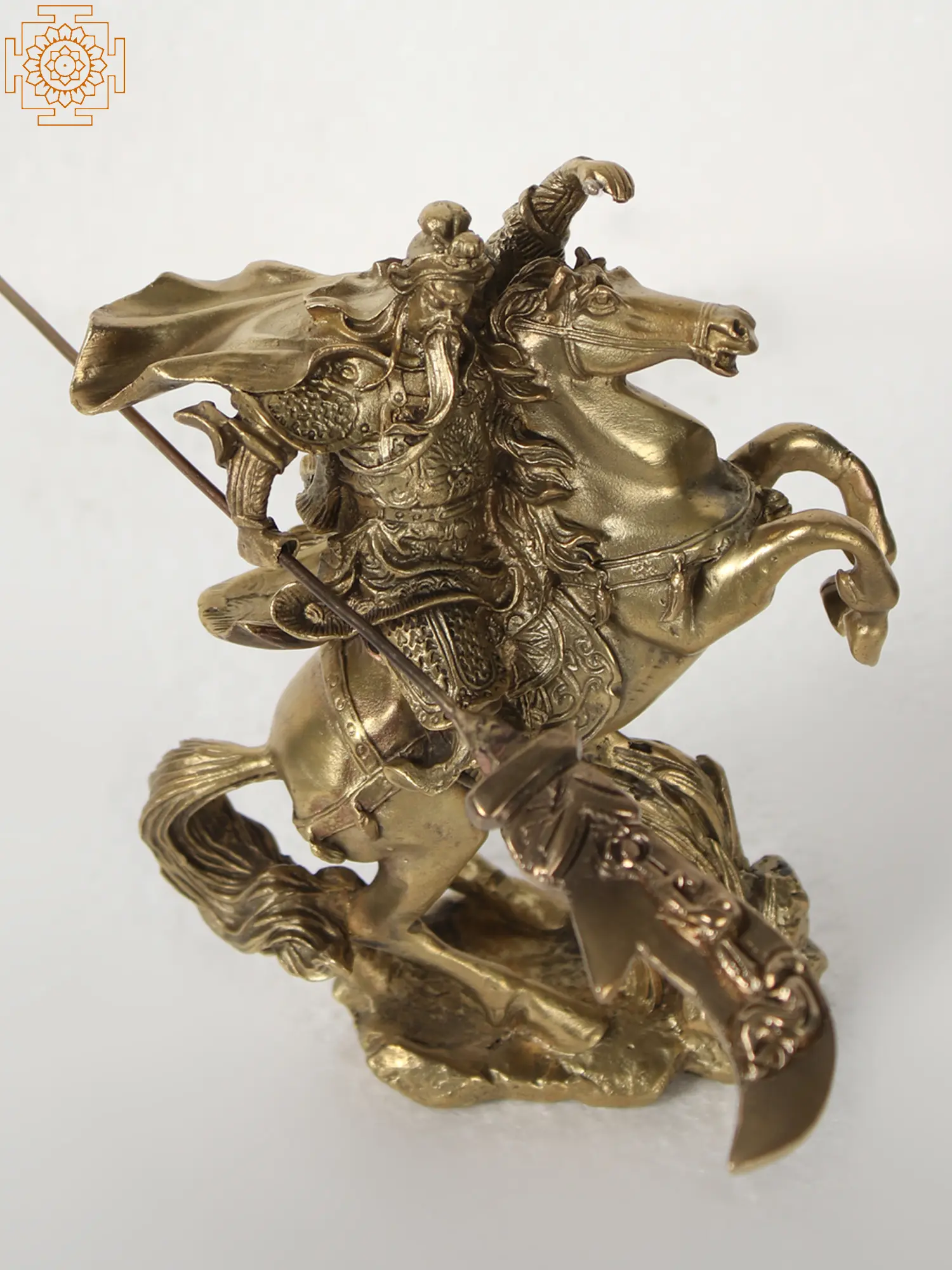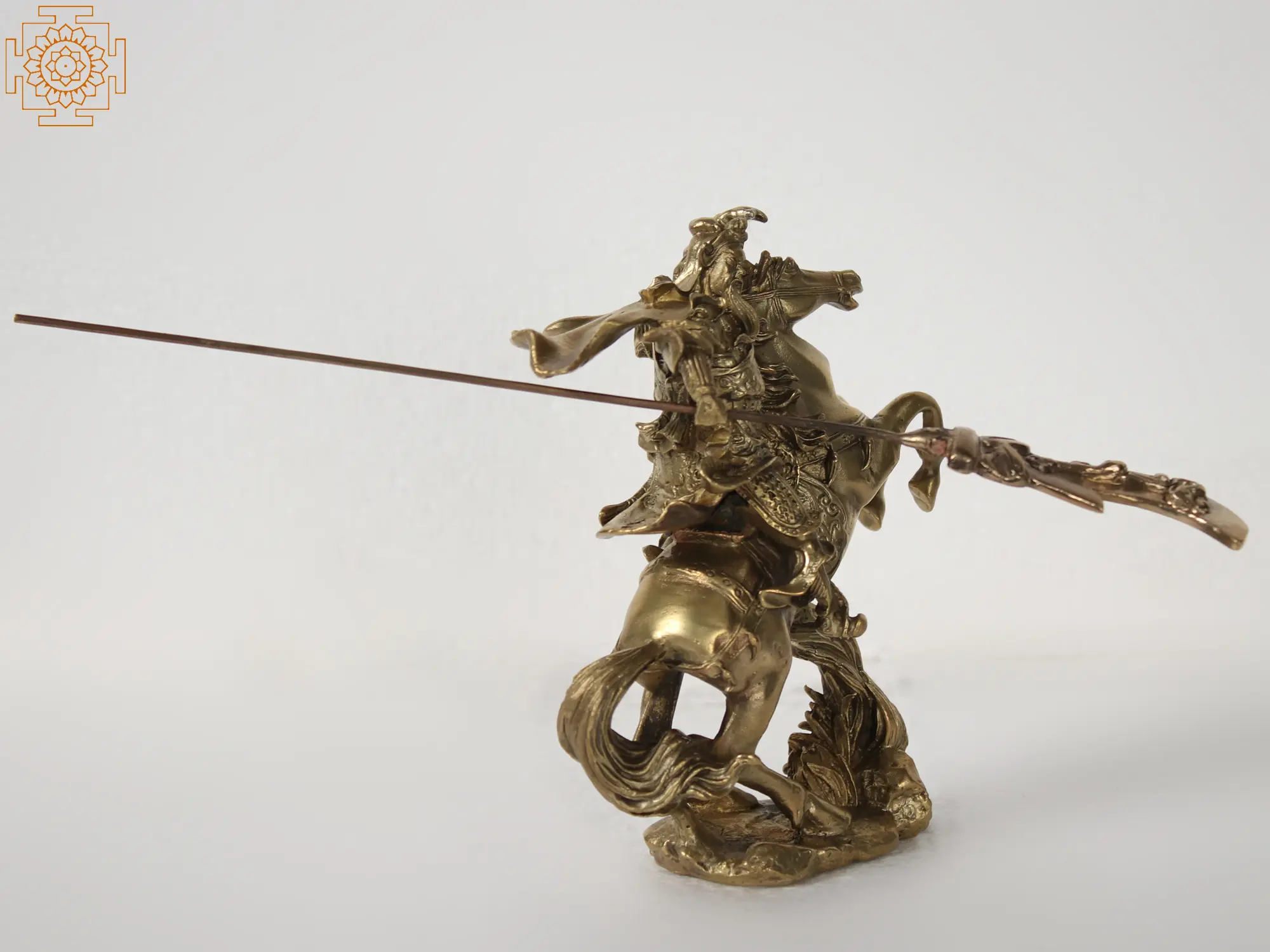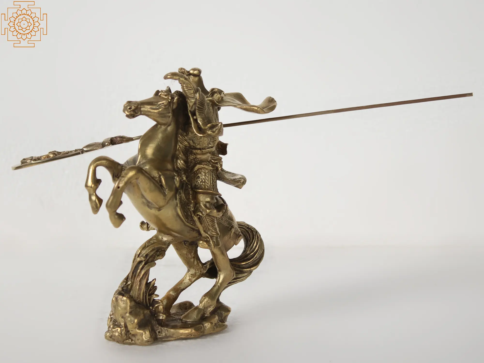 This statue evokes the powerful imagery of legendary heroes and kings from across cultures. Think of the great warrior Guan Yu from the Romance of the Three Kingdoms, a figure revered for his loyalty, righteousness, and martial skill, often depicted with a formidable weapon and astride a magnificent steed. Or perhaps it calls to mind the epic tales of ancient Indian emperors and their cavalry, where the horse was a symbol of status, power, and the ability to traverse vast kingdoms. This piece transcends specific historical or mythical figures, embodying the universal ideal of a valiant leader, a protector of their people, and a force to be reckoned with.