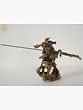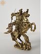 This exquisite bronze statue captures the very essence of martial prowess and noble leadership. Standing at just under six inches tall, it depicts a formidable king mounted upon a spirited horse, poised for action. The dynamic pose, with the horse rearing slightly and the king firmly in control, conveys a sense of power and unyielding spirit. Every detail, from the intricate armor adorning the warrior to the flowing mane and musculature of the horse, speaks to the mastery of the artisan. The rich, golden hue of the bronze lends an aura of timelessness and prestige to this remarkable piece.