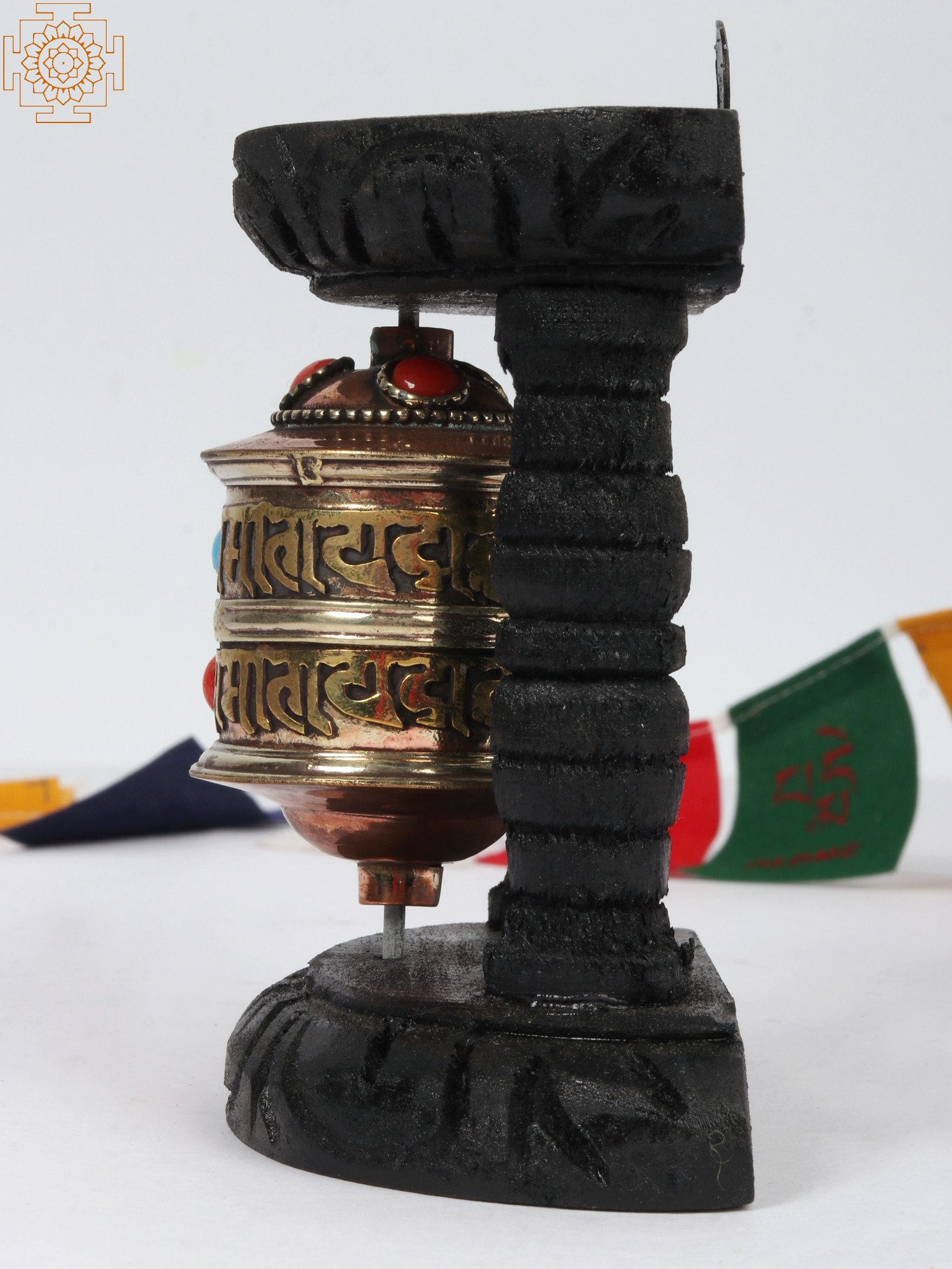 Copper & White Metal 6" Tibetan Buddhist Prayer Wheel - Ritual Item