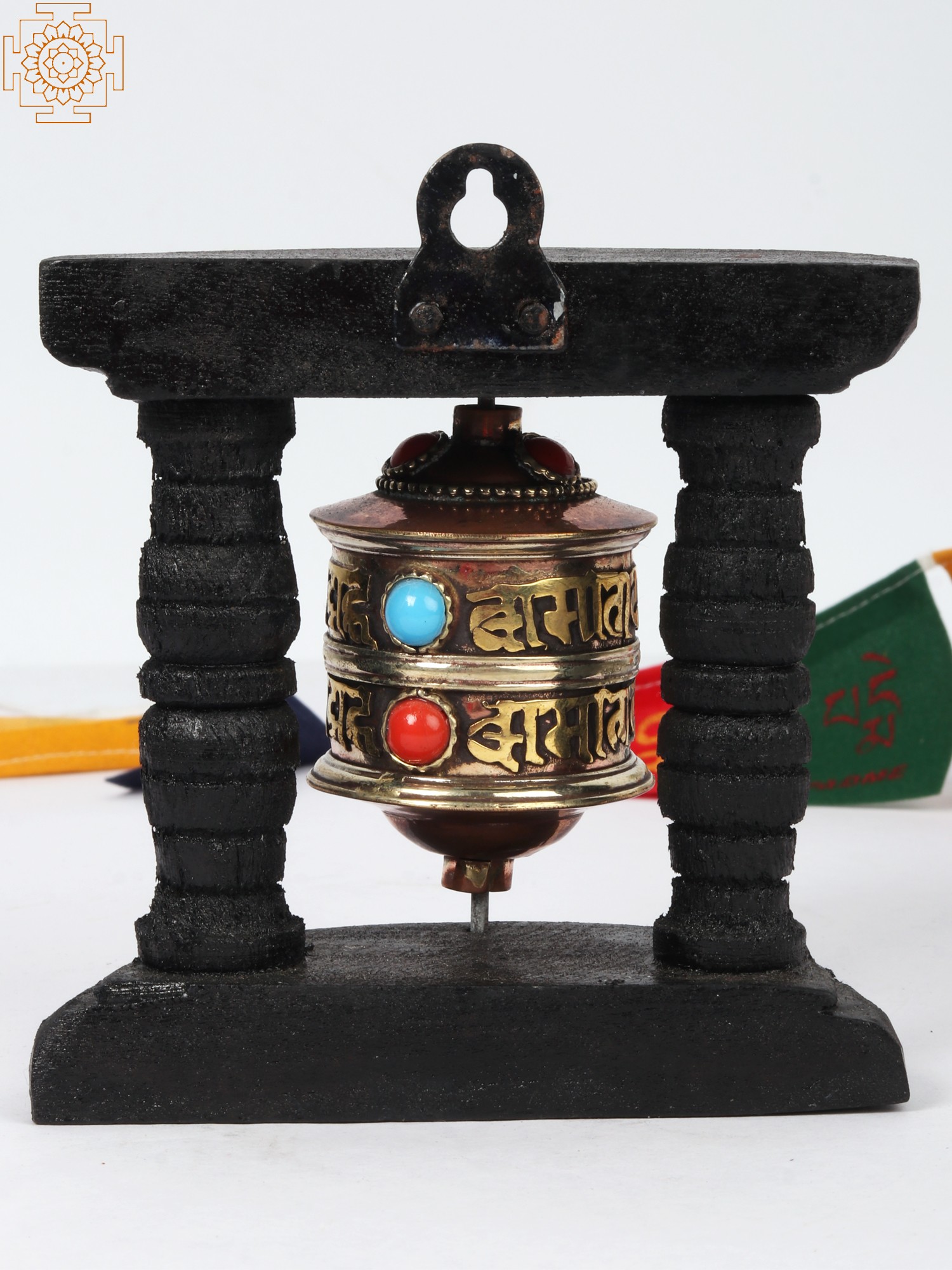7" Brass Prayer Wheel with Dharma-chakra (Ashtamangala) | Handmade | Made in India