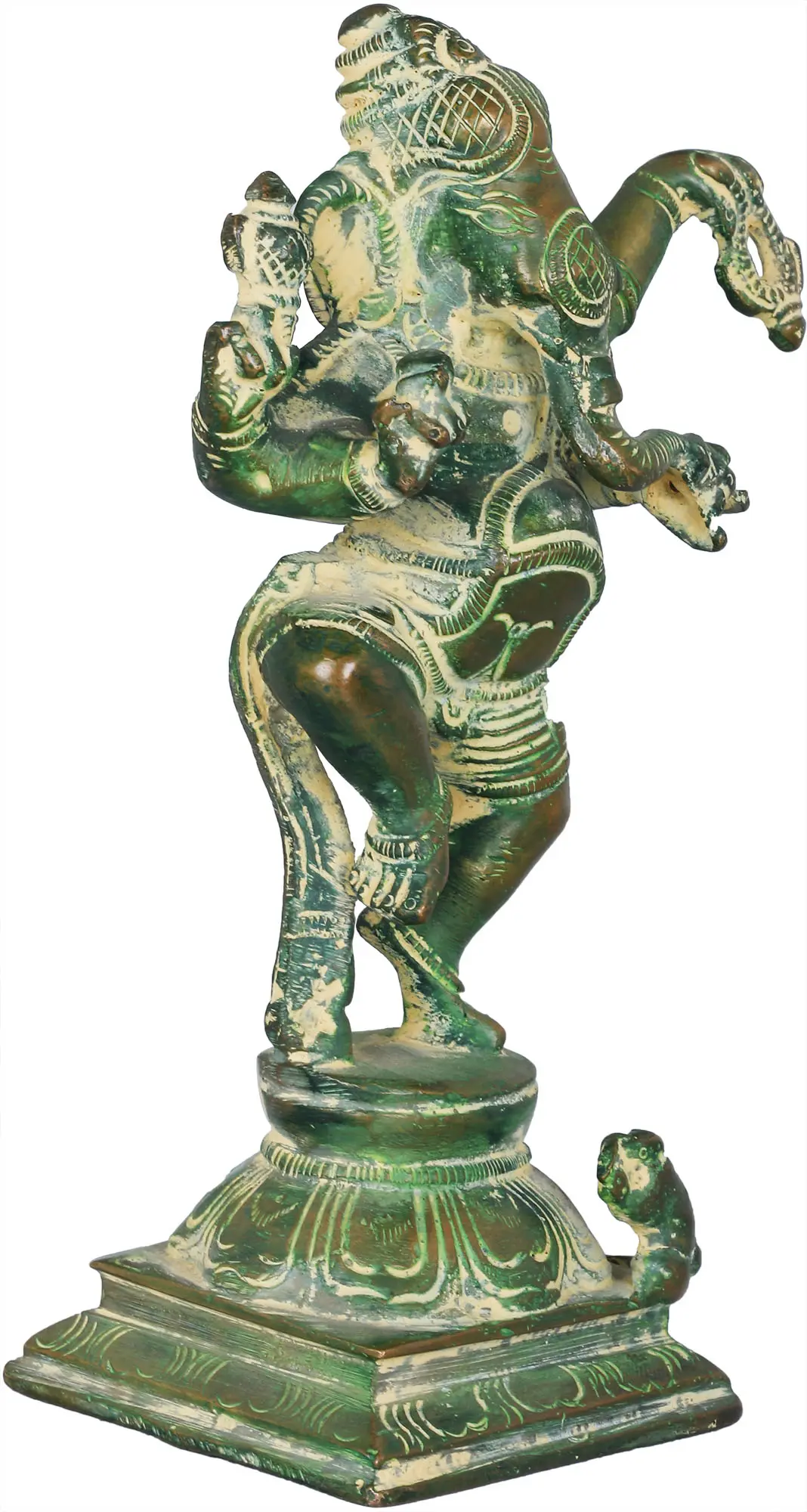 Witness Lord Ganesha in his resplendent dance as Nritya Ganapati, a joyful celebration of life's rhythms. With each graceful step, he reminds us that the dance of existence is a harmonious melody, where obstacles are transformed into opportunities for joy. His dance reflects the creative spirit within us all, inviting us to express ourselves freely and embrace the beauty of life's diverse experiences.