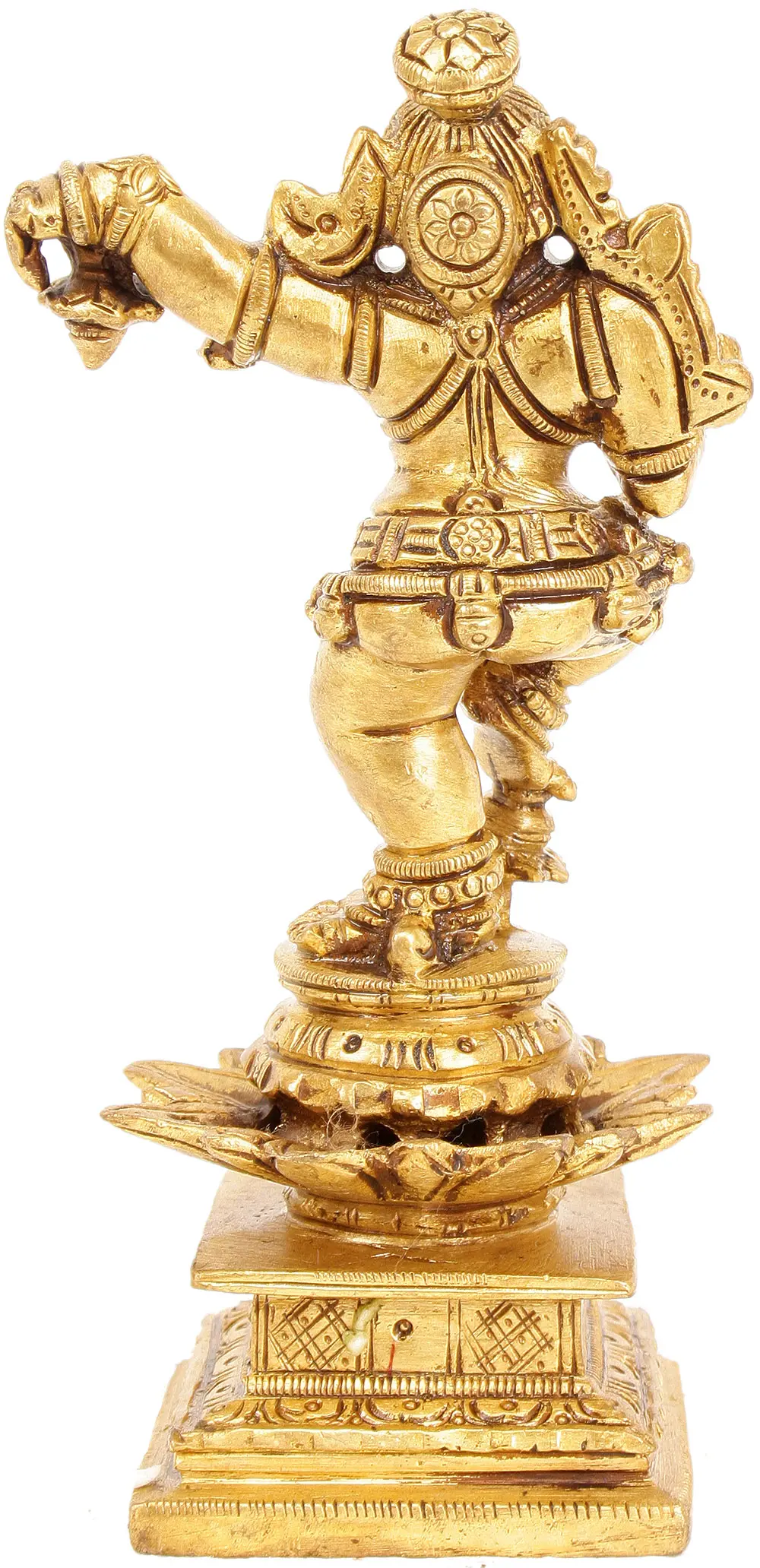 Immerse yourself in the playful charm of Lord Krishna as a baby with this Handmade Brass Dancing Baby Krishna statue. This adorable sculpture, crafted in India, captures the innocence and joy of the divine child. Baby Krishna embodies the concept of "Leela" or divine play, where life is a cosmic drama. His enchanting smile symbolises the interconnectedness of joy and spirituality. The intricately crafted brass statue serves as a visual reminder of the beauty of childlike innocence, echoing the core concept of "Ananda" - divine bliss. Having Dancing Baby Krishna in your space invites the energy of joy and spiritual awakening. It serves as a profound reminder of the interconnectedness of playfulness and the path to spiritual happiness, celebrated in the teachings of Lord Krishna.