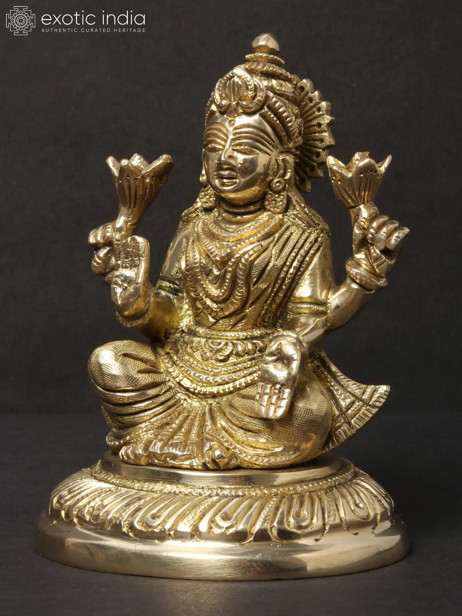 The detailed craftsmanship of this statue brings to life the serene countenance and divine aura of Goddess Lakshmi. Her facial features are finely sculpted, conveying a sense of peace and compassion. The intricate folds of her garments, adorned with delicate patterns, speak of the artistry and dedication involved in its creation. The radiant sheen of the brass enhances the divine essence of the goddess, making it a focal point of devotion and a beautiful addition to any sacred space or home decor. Inviting the presence of Goddess Lakshmi into your dwelling is believed to attract good fortune, harmony, and abundance. This brass statue serves as a tangible connection to her blessings, encouraging devotion and fostering an atmosphere of prosperity and peace. Whether placed in a puja room, a living space, or a place of work, it serves as a constant reminder of the divine feminine energy that nurtures and sustains. It is a perfect gift for auspicious occasions, housewarmings, or for anyone seeking to invite the blessings of wealth and well-being into their lives.