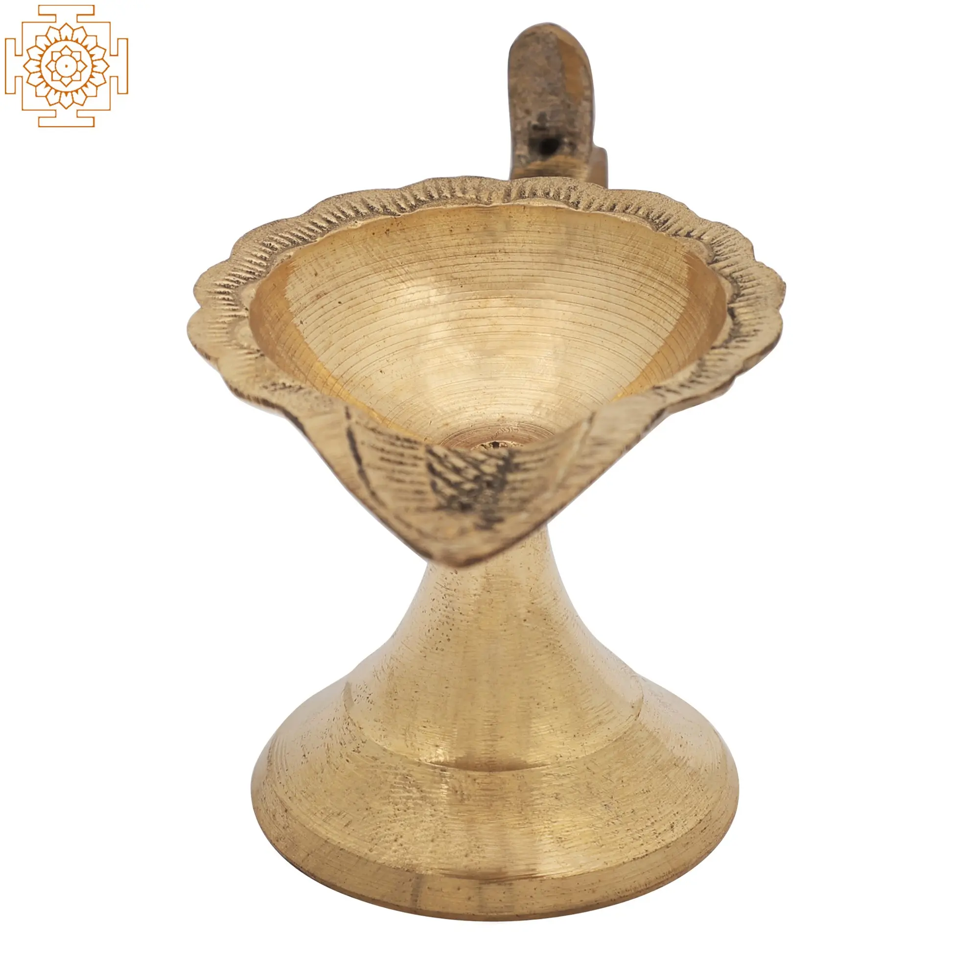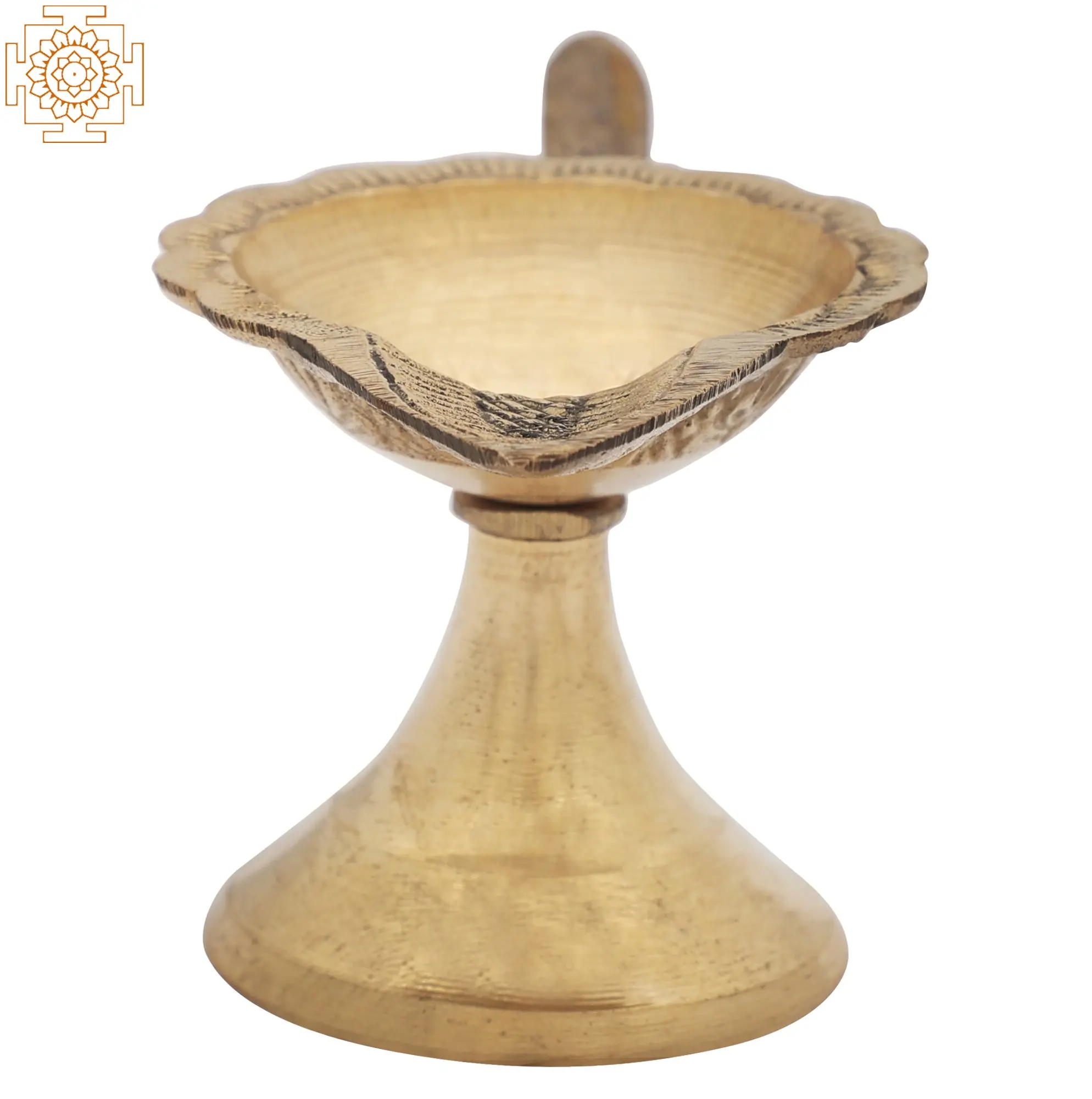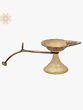 Aarti lamps are hand-held ritual lamps that are waved in front of the god as prayers are performed. They serve as a conduit for the deity, allowing him to enjoy the warmth of the light and ask for favors. The number of wicks on an aarti lamp determines the aarti's direction and can assist in identifying the target god. This brass lamp features a single-wick light fashioned like a leaf and a sturdy stand embellished with simple carvings. The single wick of the aarti indicates that the warmth of the lamp is offered to Mahesa or Lord Shiva. The lamp's handle is modest and aids the devotional procedure in personal worship places or temples regularly.
