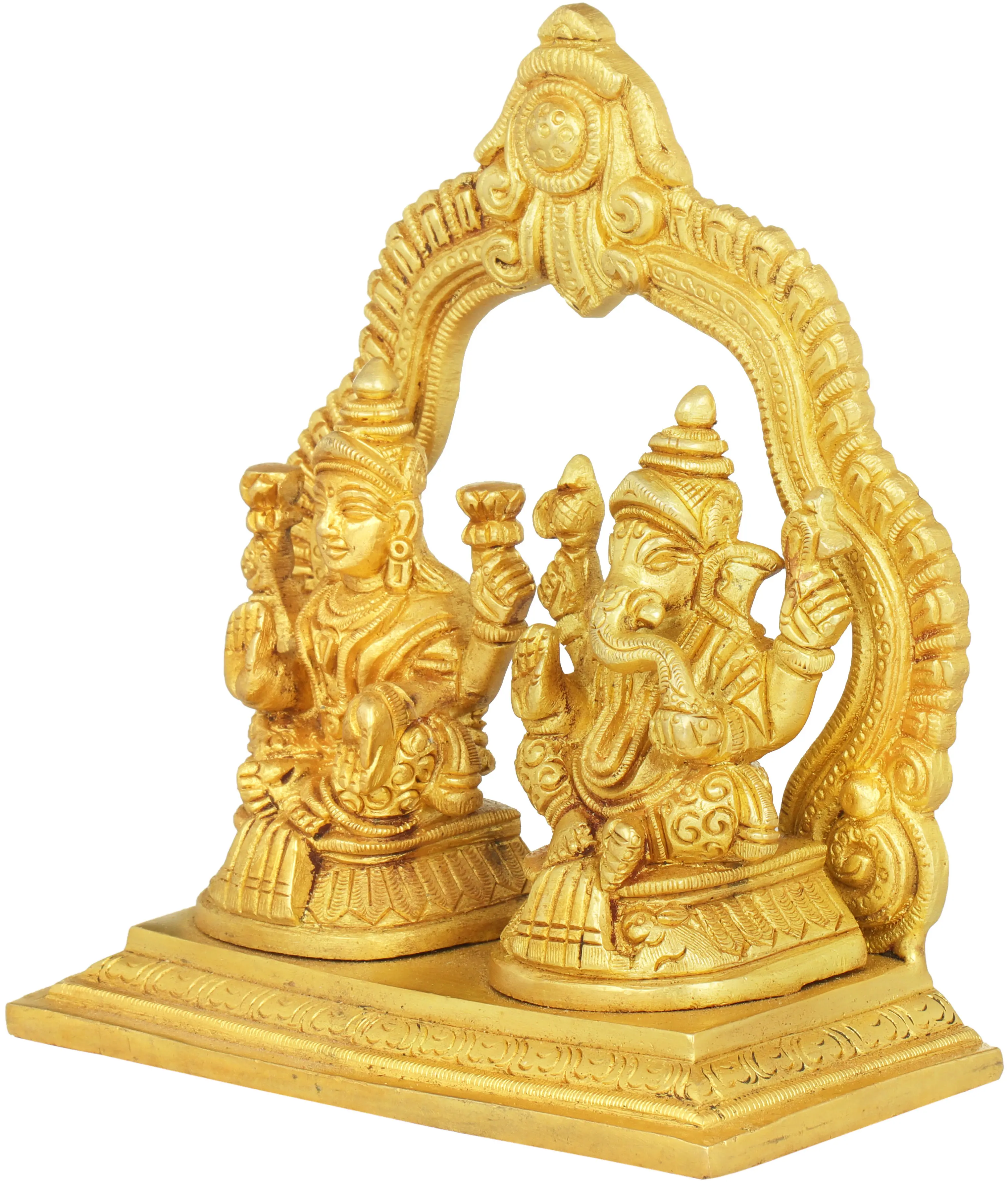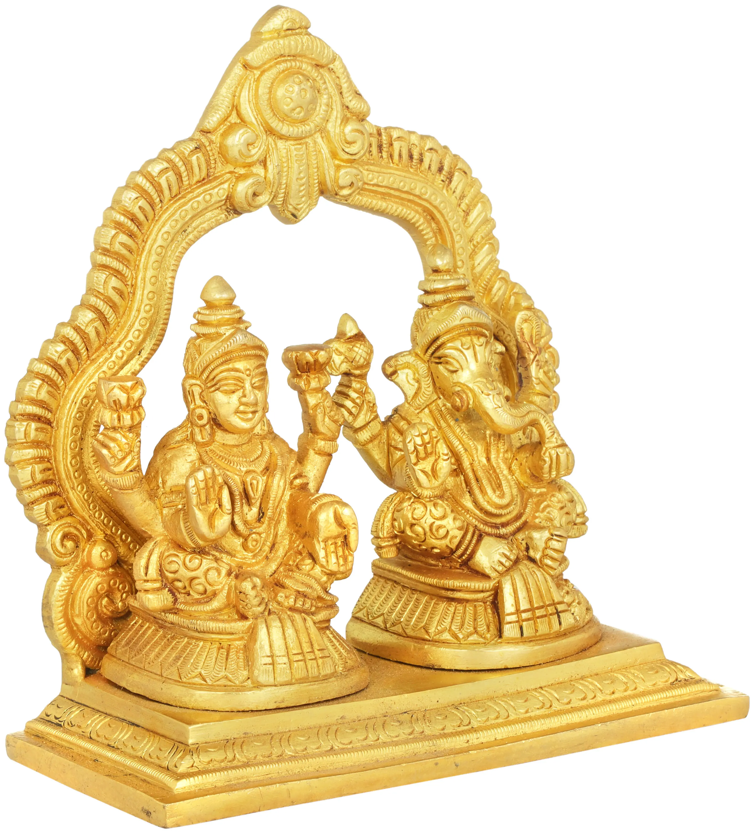 In this spectacular rendition, Lord Ganesha and Goddess Lakshmi are depicted sitting together, emanating a divine and auspicious aura. Goddess Lakshmi, seated gracefully in “Abhaya Mudra”, signifying her role as the bestower of fearlessness. Her left hand is in “Varada Mudra”, symbolizing abundance and benevolence. Holding lotuses in both hands, she symbolizes purity and prosperity. Lord Ganesha, seated on her left side in a gesture of blessing, represents protection and removal of obstacles. With a goad and a noose in his hands, Ganesha guides devotees towards righteousness and Dharma. Crafted in Brass, this creation emphasizes the importance of seeking wisdom and understanding to attain prosperity, and invoking their blessings together is believed to bring about holistic growth and fulfillment in all aspects of life.