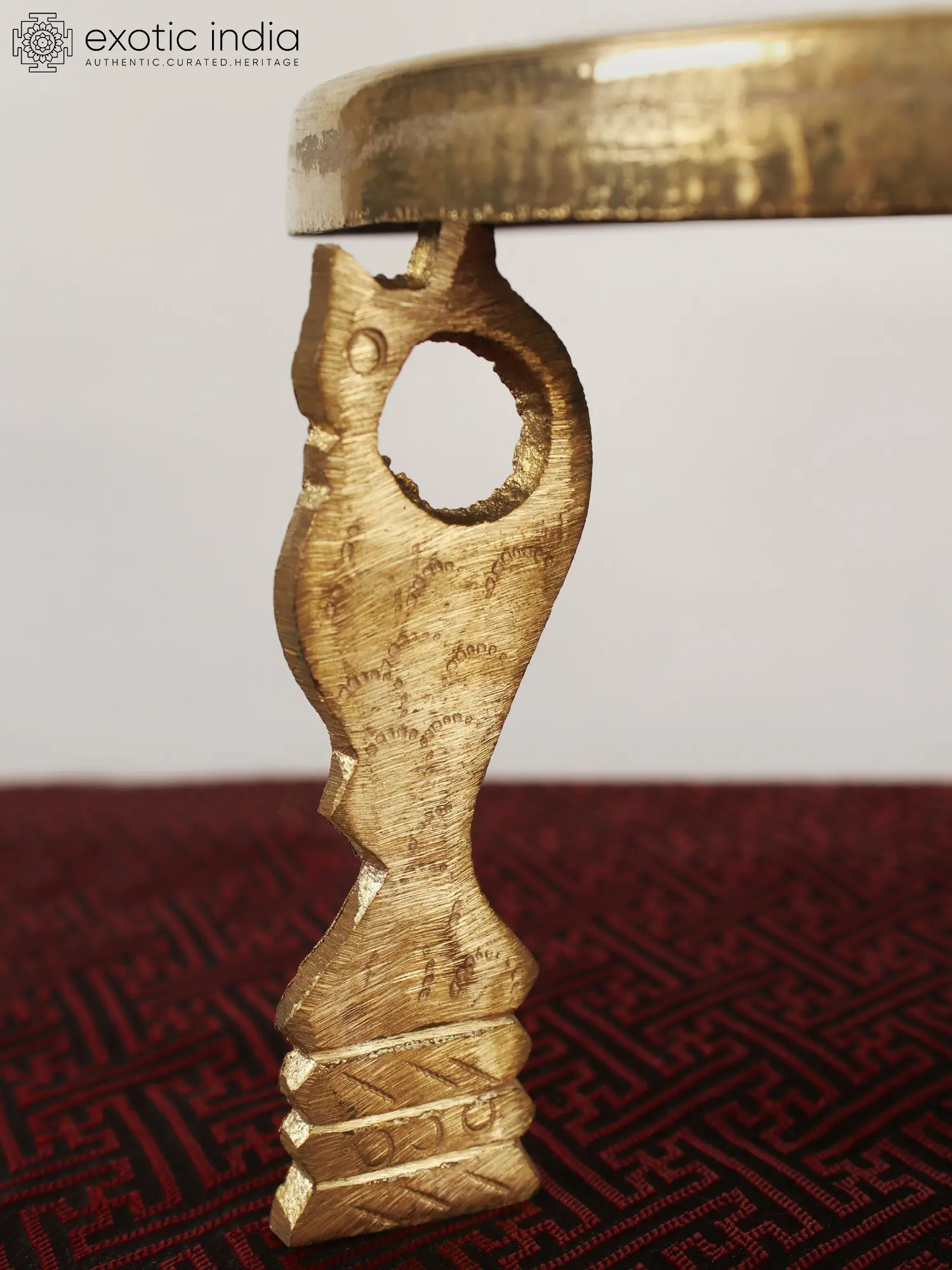 This exquisite brass chowki, or low stool, is a testament to the enduring beauty of traditional Indian craftsmanship and spiritual symbolism. More than just a platform, it is a sacred space, meticulously designed to elevate your devotional practices. Its circular form, adorned with intricate carvings, evokes a sense of wholeness and the cyclical nature of existence, mirroring the divine order. The rich, warm luster of the brass itself is believed to possess purifying qualities, making it an ideal material for a sacred object.