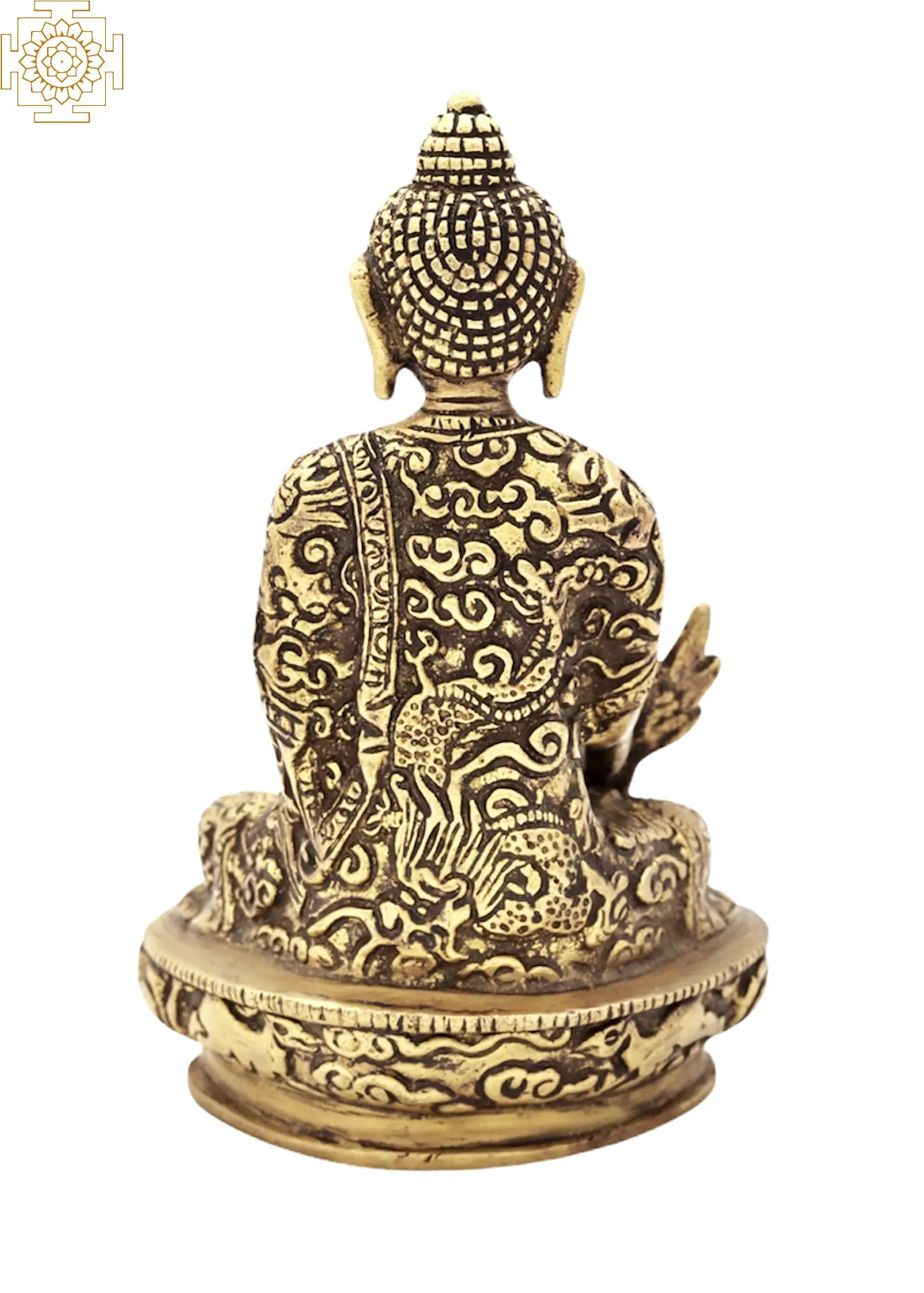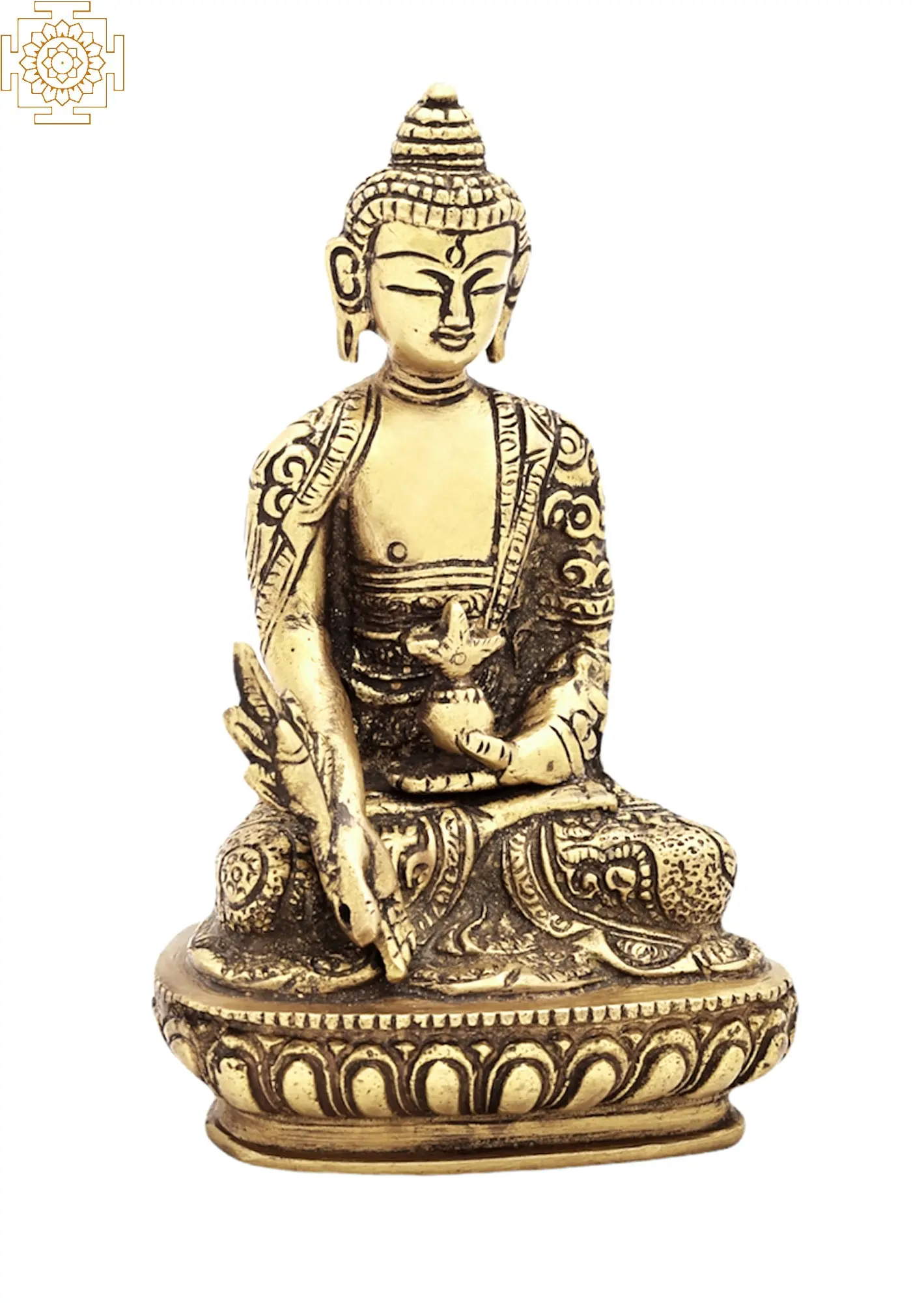 In Sanskrit, Medicine Buddha was popularly known as “Bhaisajyaguru”. Typically depicted seated in meditation (Dhyana Asana), his left hand holds a bowl of healing nectar, while his right hand holds the Myrobalan plant (also known as “Haritaki” or “Terminalia Chebula”), signifying Lord Buddha’s role as the “Healer” or the Medicine Buddha. According to legends, keeping “Medicine Buddha” at home helps family members to gain natural healing abilities and prevents evil forces from infiltrating the home. Crafted from brass, this sculpture invites you to find solace and relief from suffering through the heavenly blessings of the “Healing Buddha”.