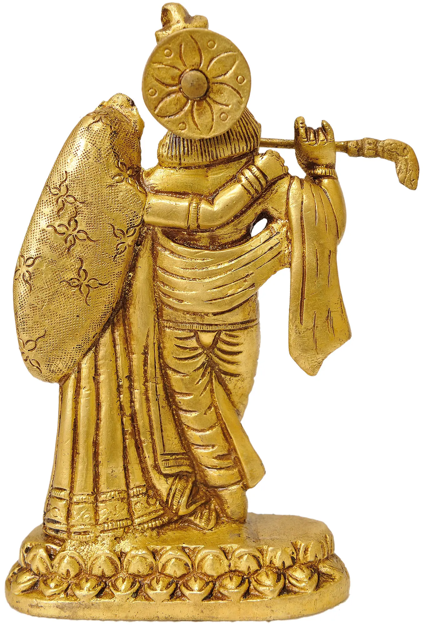 4" Bhagawan Krishna Idol in Brass | Handmade | Made in India