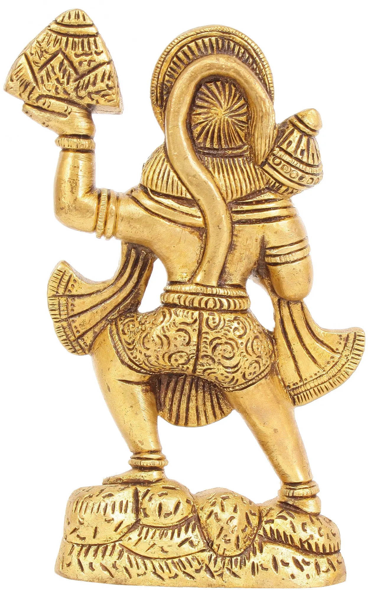 Lord Hanuman Idol Carrying Mountain of Sanjeevani Herbs | Brass Statue