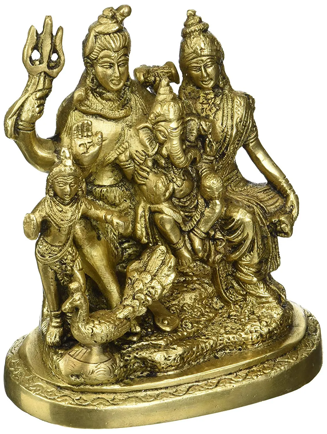 A complete catalyst of Hindu spirituality, the depiction of the Shiva Parivar in radiant brass captures the essence of a divine family's unity, grace, and cosmic significance. This sacred sculpture portrays Lord Shiva, Goddess Parvati, Lord Ganesha, and Lord Kartikeya in a harmonious embrace, symbolising the profound interplay of creation, preservation, and transformation.