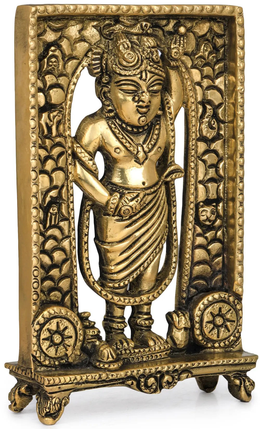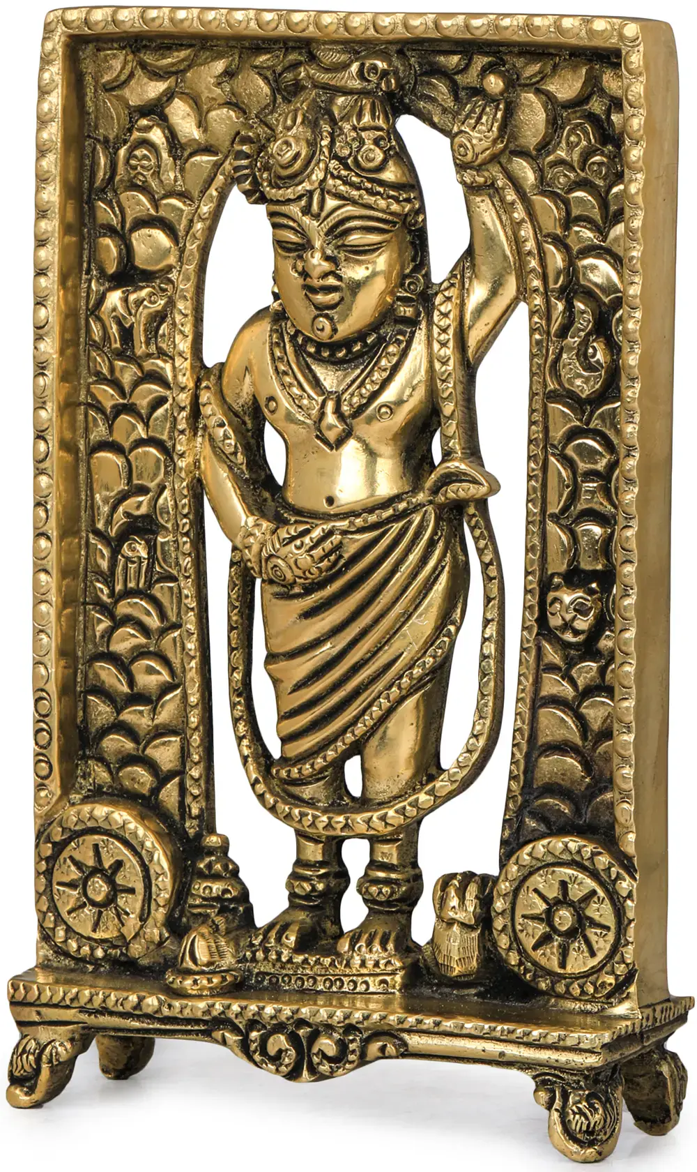 Housed in Nathdwara, Rajasthan, Shrinathji is a manifestation of Lord Krishna as a young child, mesmerizing devotees with his playful and endearing demeanor. Specifically worshiped within the “Pushti Marg” tradition, Shrinathji guides devotees towards spiritual growth and protects them from hindrances in their path of success. In this enchanting form, Shrinathji’s right hand rests on his waist, while the left hand extends outward in a gesture of blessing. His serene countenance exudes love and devotion. Intricately crafted in brass, this statue captures every nuance of his playful demeanor and captivating charm.
